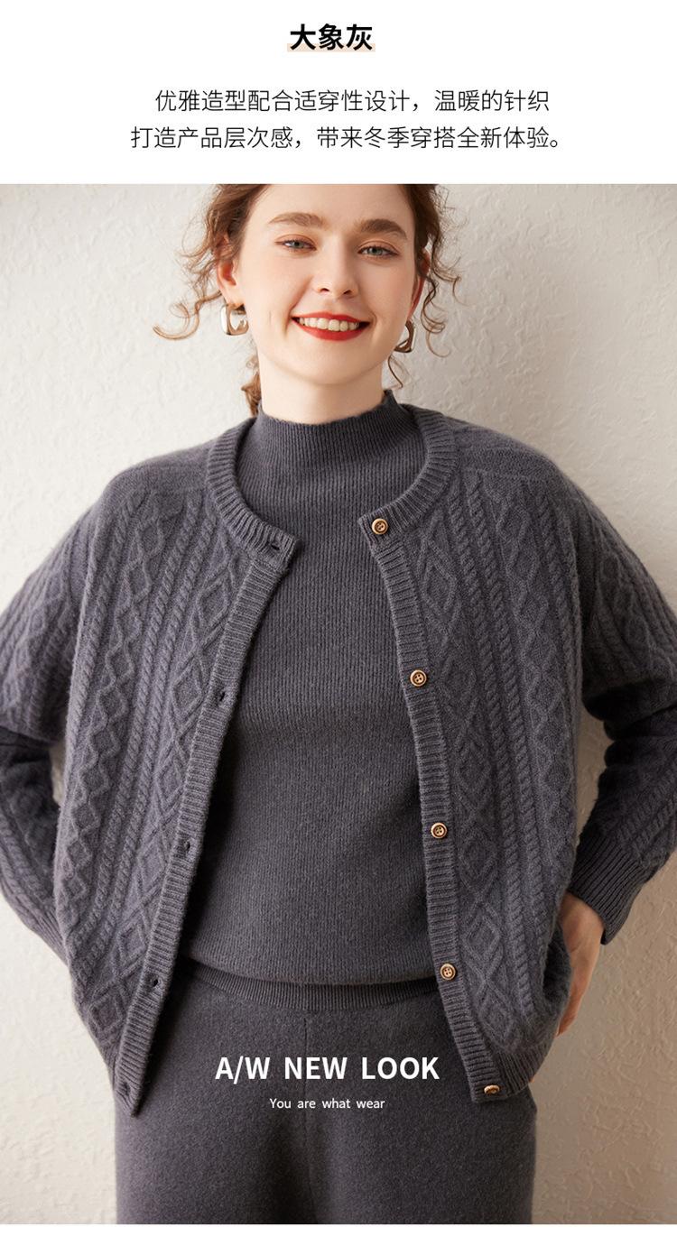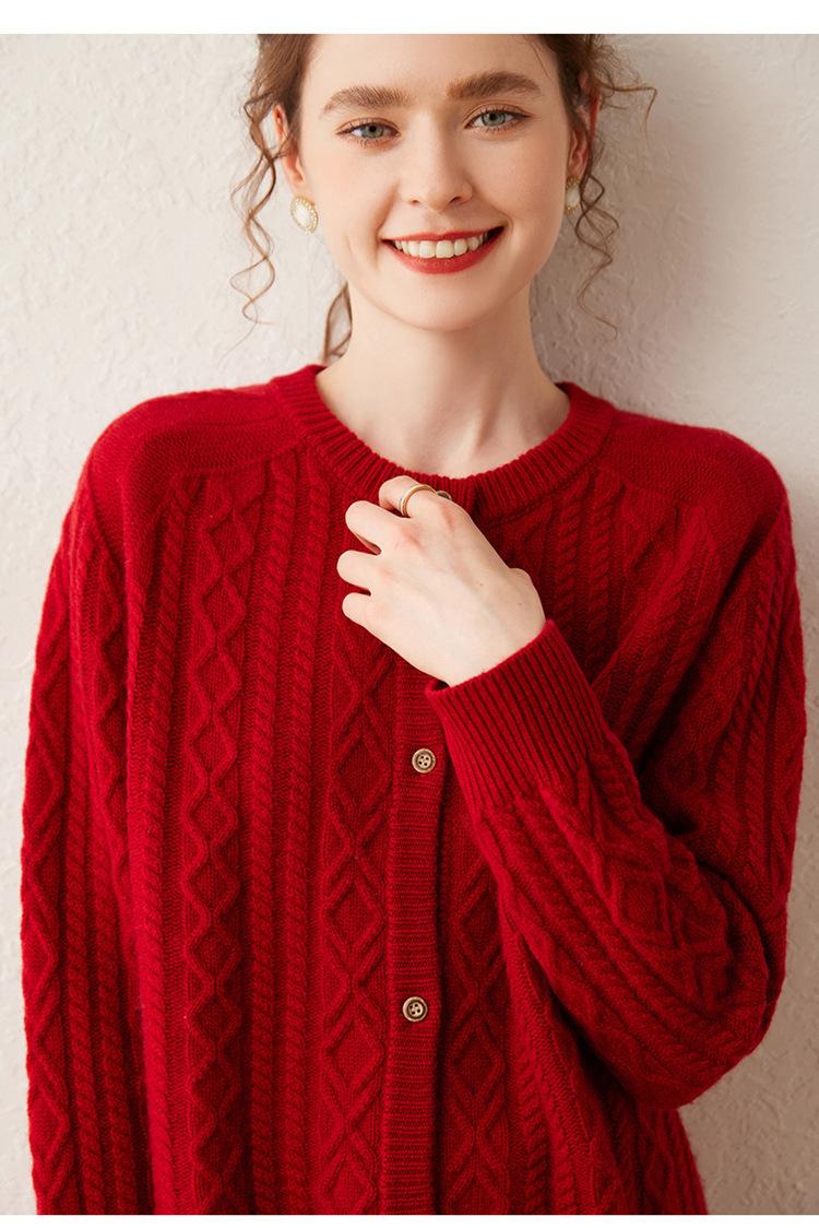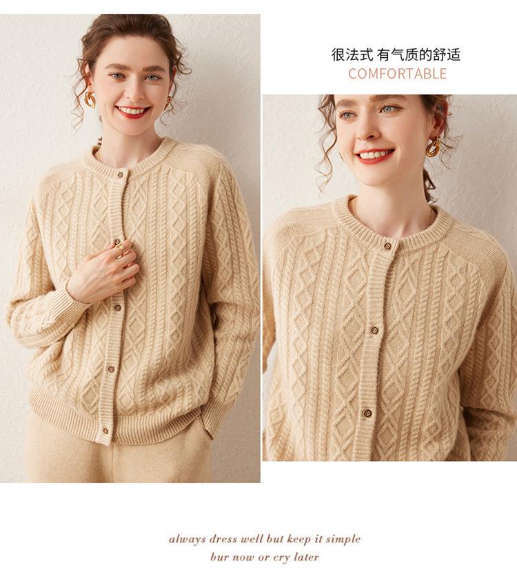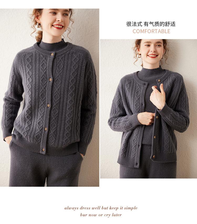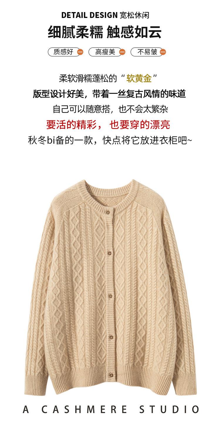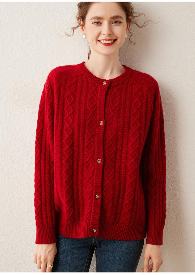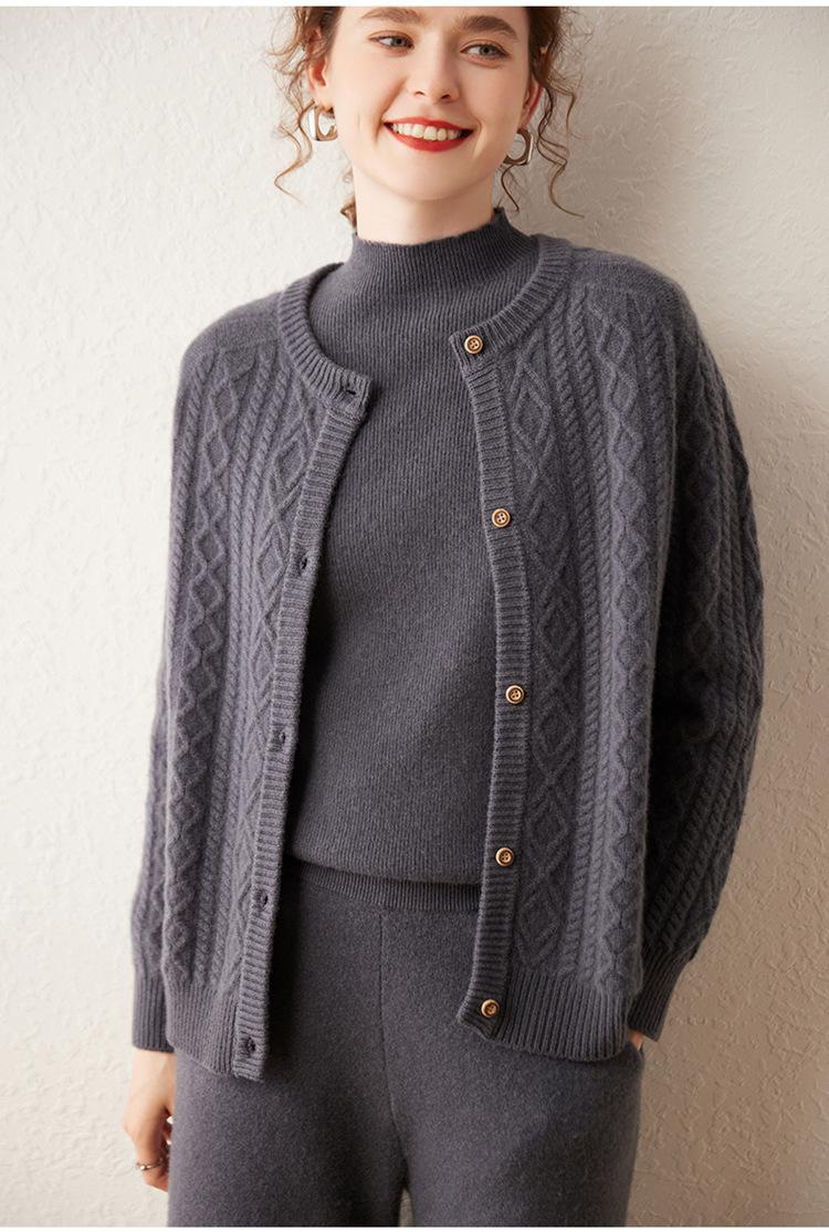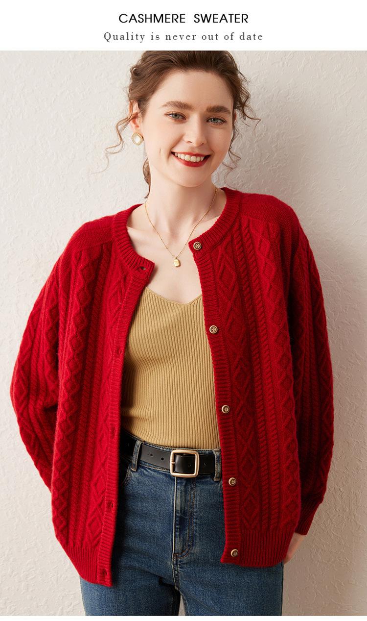 Suéter de cachemira pesado de otoño e invierno nuevo para mujer, suéter holgado de punto con cuello redondo retorcido de diamante, cárdigan de tres hilos engrosado