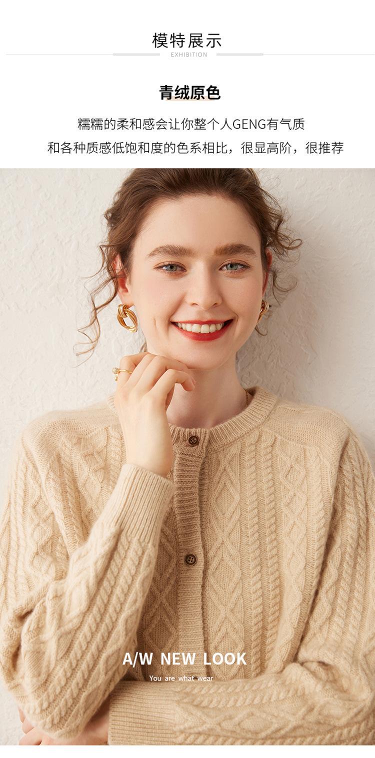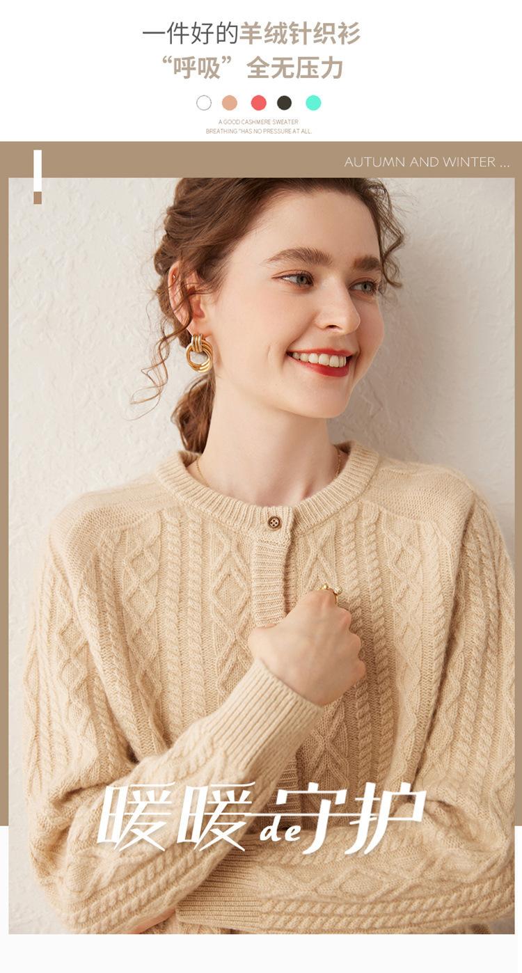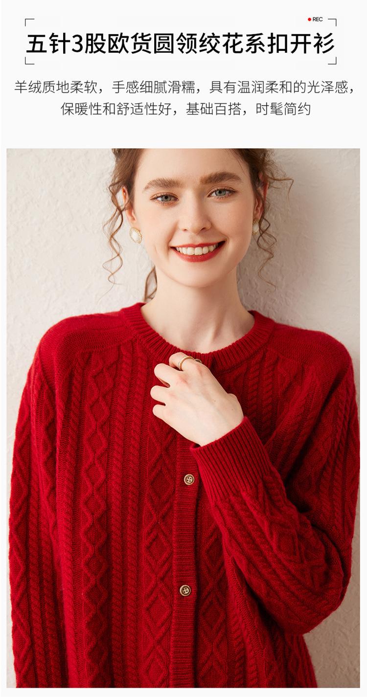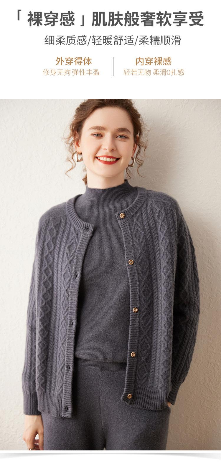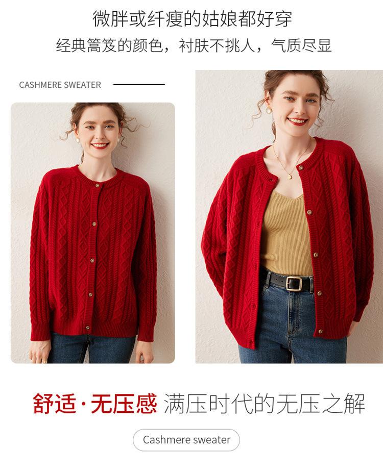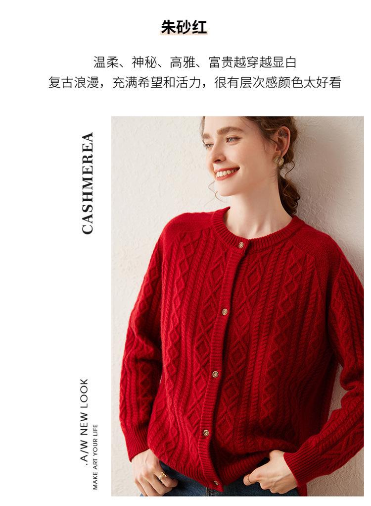 Suéter de cachemira pesado de otoño e invierno nuevo para mujer, suéter holgado de punto con cuello redondo retorcido de diamante, cárdigan de tres hilos engrosado