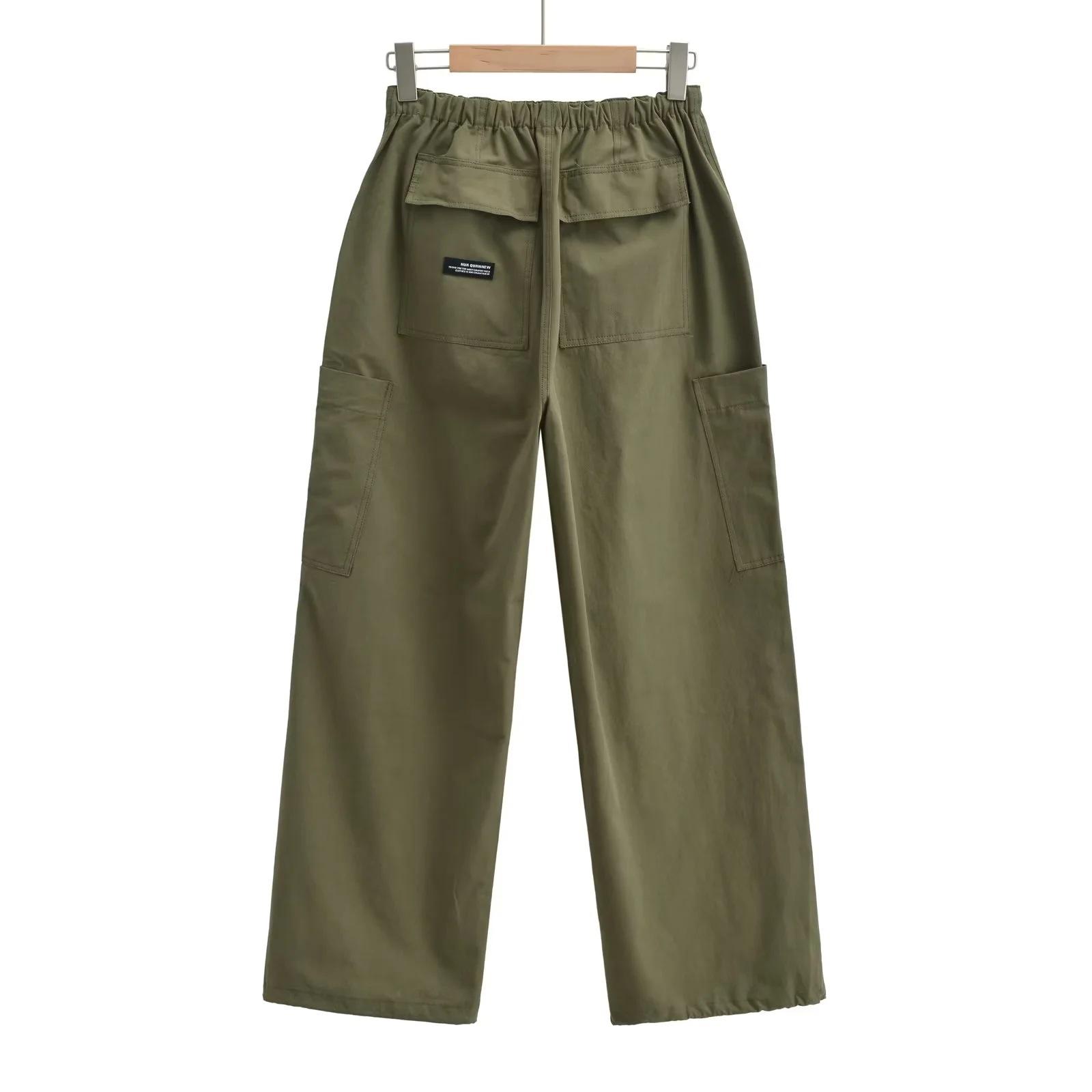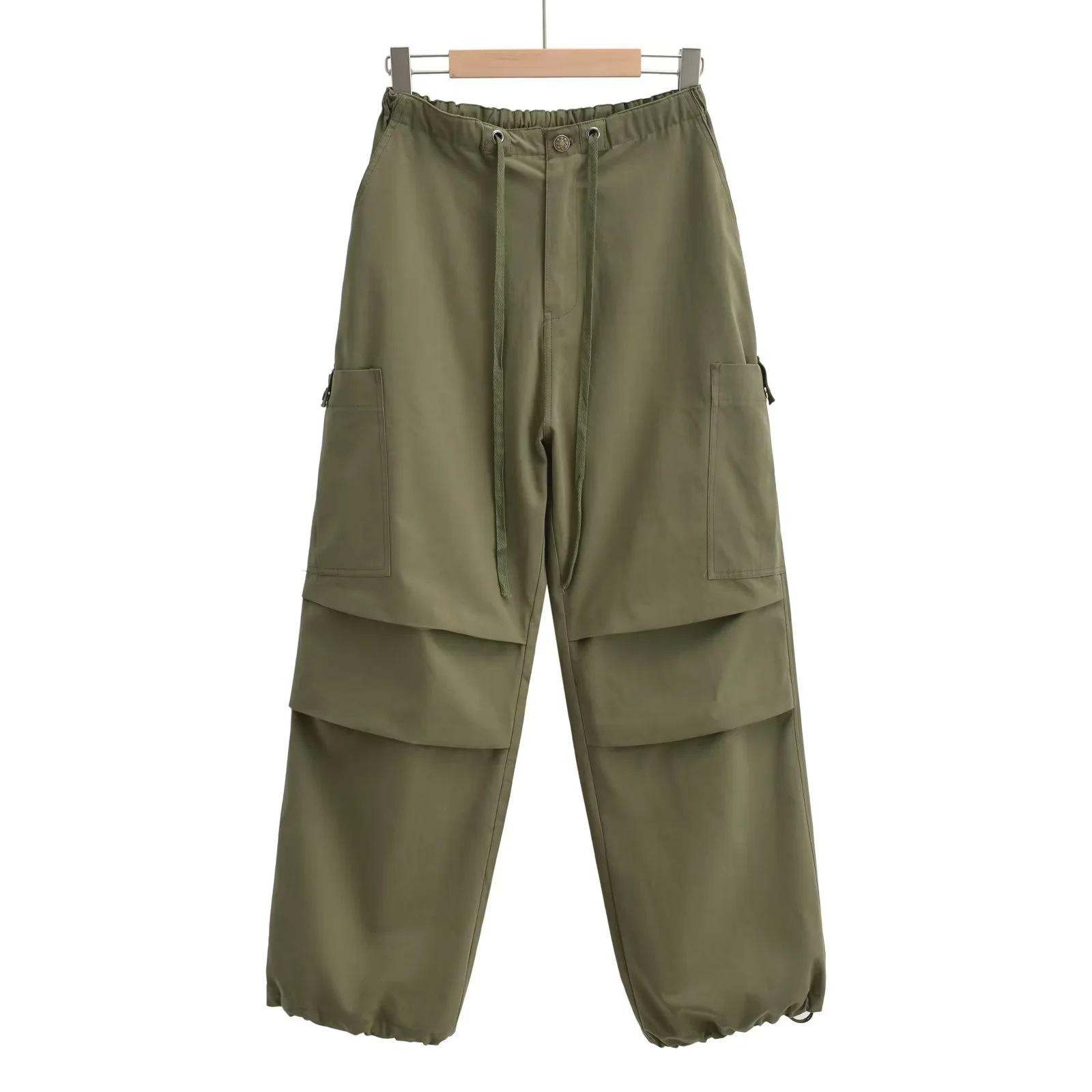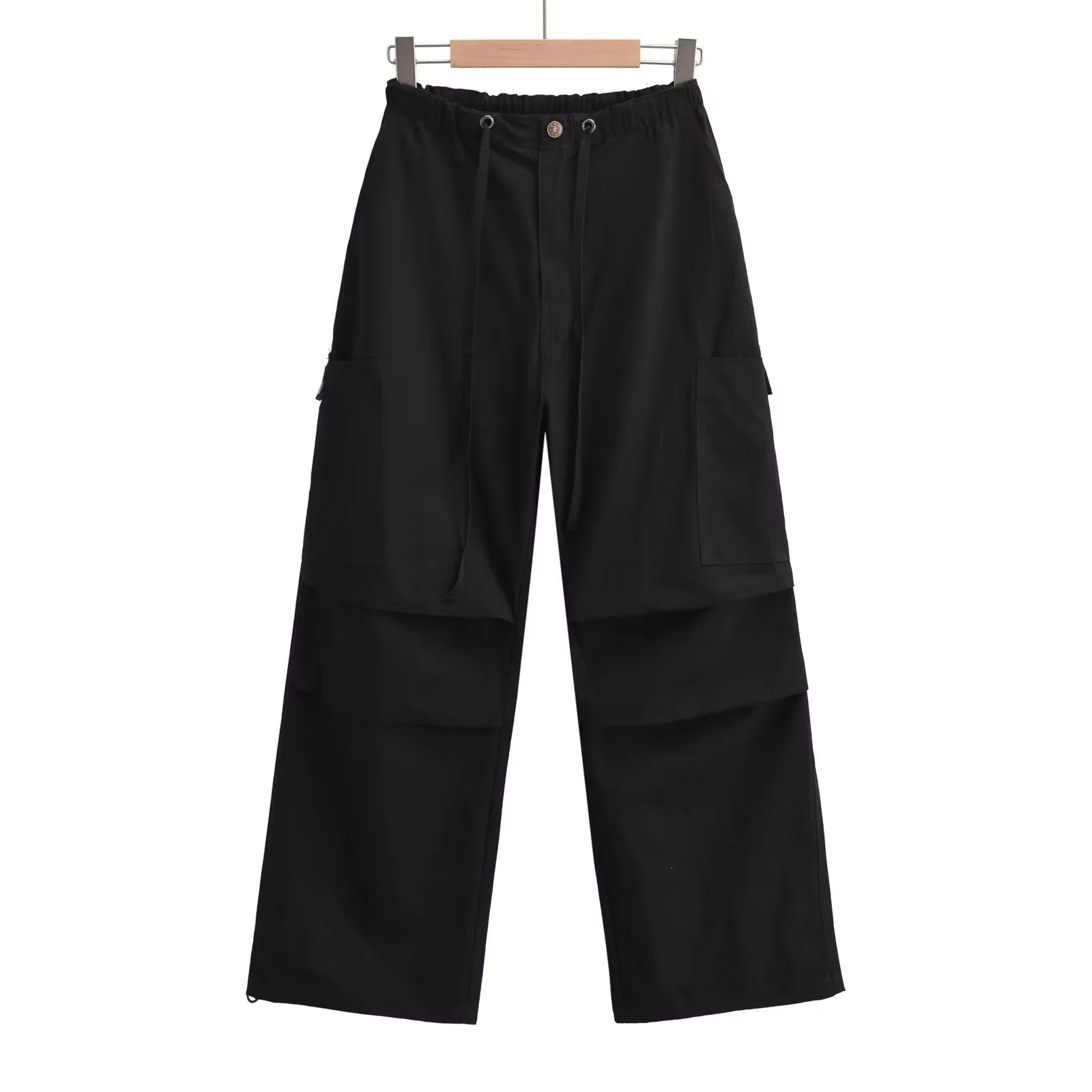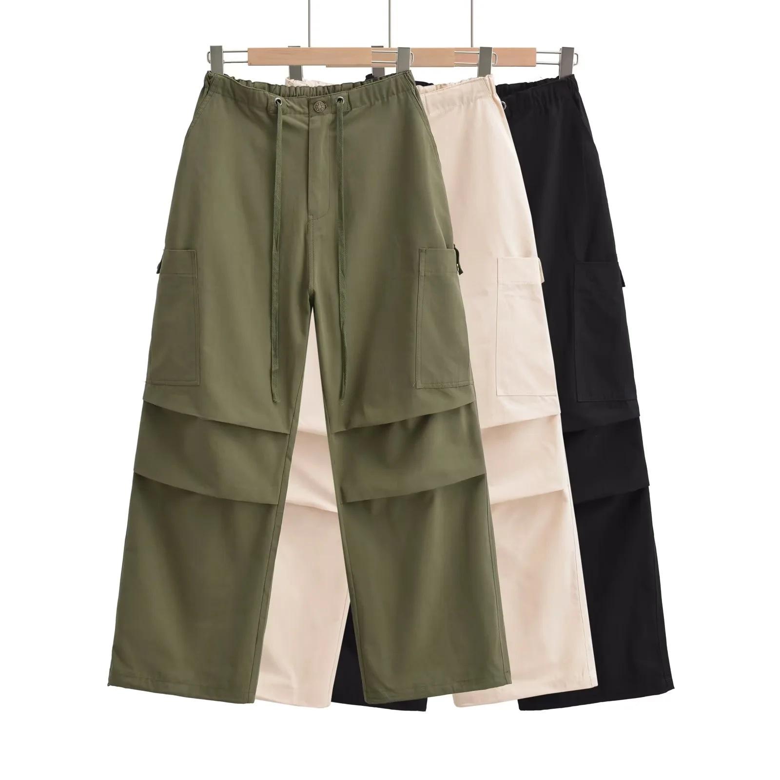 Pantalones tipo paraguas de trabajo estilo americano para mujer, de otoño, de High Street, con múltiples bolsillos, de color sólido, con bolsillos traseros, etiquetado personalizado, pantalones rectos sueltos