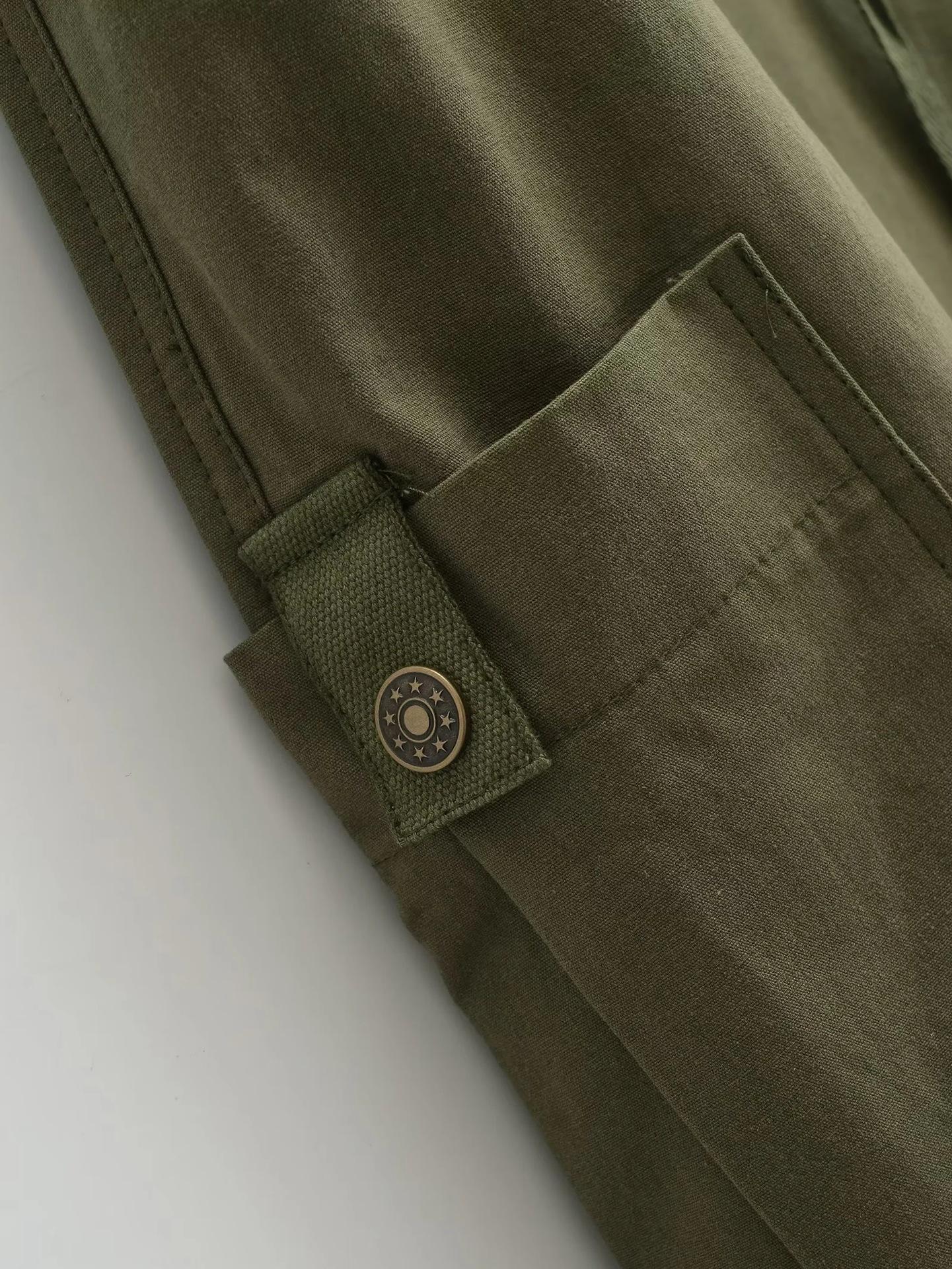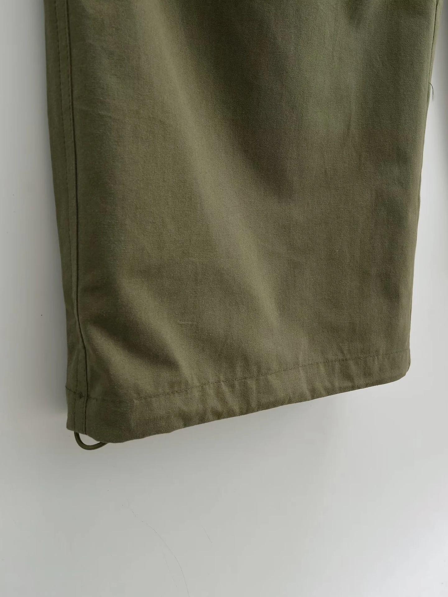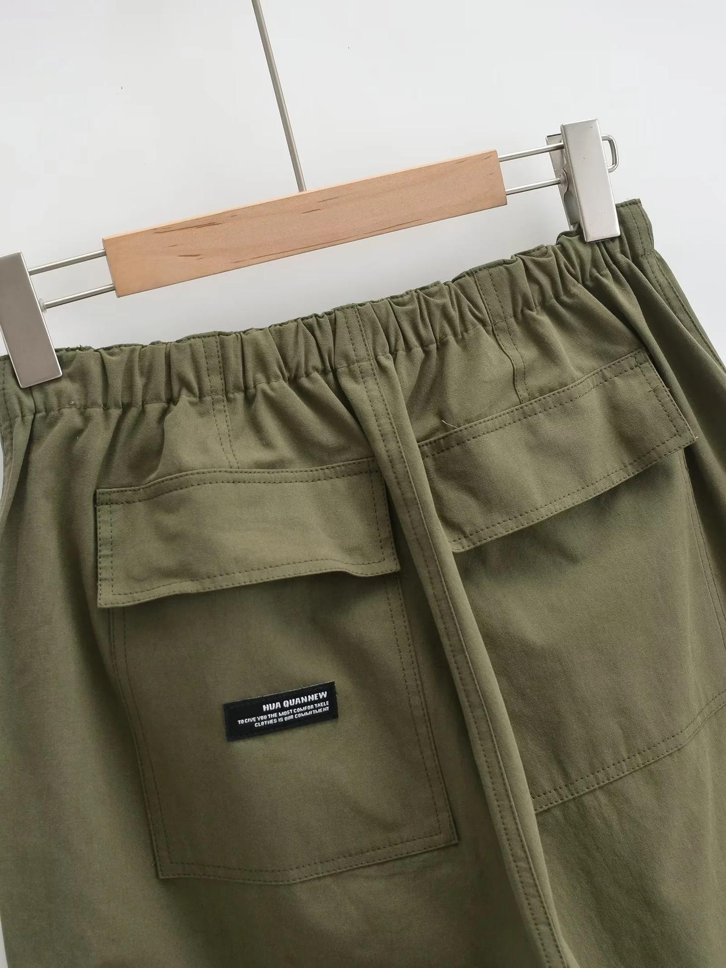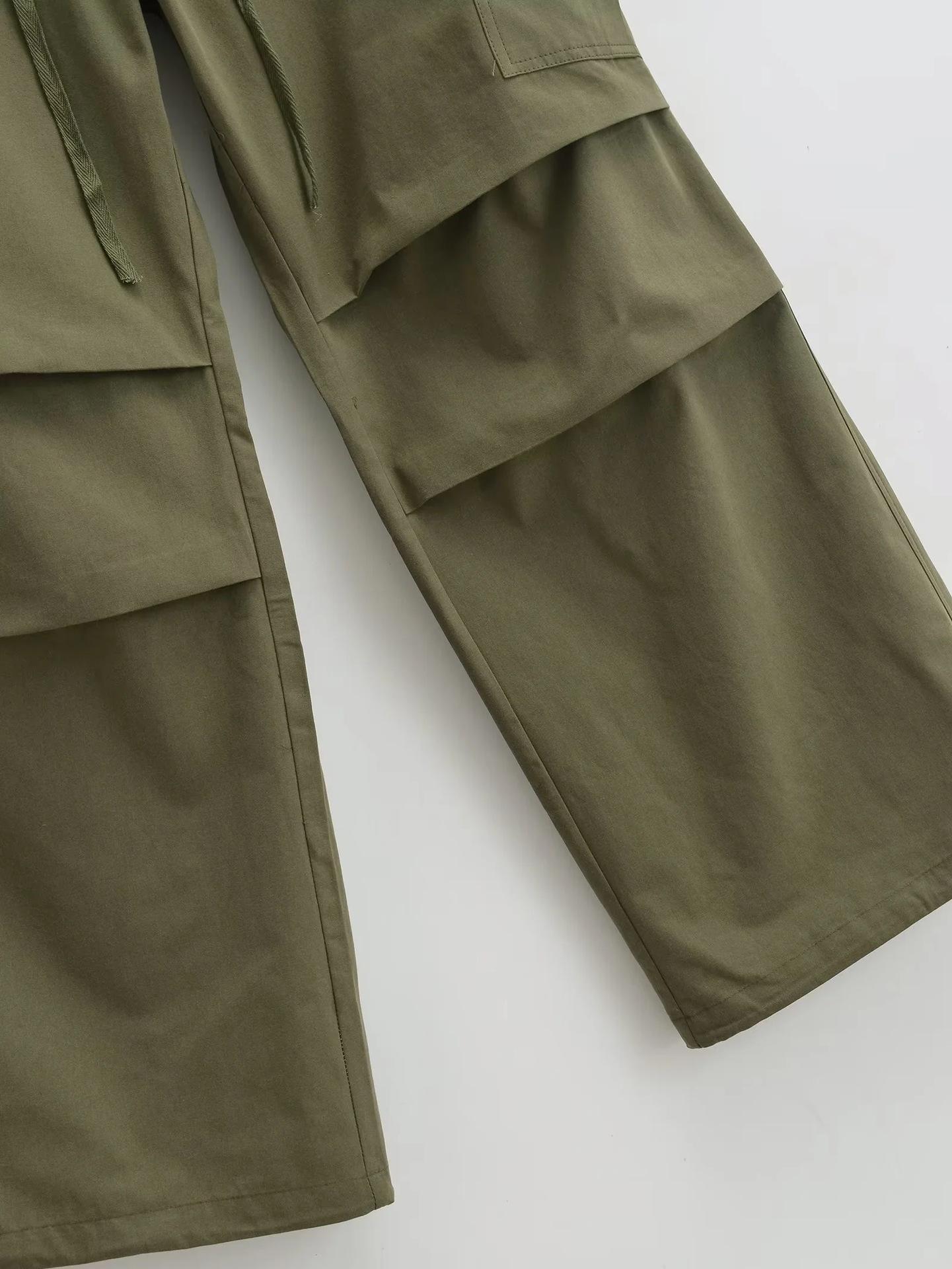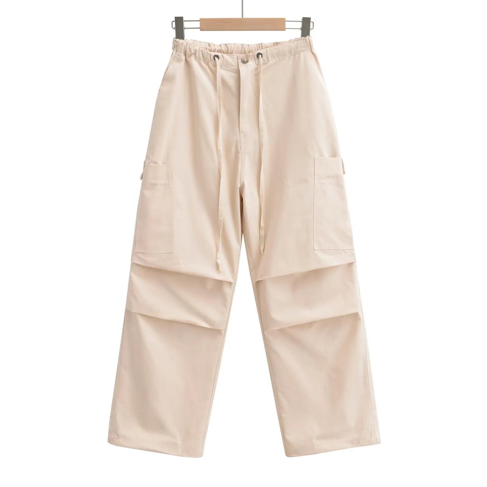 Pantalones tipo paraguas de trabajo estilo americano para mujer, de otoño, de High Street, con múltiples bolsillos, de color sólido, con bolsillos traseros, etiquetado personalizado, pantalones rectos sueltos
