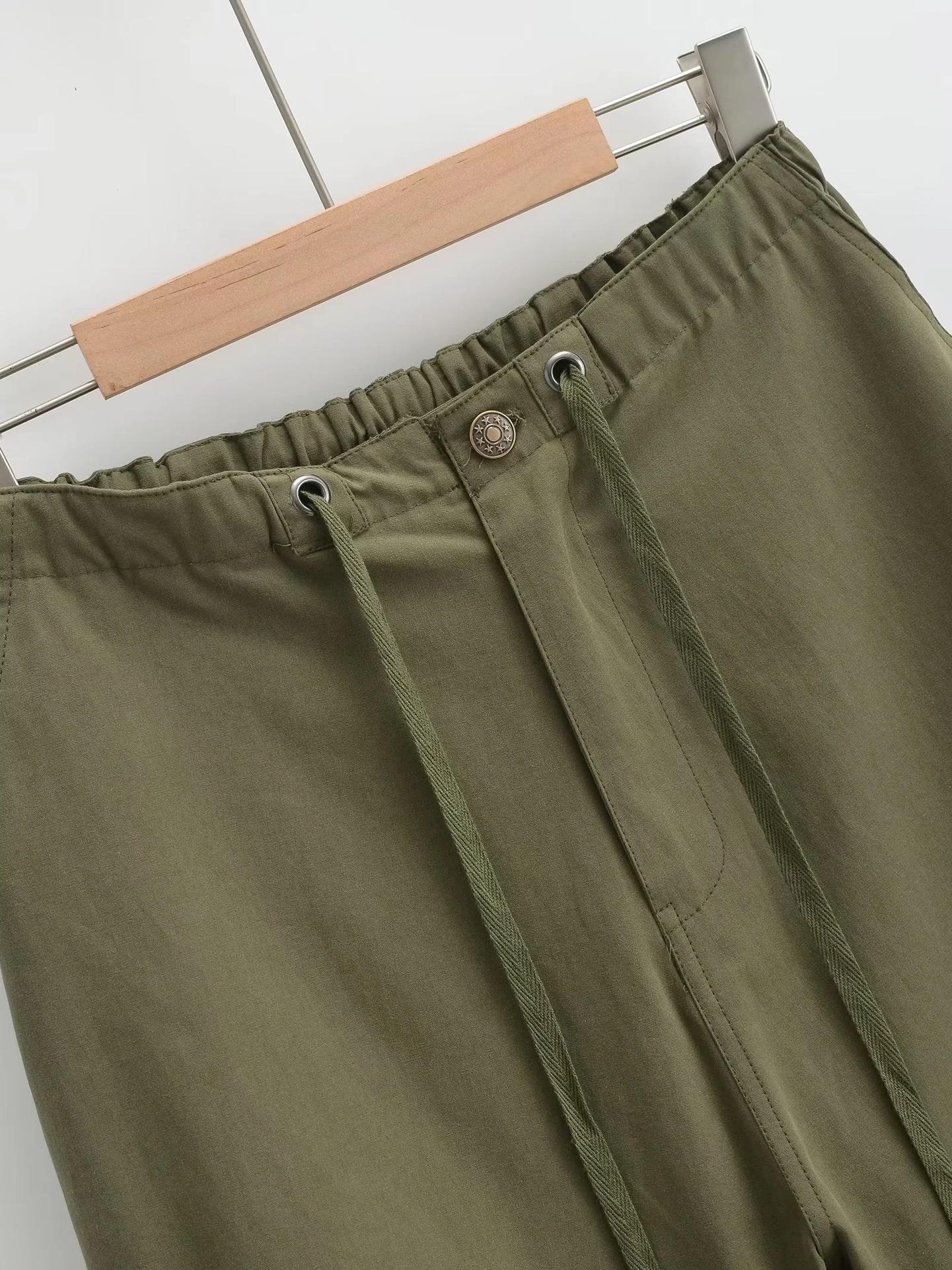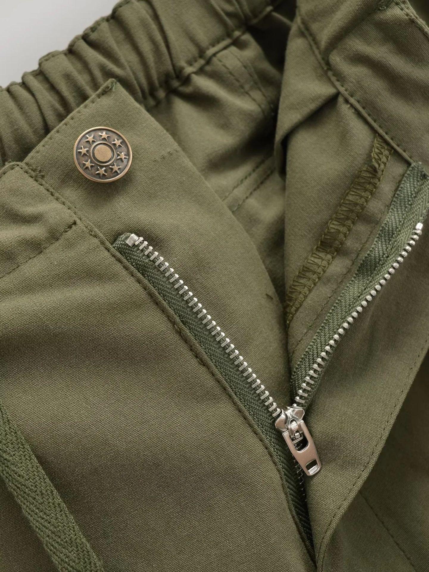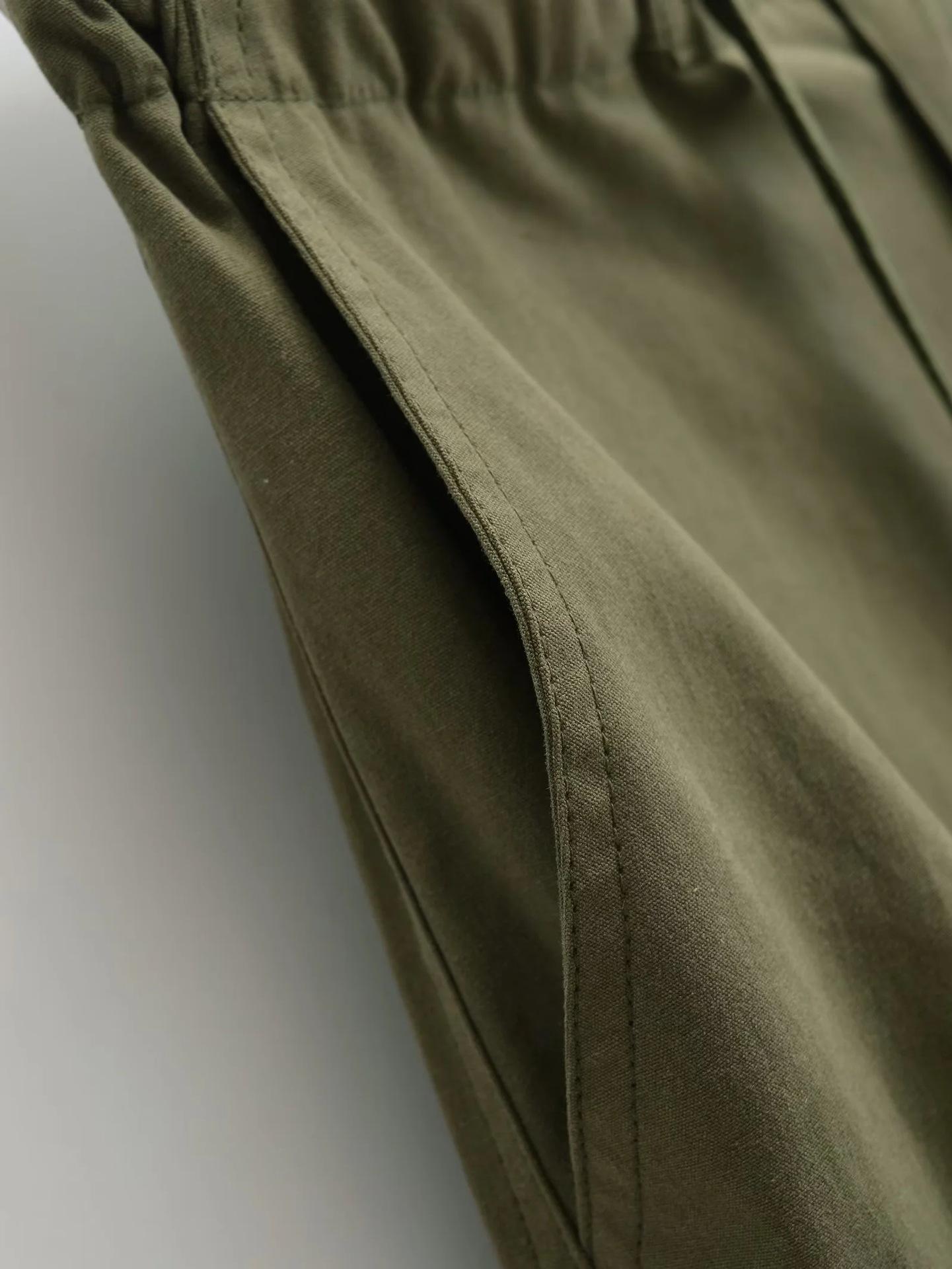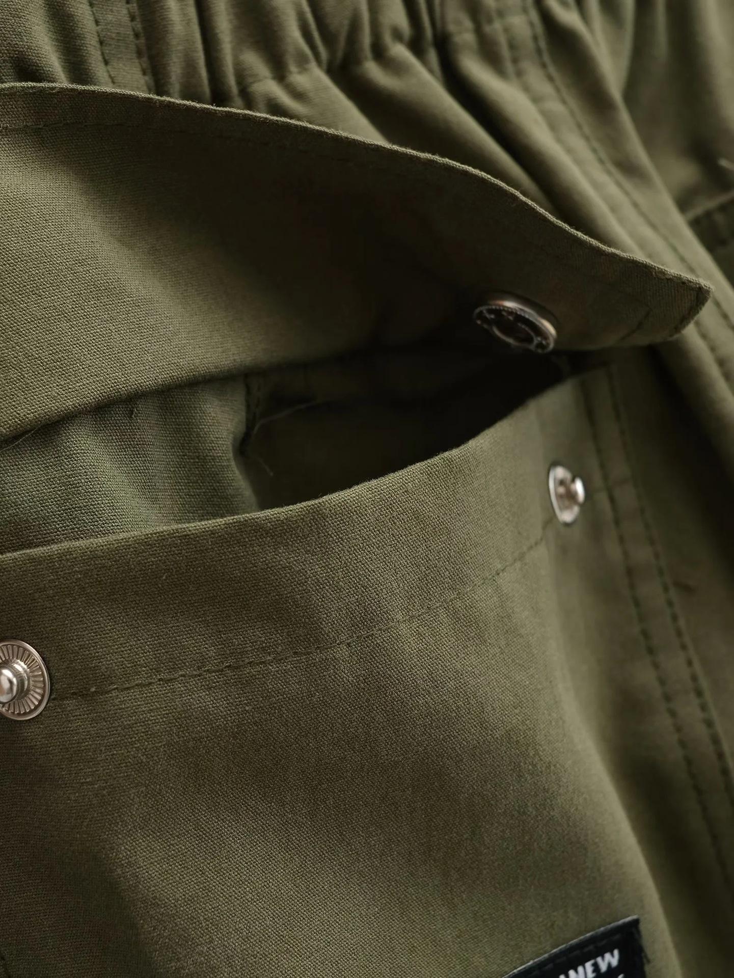 Pantalones tipo paraguas de trabajo estilo americano para mujer, de otoño, de High Street, con múltiples bolsillos, de color sólido, con bolsillos traseros, etiquetado personalizado, pantalones rectos sueltos