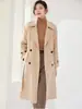 Abrigo de lana de doble cara con cordones y cuello de traje de estilo coreano para mujer, nuevo abrigo de lana de otoño e invierno, elegante cinturón