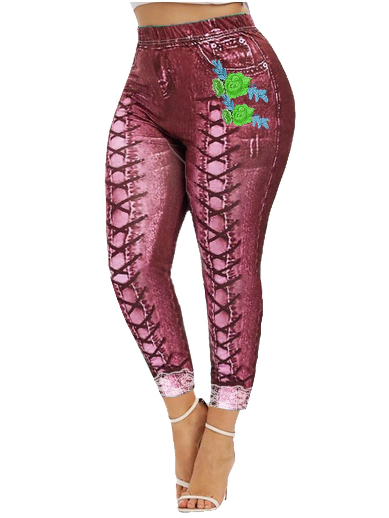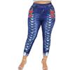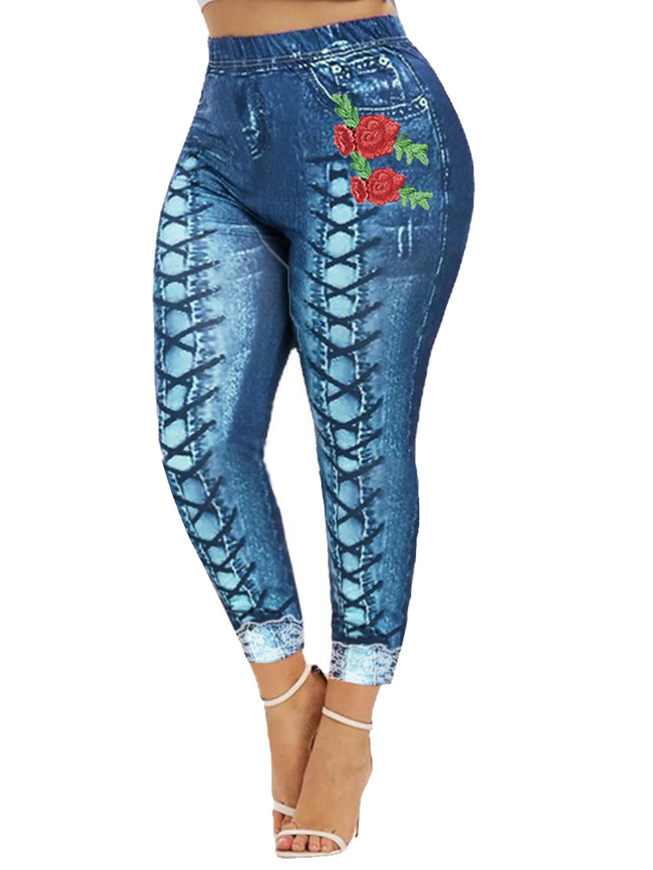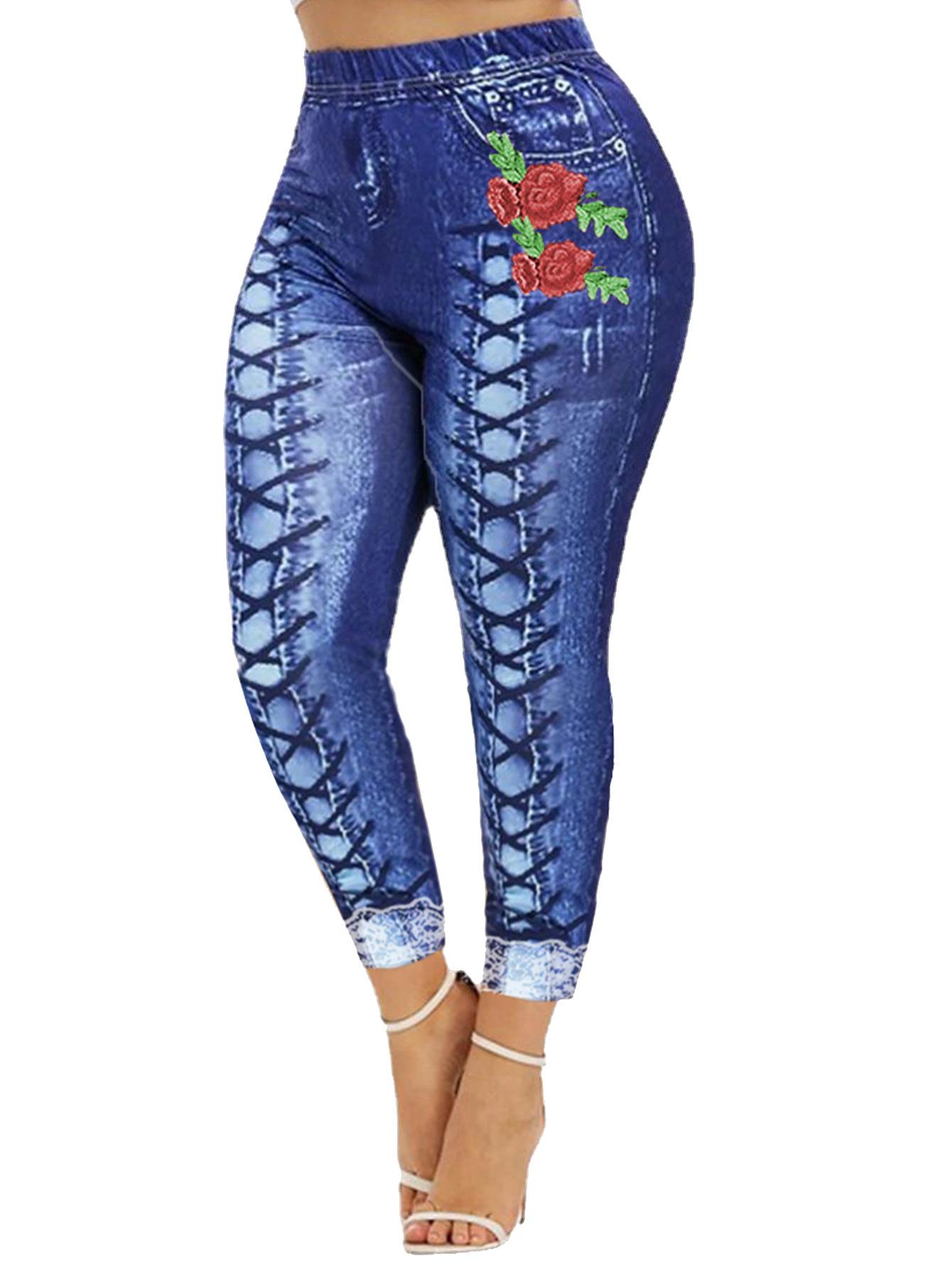 Leggings deportivos casuales, sencillos y ajustados, de estilo denim elástico, de cintura alta, de moda europea y americana.