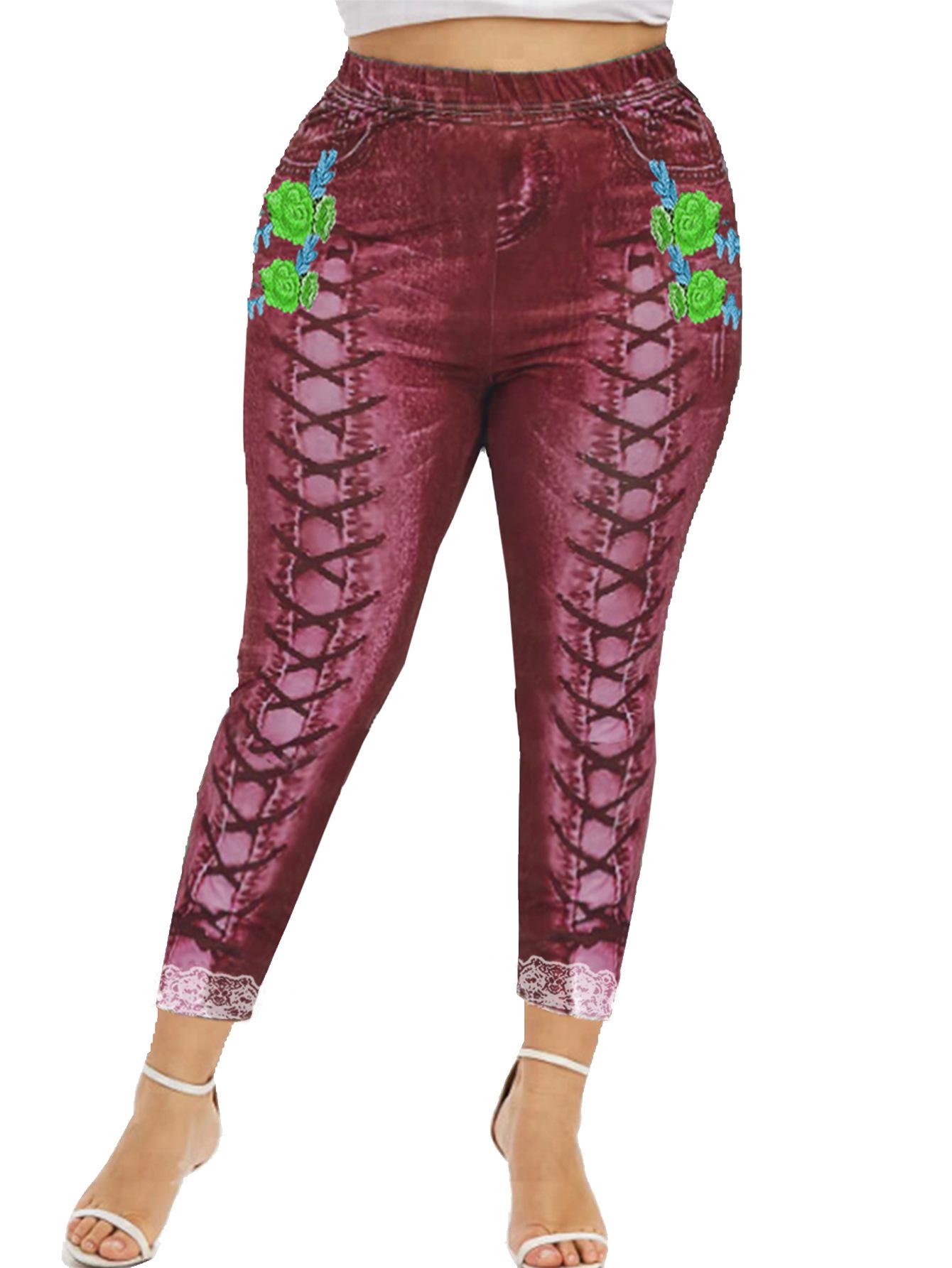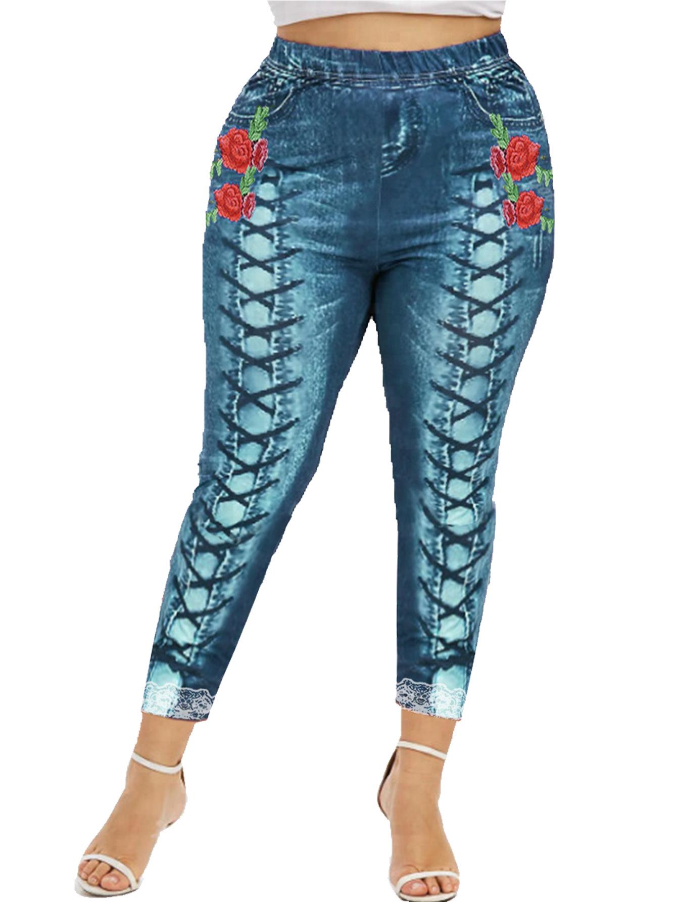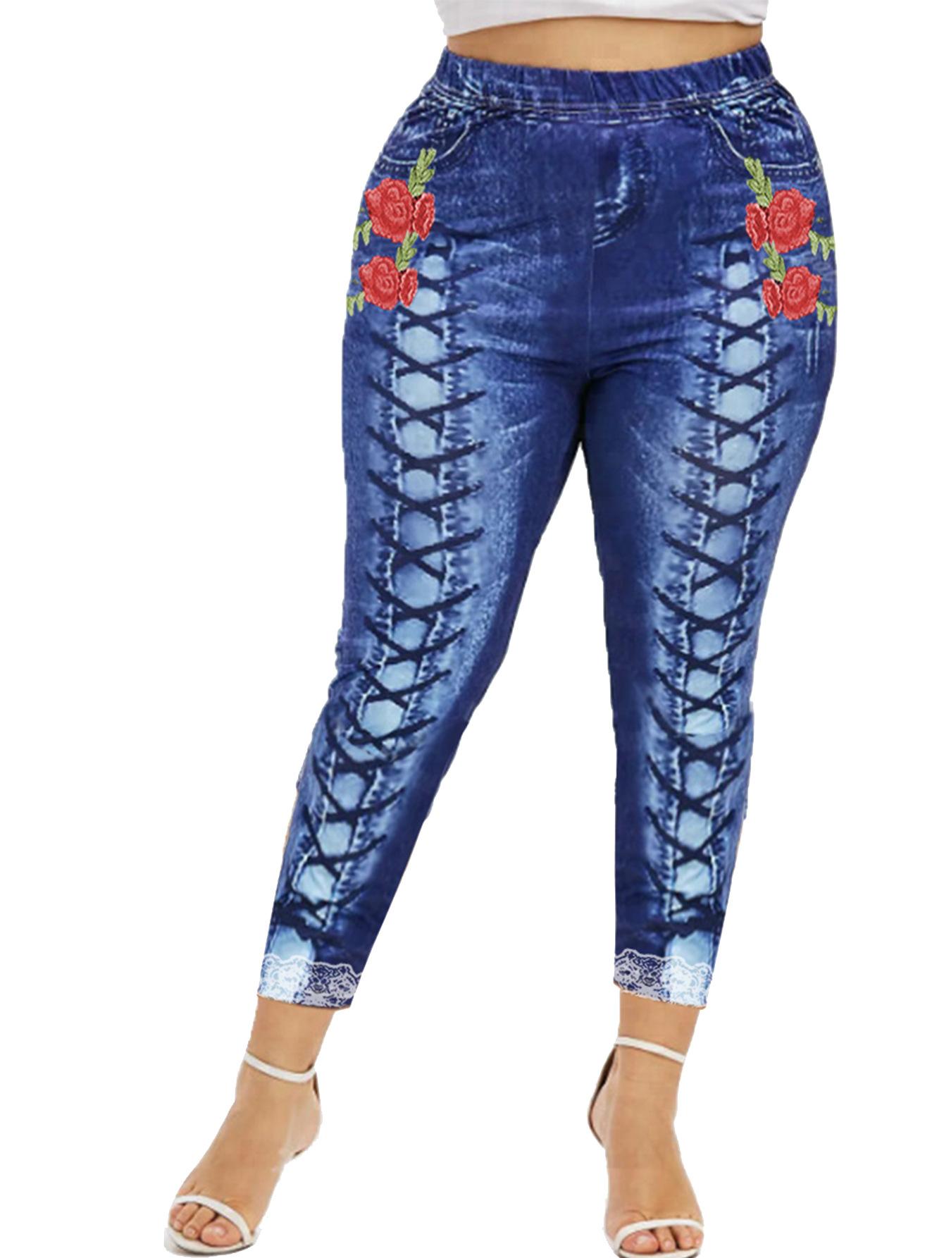 Leggings deportivos casuales, sencillos y ajustados, de estilo denim elástico, de cintura alta, de moda europea y americana.