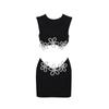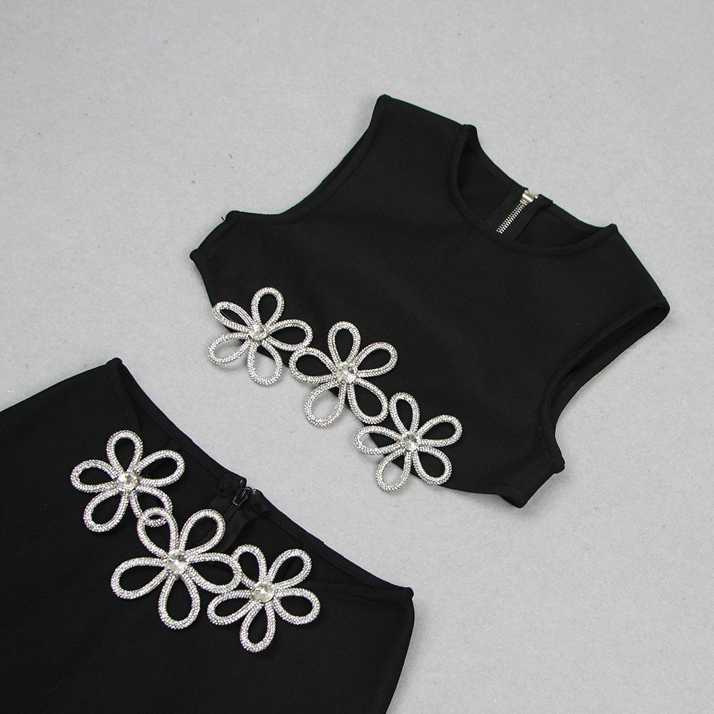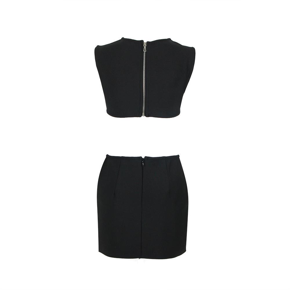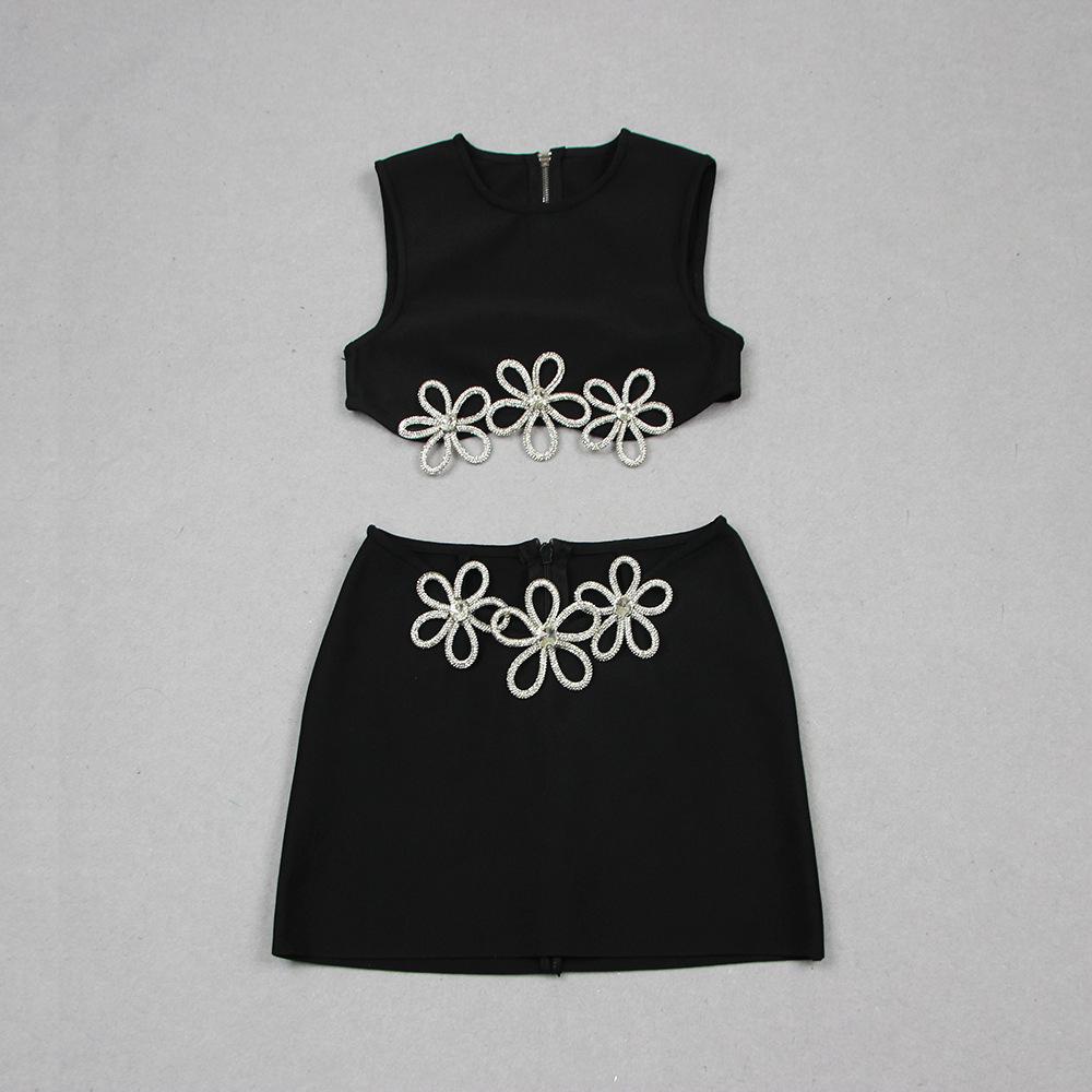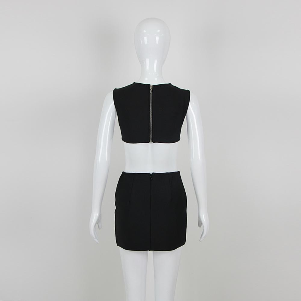 2023 otoño e invierno nueva moda sexy hueco sin mangas rhinestone top + falda corta traje vendaje mujer comercio exterior