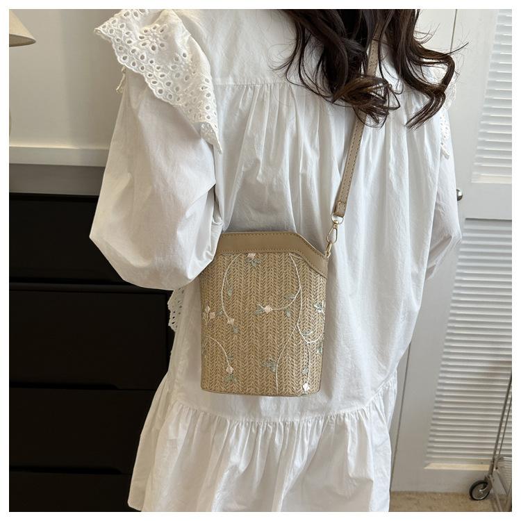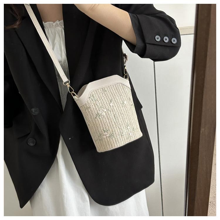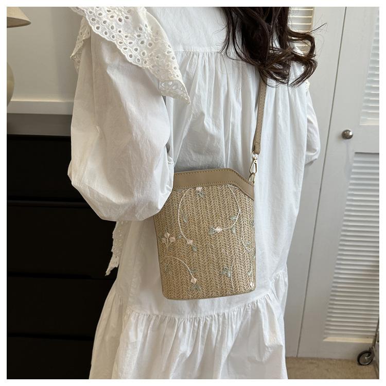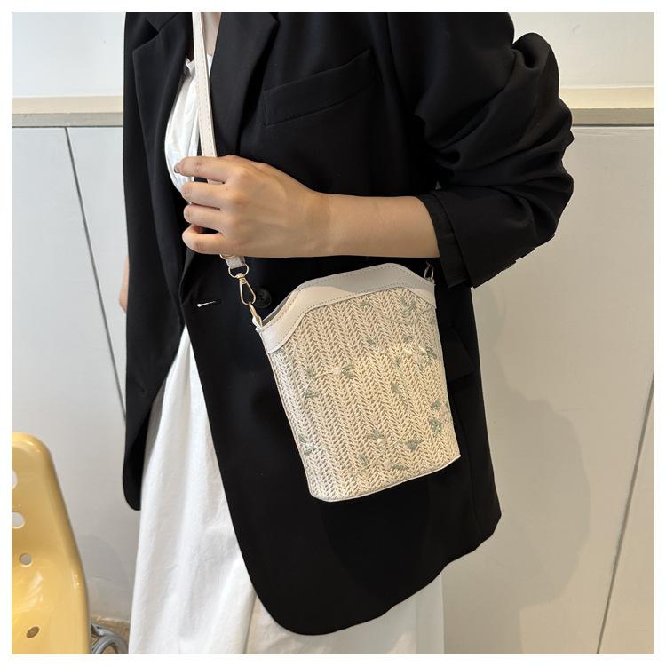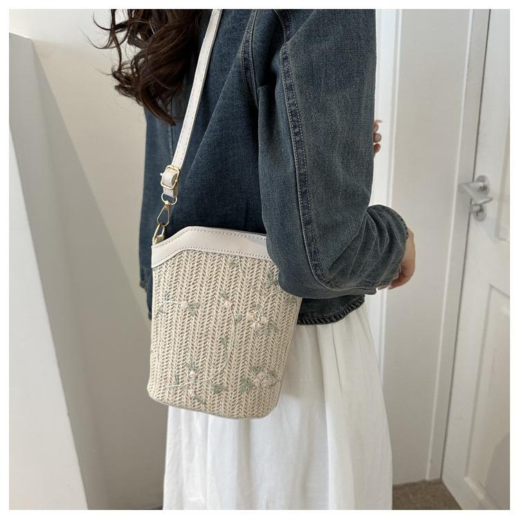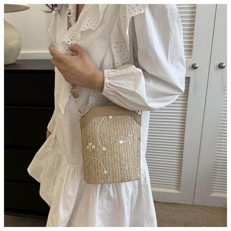 Compra Bolso Cubo Tejido para Mujer 2023 Nuevo Popular en Internet Casual Estilo Francés Estilo Mori Bolso de Mujer Pastoral Estilo Antiguo Bordado Paja Tejida al por mayor en Joom.pro