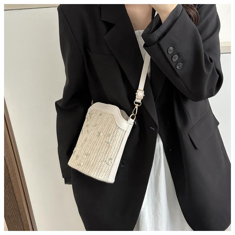 Bolso Cubo Tejido para Mujer 2023 Nuevo Popular en Internet Casual Estilo Francés Estilo Mori Bolso de Mujer Pastoral Estilo Antiguo Bordado Paja Tejida