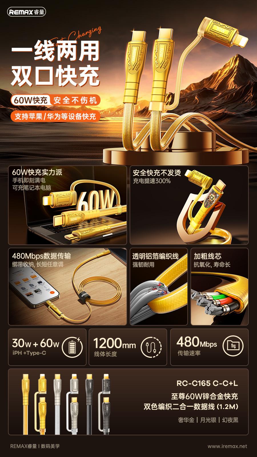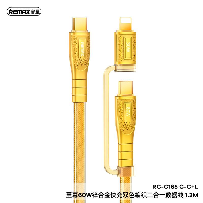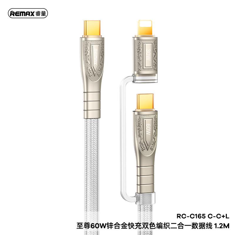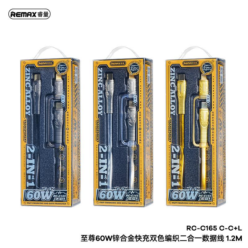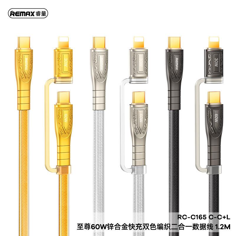 Cable de Datos de Carga Rápida de 60W de Aleación de Zinc Remax Uno-a-Dos Cable de Carga Trenzado Bicolor 1.2m Cable de Carga Rápida