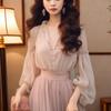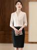 Conjunto de dos piezas blanco de primavera/otoño, elegante, de manga larga, con camisa de gasa a juego y cintura alta, falda tipo A.