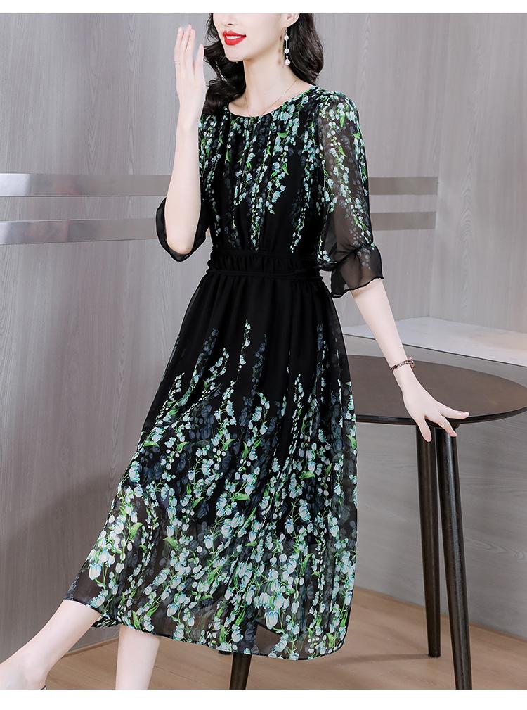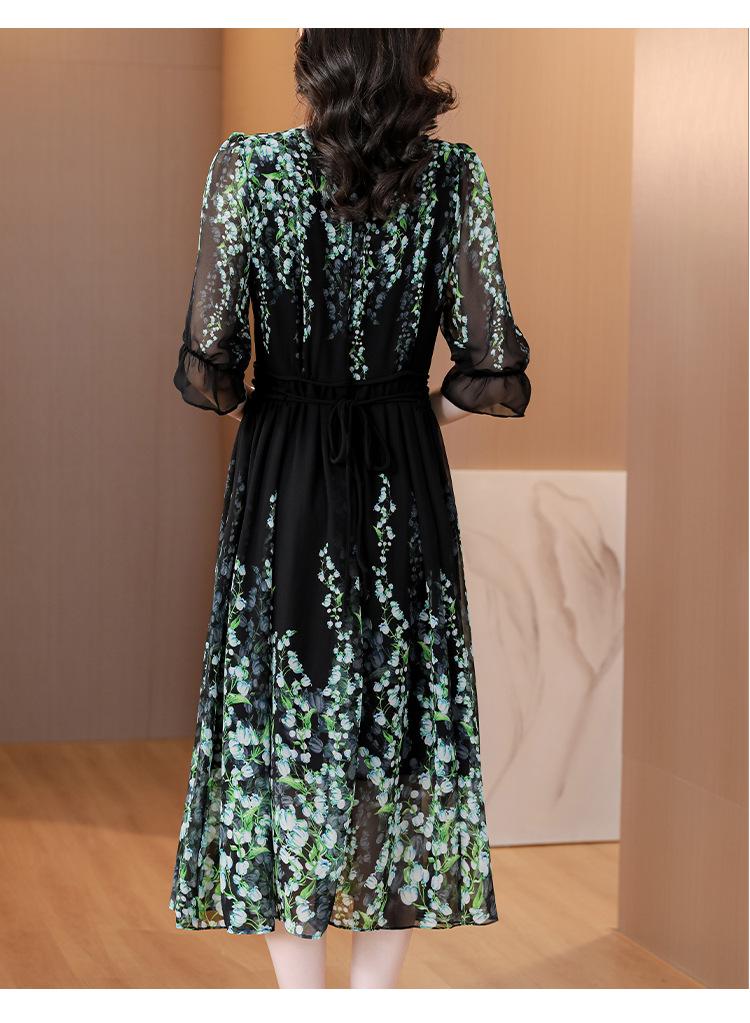Vestido Floral de Cintura Francesa para Mujer 2023 Verano Nuevo Estilo Elegante Estilo Dama Dama Silueta Adelgazante Falda Midi