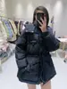 Chamarra de Trabajo con Capucha para Mujer 2025 Invierno Nueva Moda Entallada Tres Botones Gruesa Cálida Plumón de Pato Blanco