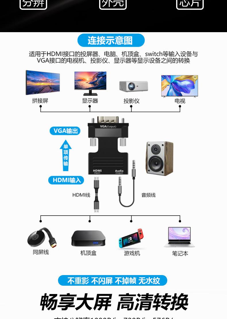 Compra Adaptador convertidor HDMI hembra a VGA macho con audio para proyector, pantalla de computadora HD, decodificador HDMI al por mayor en Joom.pro