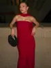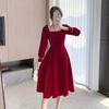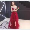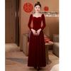 Toast Wear Novia 2025 Nuevo Rojo Manga Larga Puerta Trasera Temperamento Elegante Largo Medio Ajustado Vestido de Noche Falda para Mujer