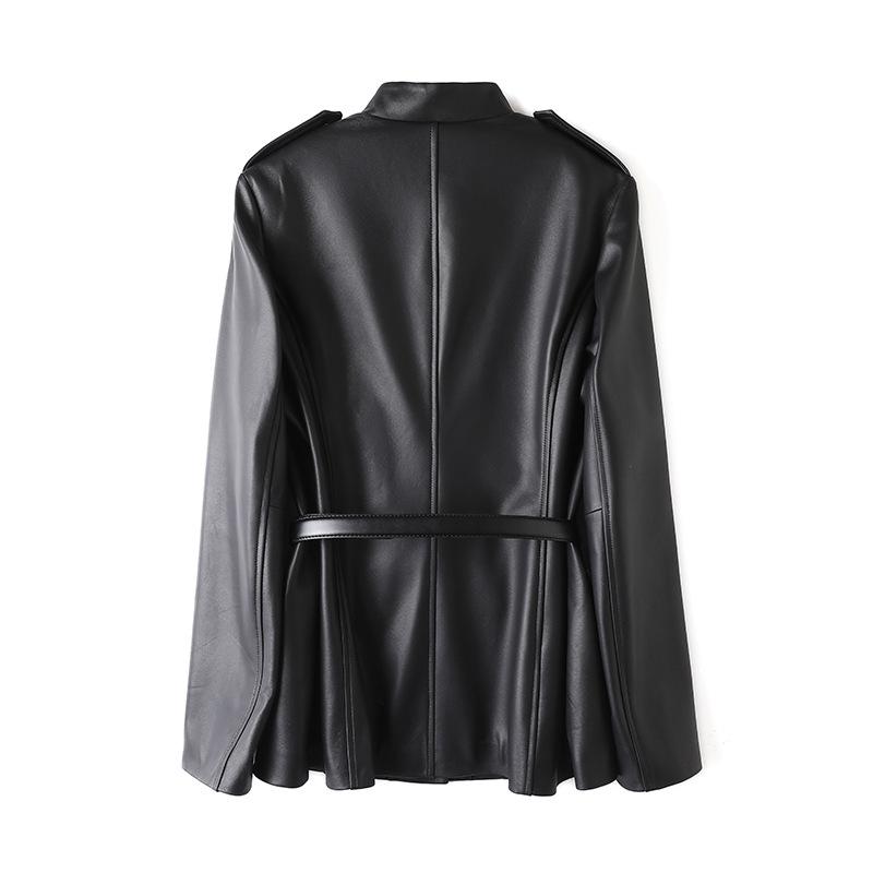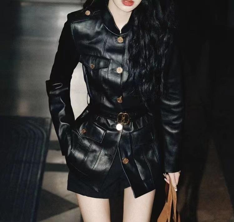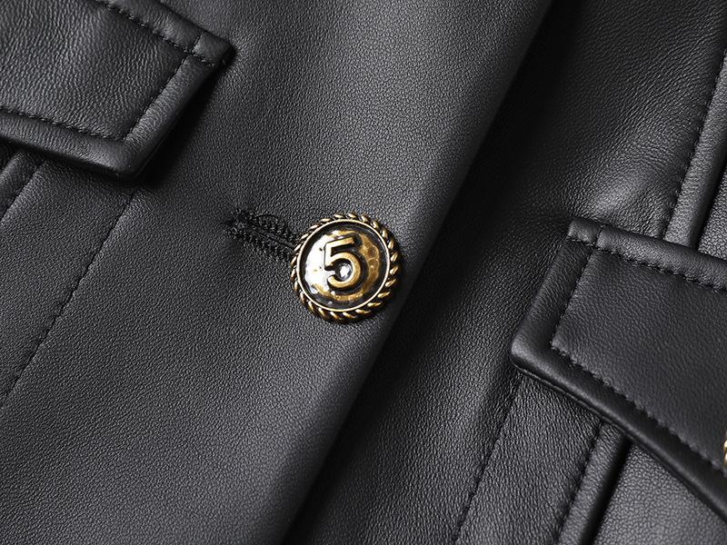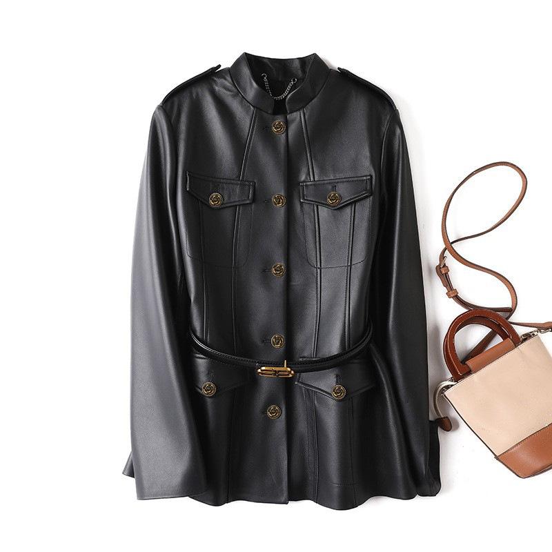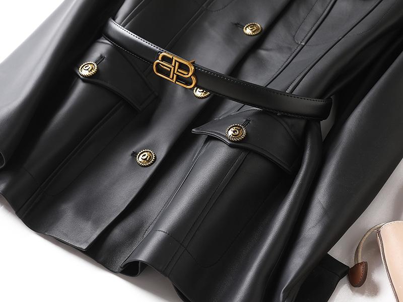 Abrigo de cuero genuino moda primavera y otoño 2024 nuevo estilo retro americano Chanel adelgazante de cintura corte ajustado abrigo de piel de cordero