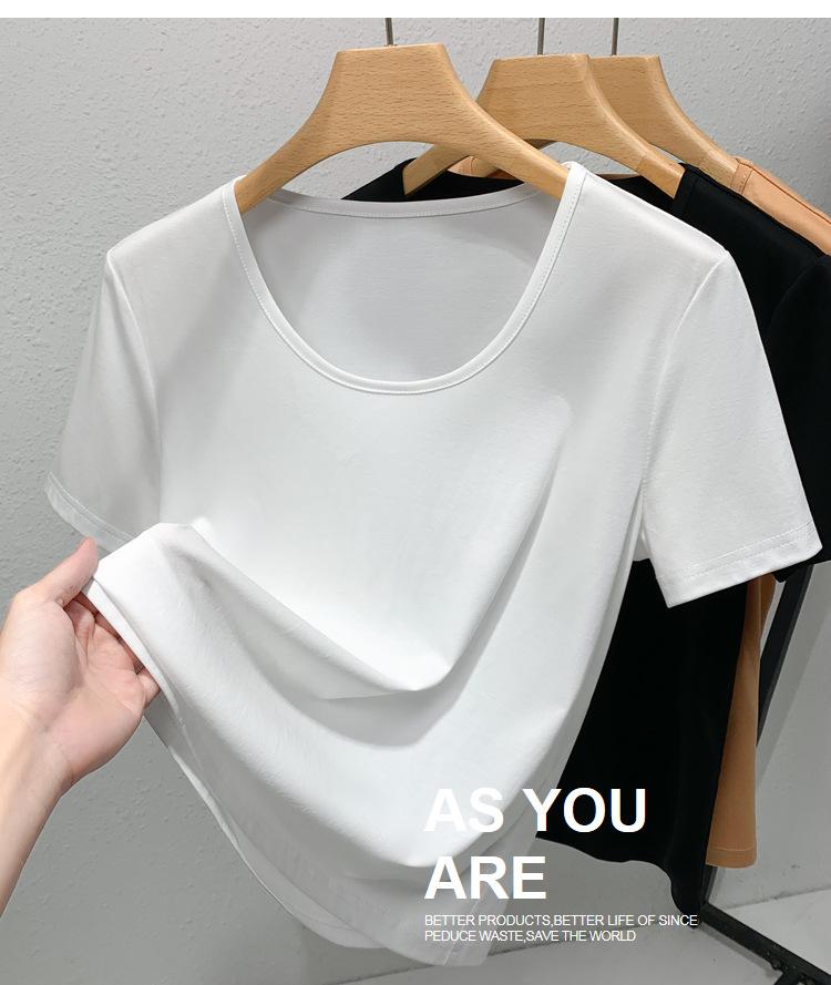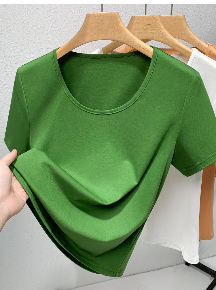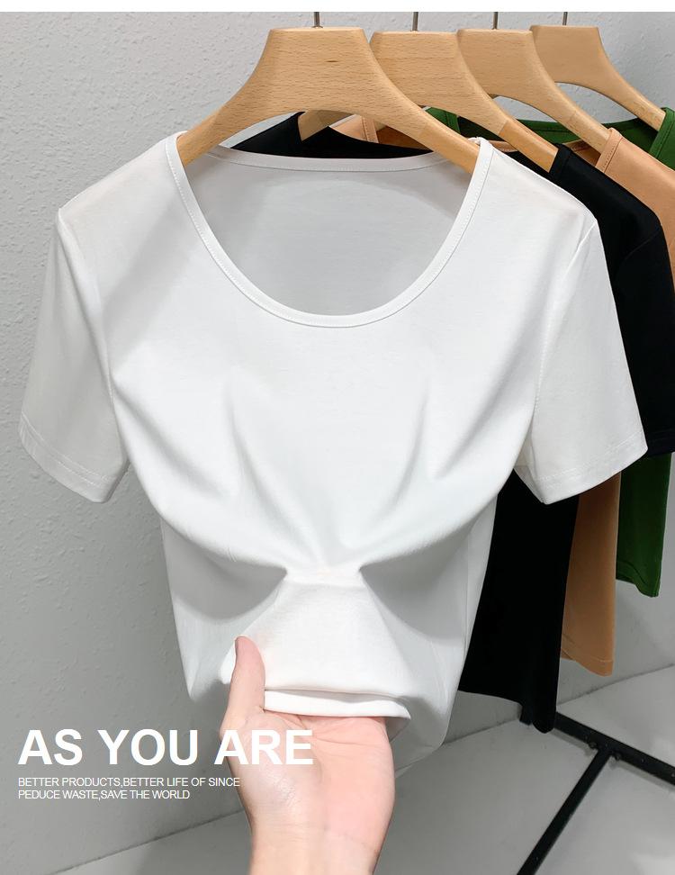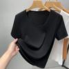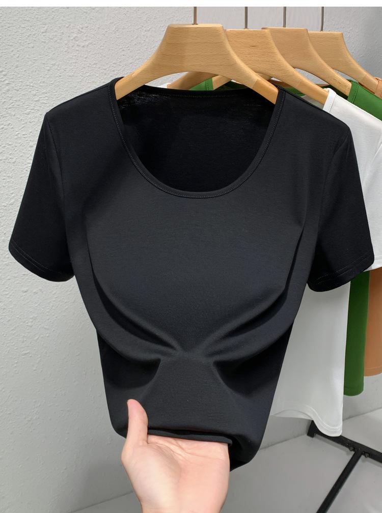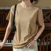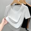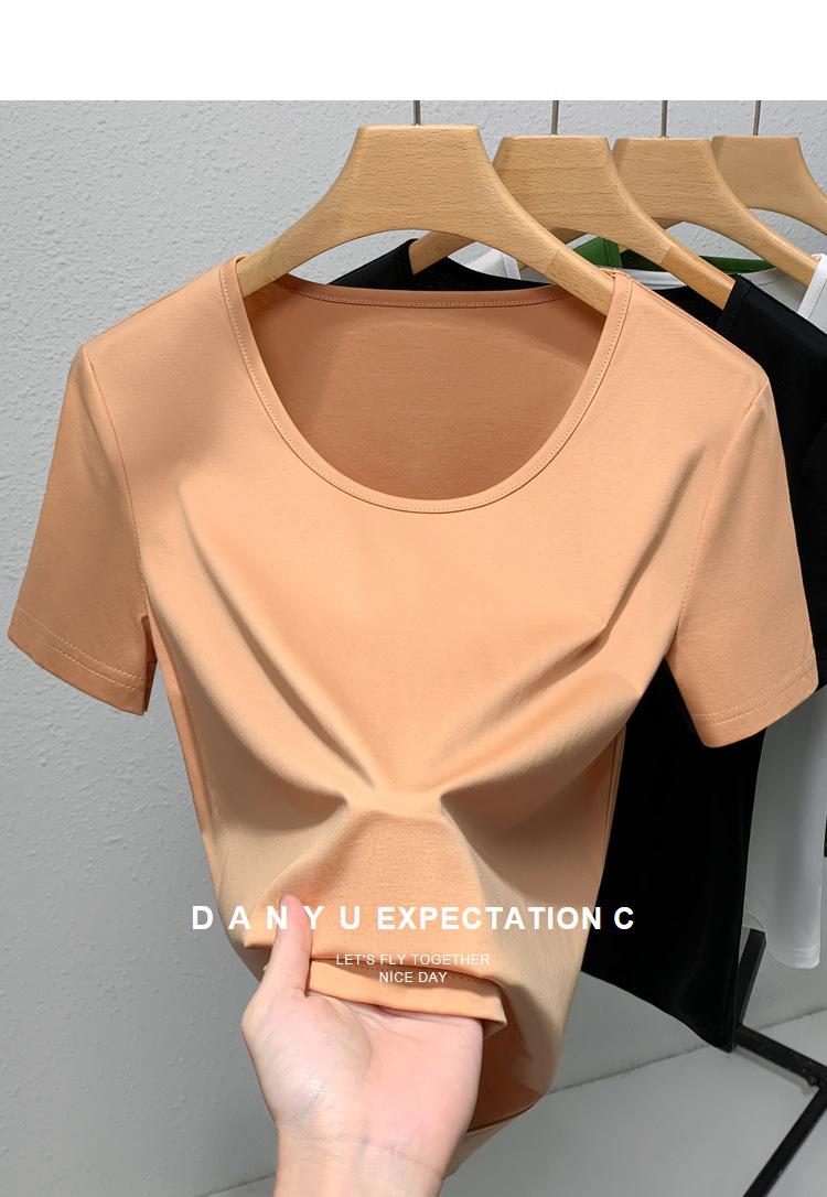 Camiseta de Algodón Mercerizado de Doble Cara de Manga Corta para Mujer Verano 2025 Nueva Camiseta de Algodón Puro con Cuello Redondo Grande en el Hombro Derecho para Mujer Top de Cintura