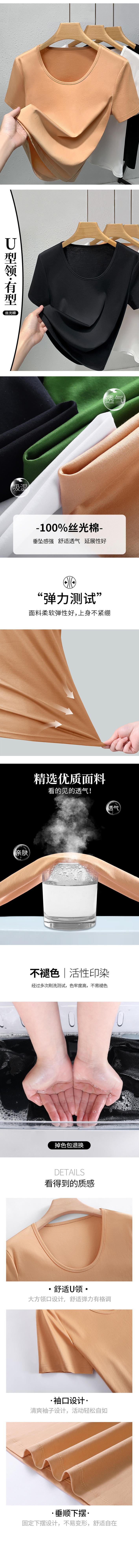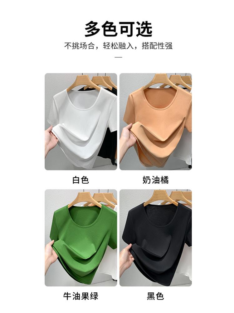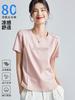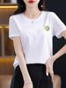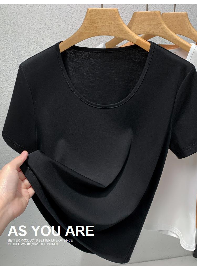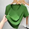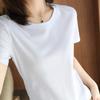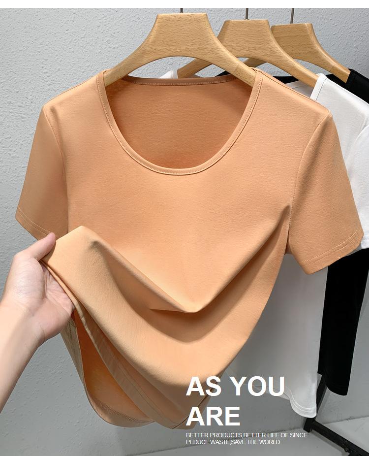 Camiseta de Algodón Mercerizado de Doble Cara de Manga Corta para Mujer Verano 2025 Nueva Camiseta de Algodón Puro con Cuello Redondo Grande en el Hombro Derecho para Mujer Top de Cintura