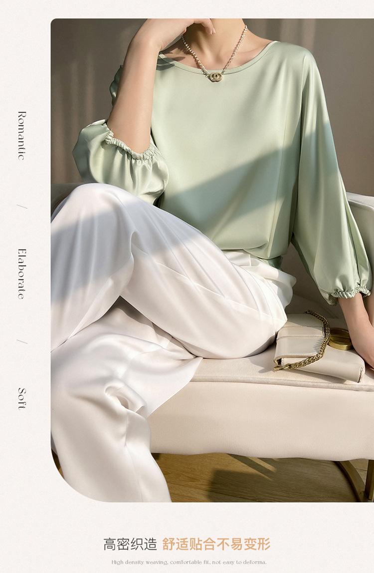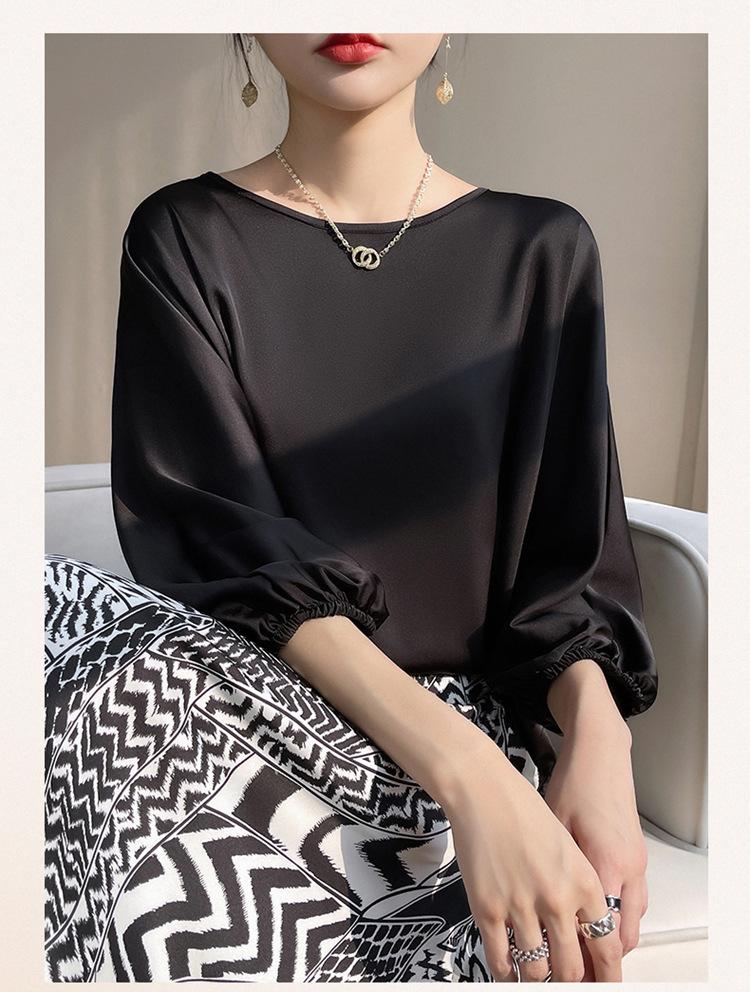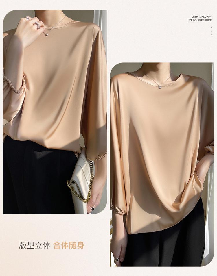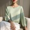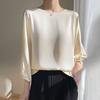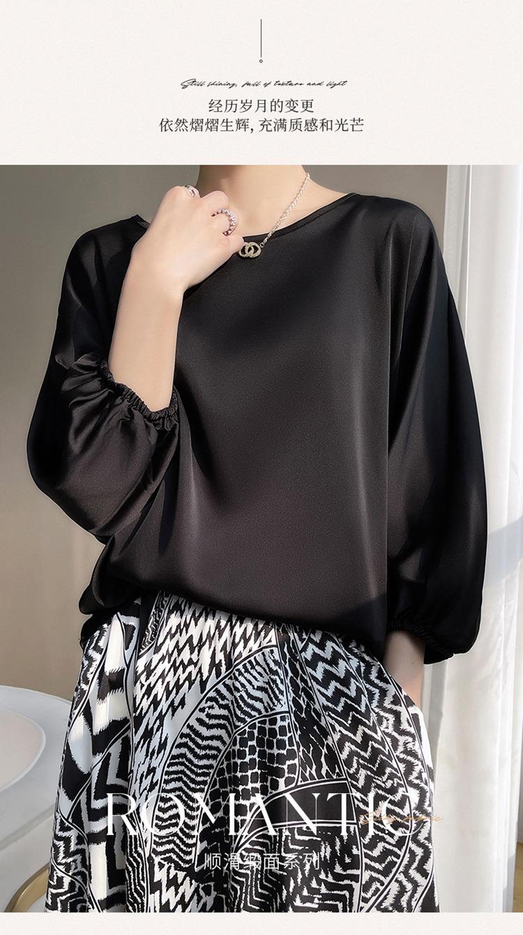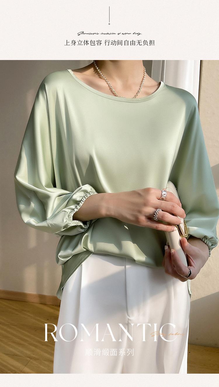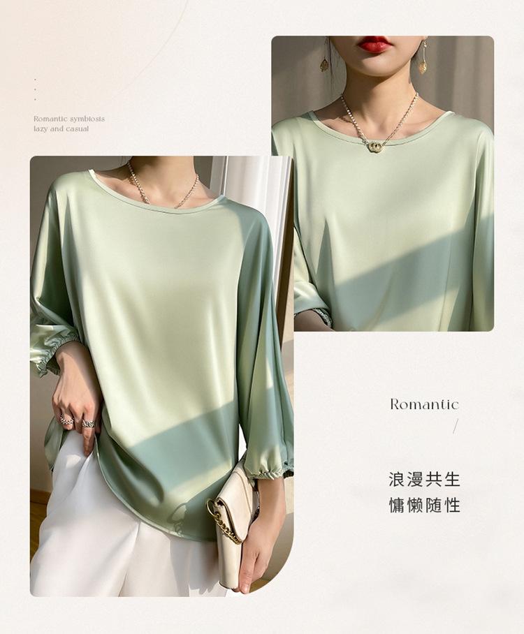 Camiseta de Cuello Redondo y Manga Siete para Verano Nueva Llegada Holgada Satén de Seda Drapeada Delgada Transpirable Talla Grande Camiseta de Media Manga para Mujer