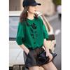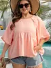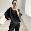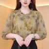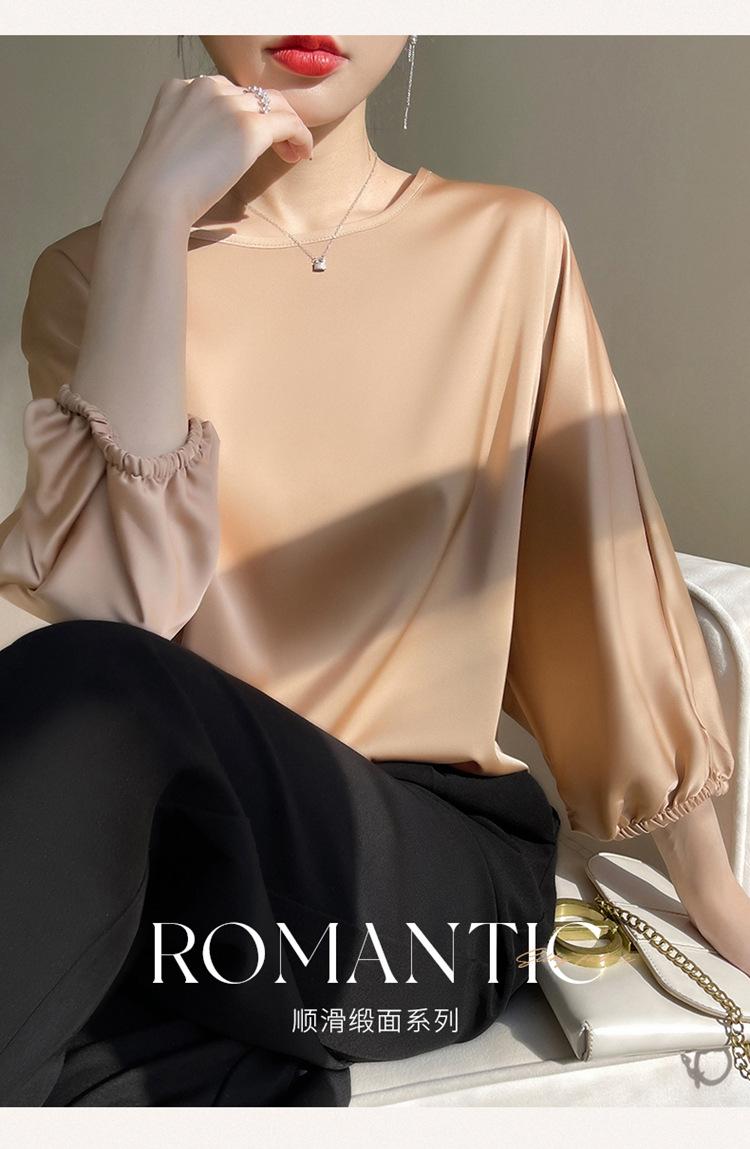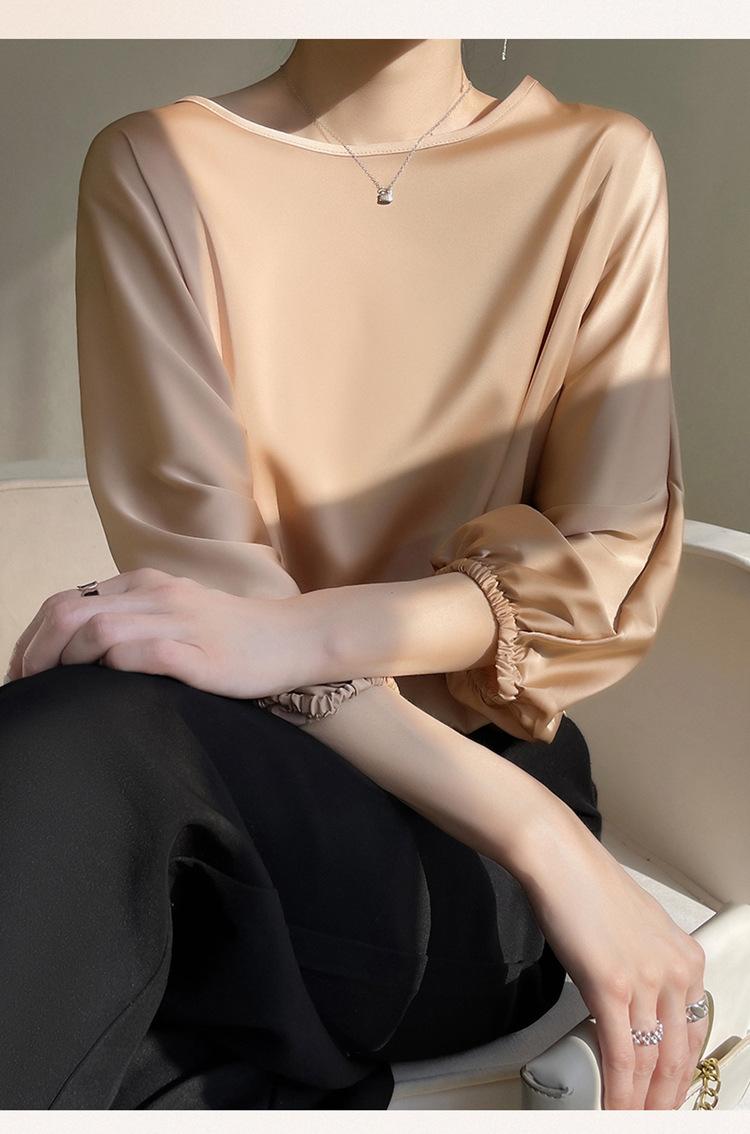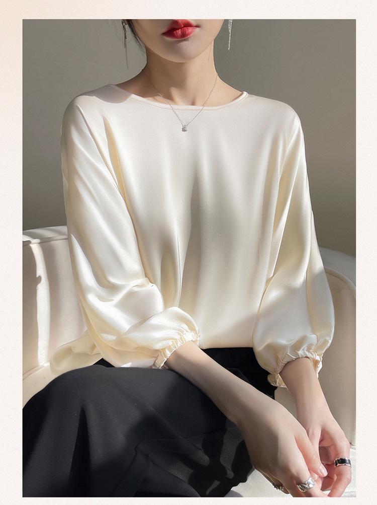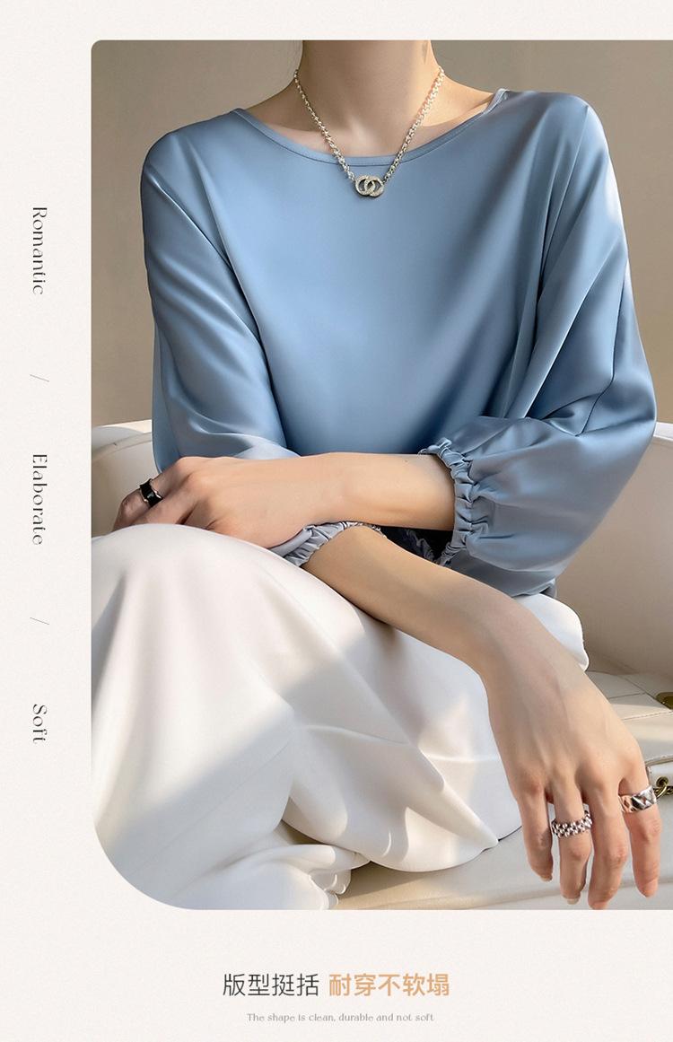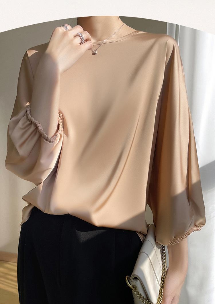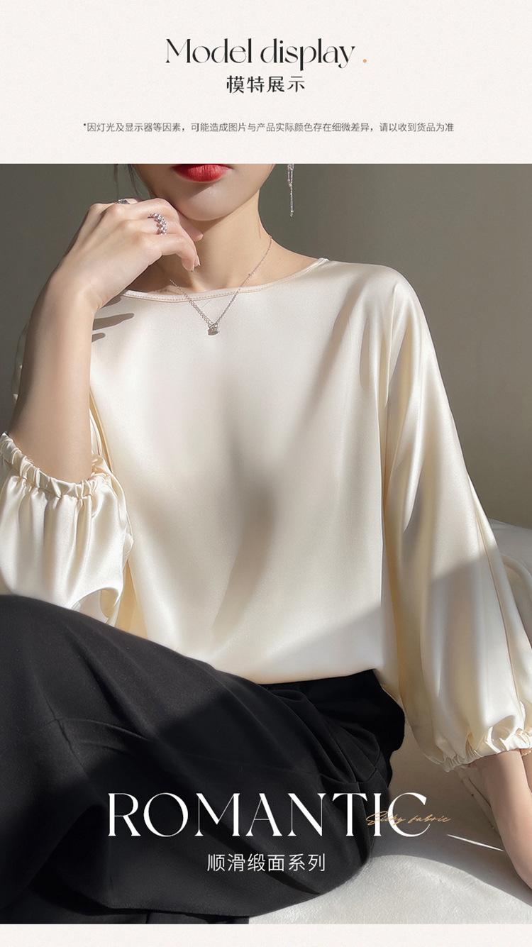 Camiseta de Cuello Redondo y Manga Siete para Verano Nueva Llegada Holgada Satén de Seda Drapeada Delgada Transpirable Talla Grande Camiseta de Media Manga para Mujer