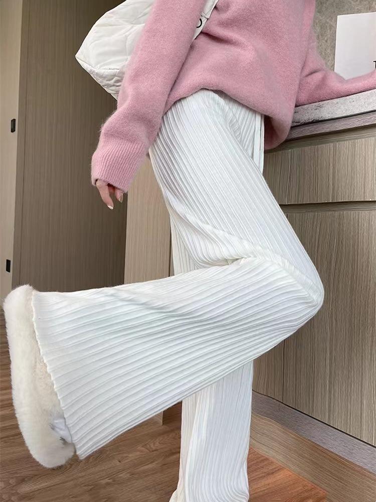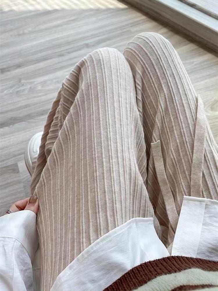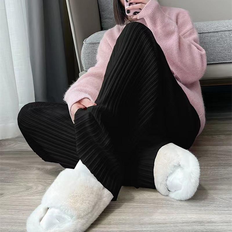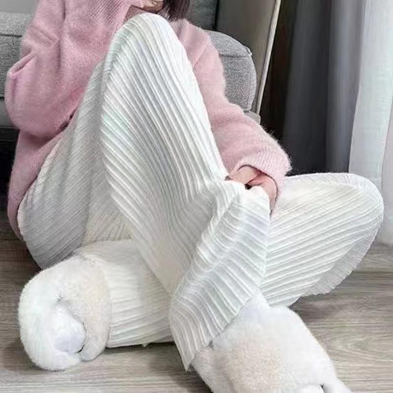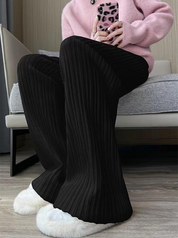 Otoño e Invierno textura tejida pantalones de pierna ancha para mujer con cordón cintura alta adelgazantes drapeados adelgazantes sueltos casuales pantalones de barrido