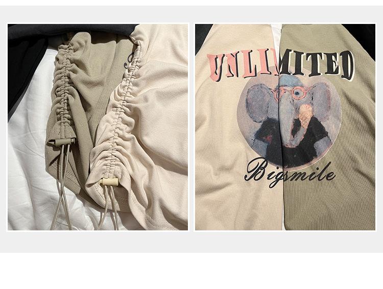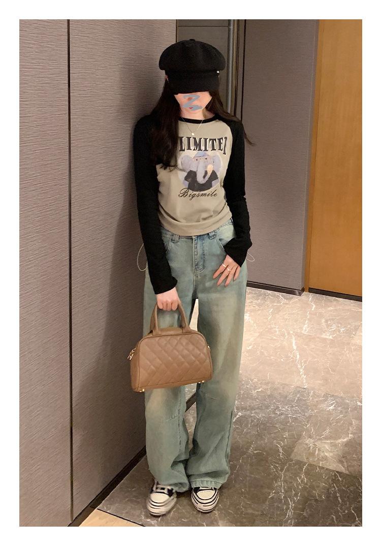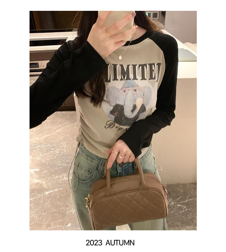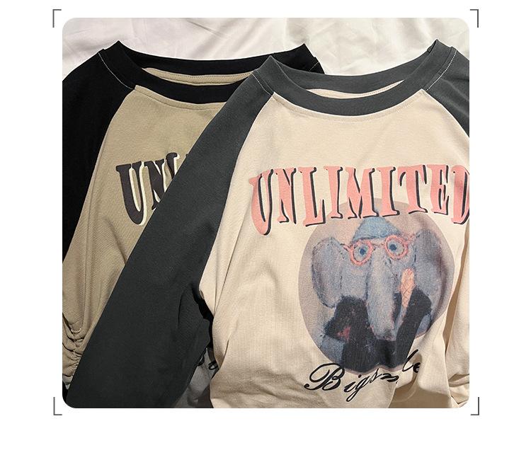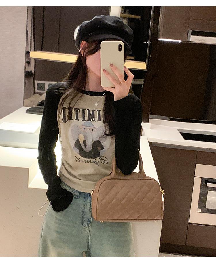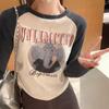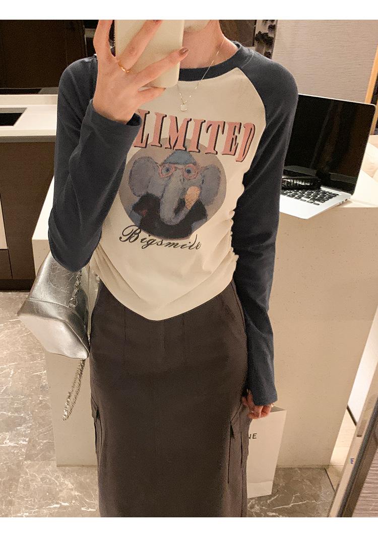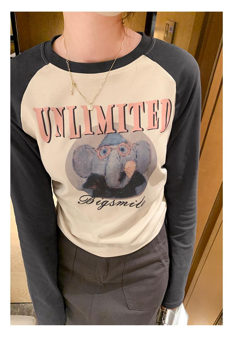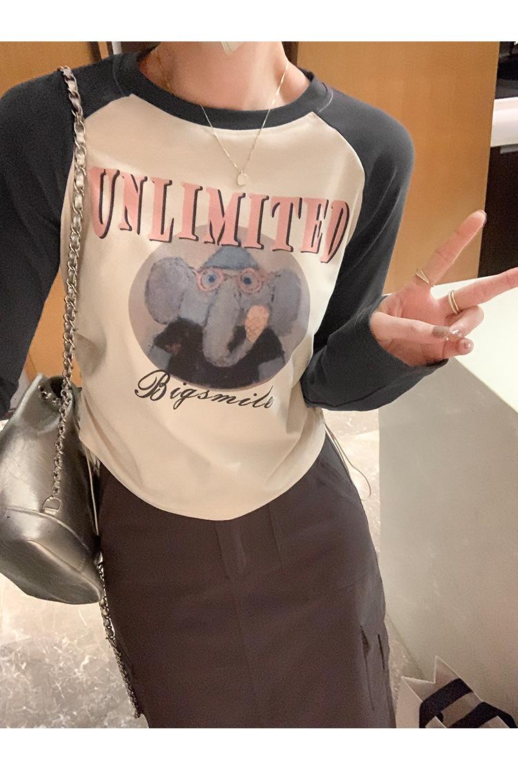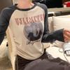 Camiseta de Manga Larga Raglán de Color Contrastante Estilo Coreano con Dibujos Animados para Mujer 2025 Nuevo Otoño e Invierno Moda Pequeña Top Corto con Cordón