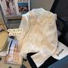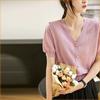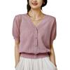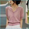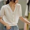 Suéter francés de manga corta dulce para mujer, nuevo suéter de verano con mangas abullonadas y cuello en V fino, camisa elegante y antiedad a la moda.