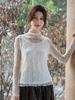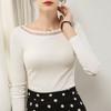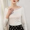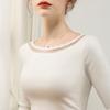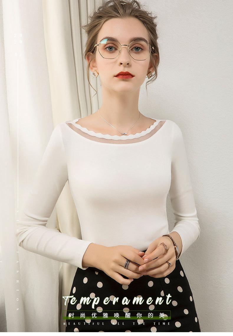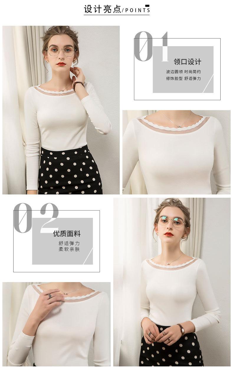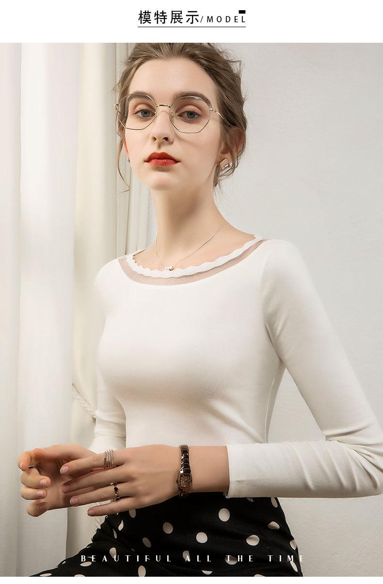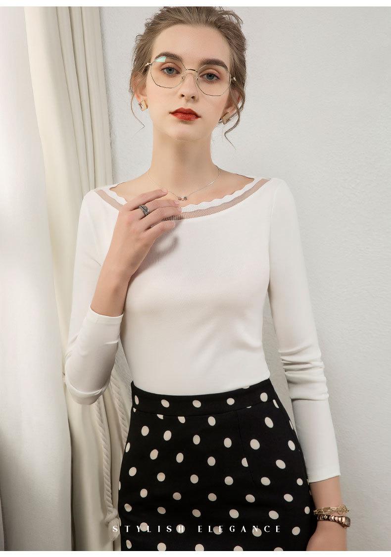 Camiseta básica de algodón con cuello redondo para mujer, de manga larga, ajustada, con encaje, color blanco, para otoño