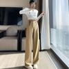 Pantalones Delgados de Lino de Cintura Alta Relajados de Pierna Ancha para Mujer Verano 2025 Nuevo Estilo Transpirables Aspecto Adelgazante Rayados Casuales Rectos