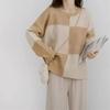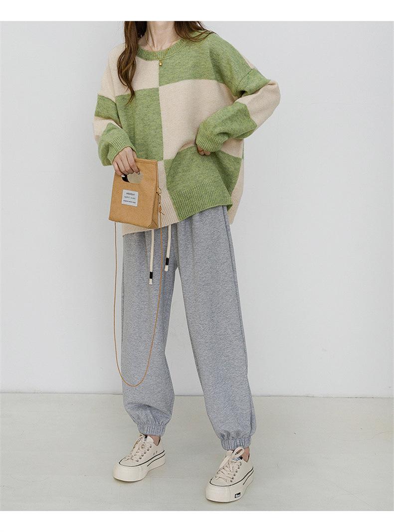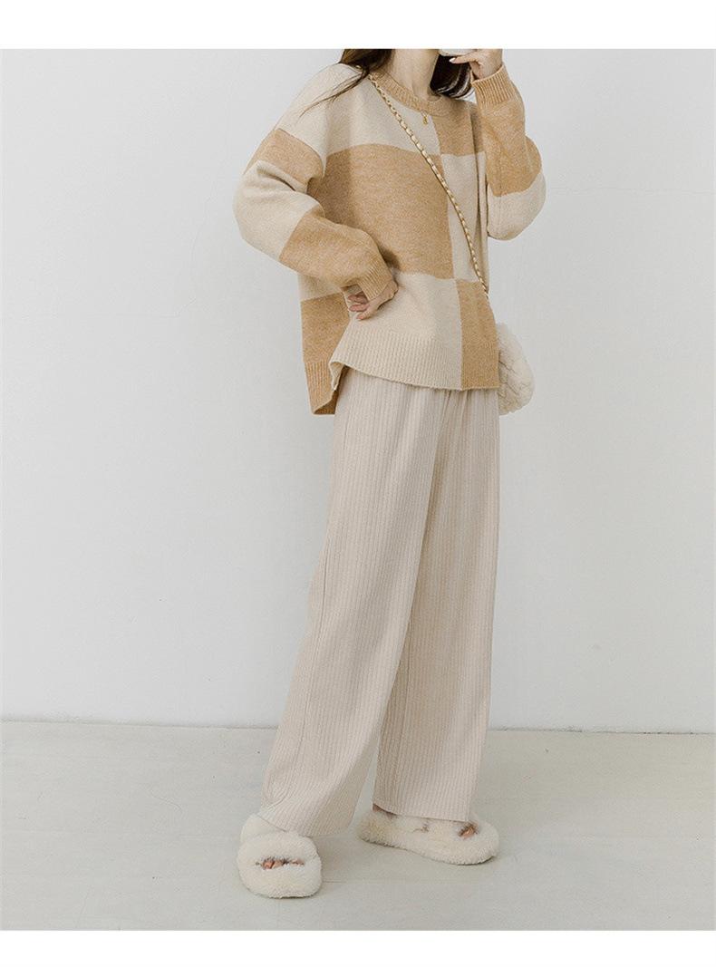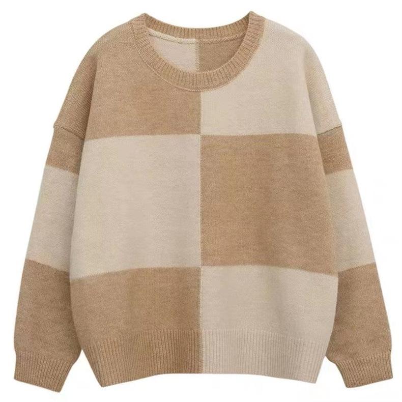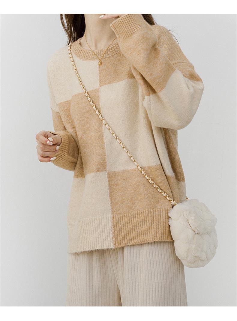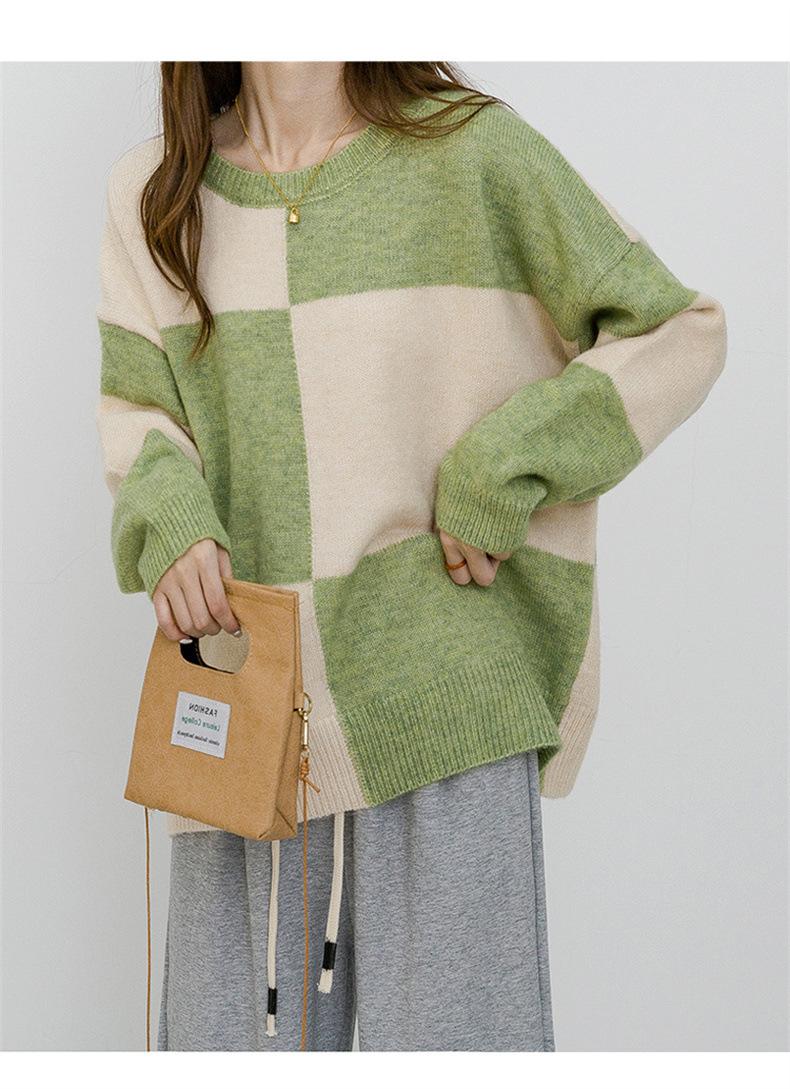 Tejido de punto a juego de colores estilo coreano para mujer otoño e invierno Nuevo suéter holgado adelgazante diseño estilo perezoso manga larga