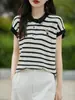 Polo de Cuello Tejido de Manga Corta Camiseta Delgada Corta Suelta Color Puro Cárdigan de Mujer Nuevo Suave Camiseta Delgada
