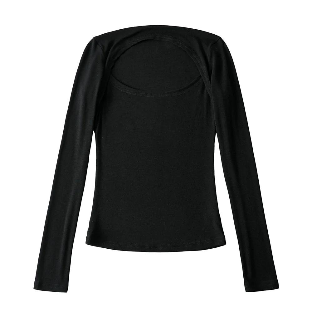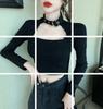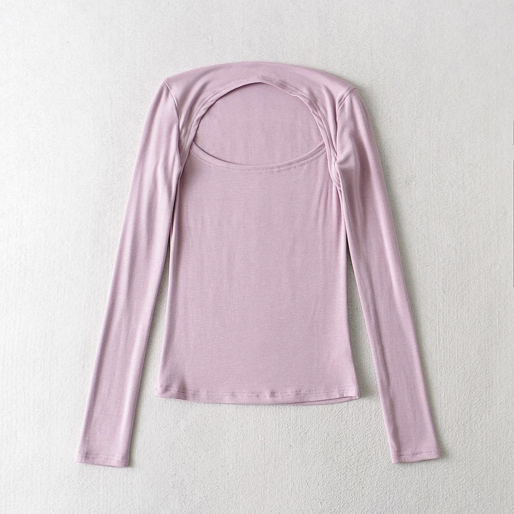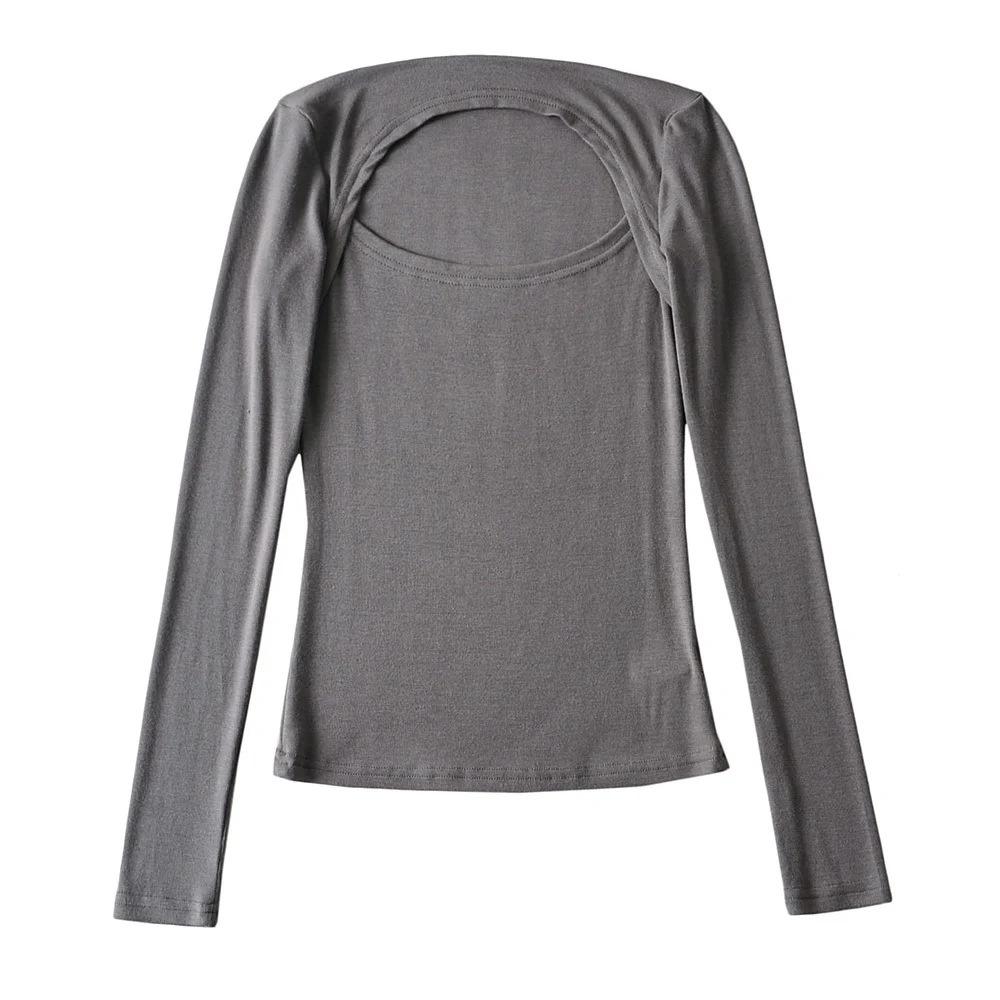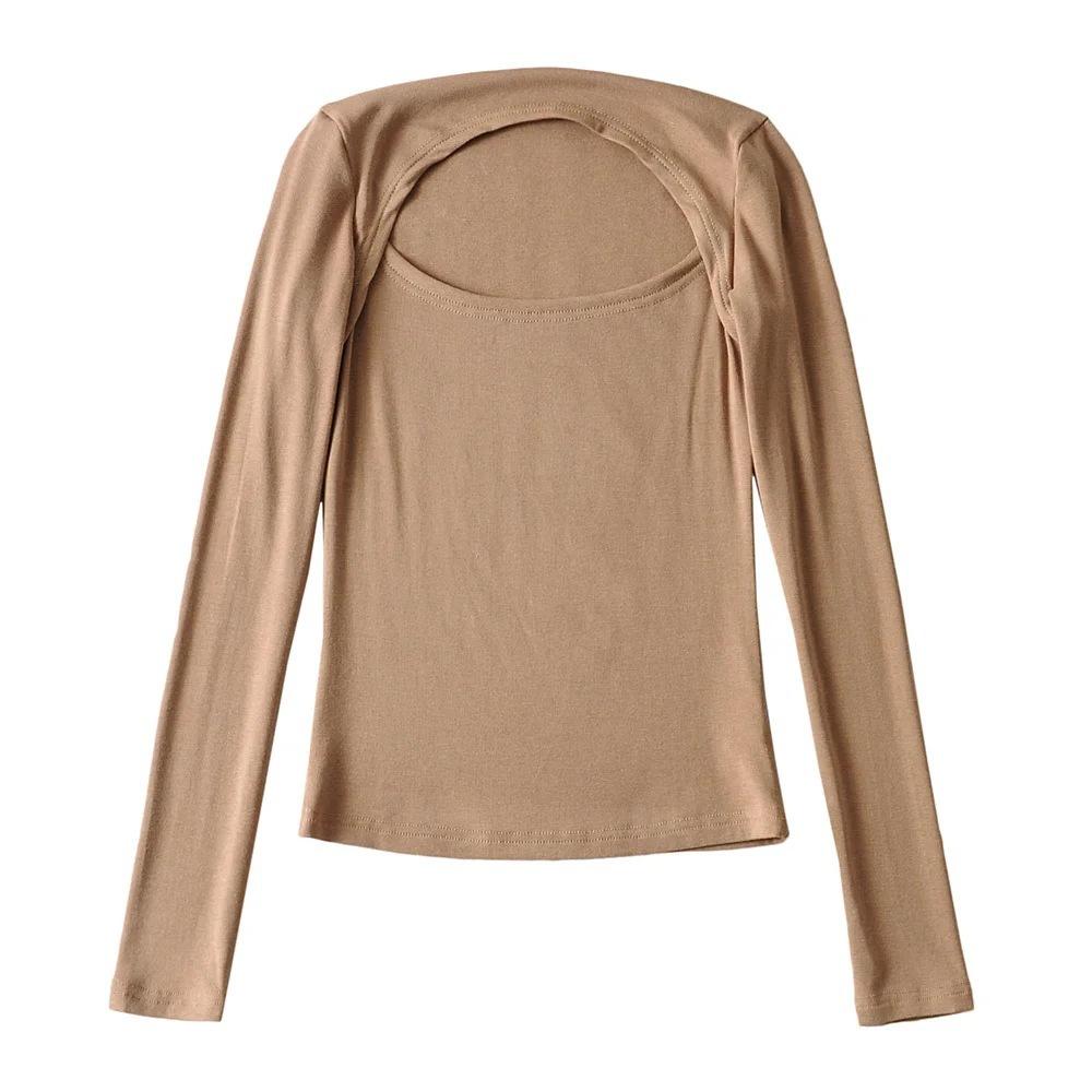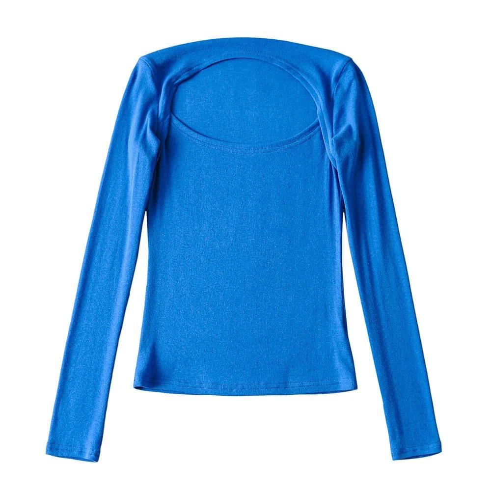 Camiseta de manga larga ajustada y elástica de color sólido sexy para mujer, estilo europeo y americano, otoño