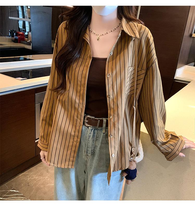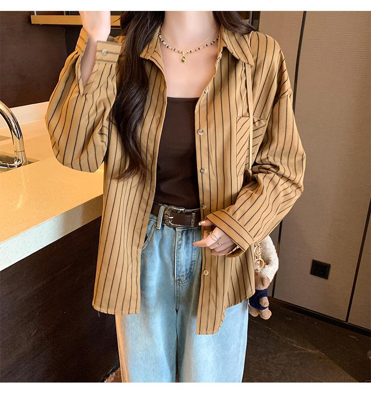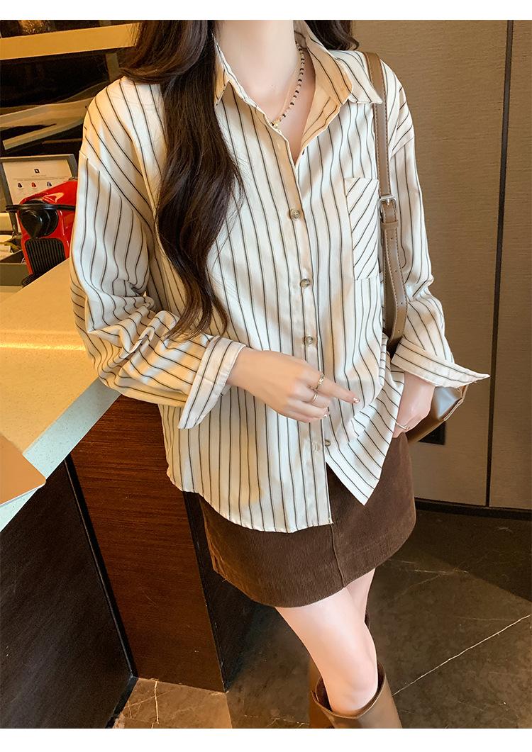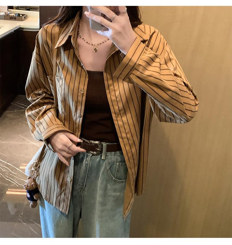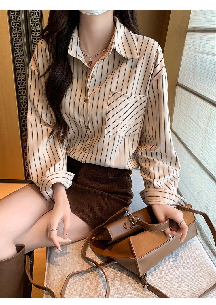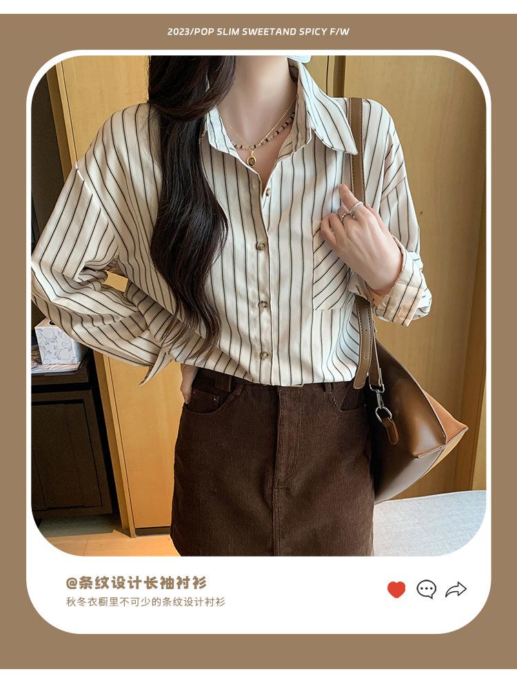 Camisa Nicho de Diseño Francés a Rayas para Mujer Primavera y Otoño 2023 Nuevo Estilo Top Interior en Capas Invierno