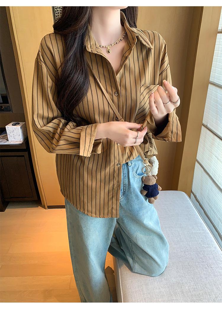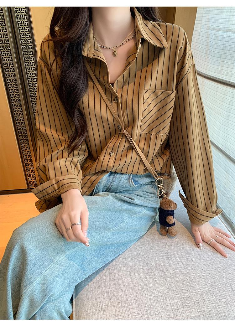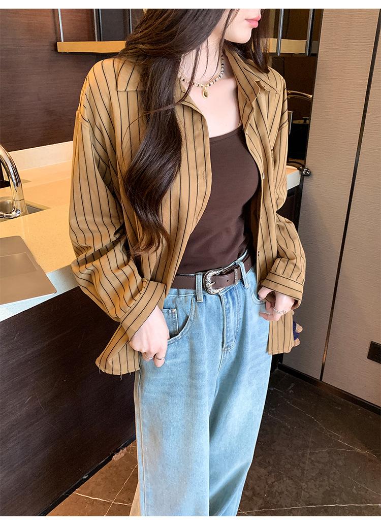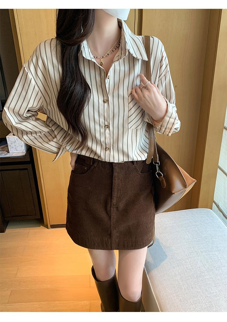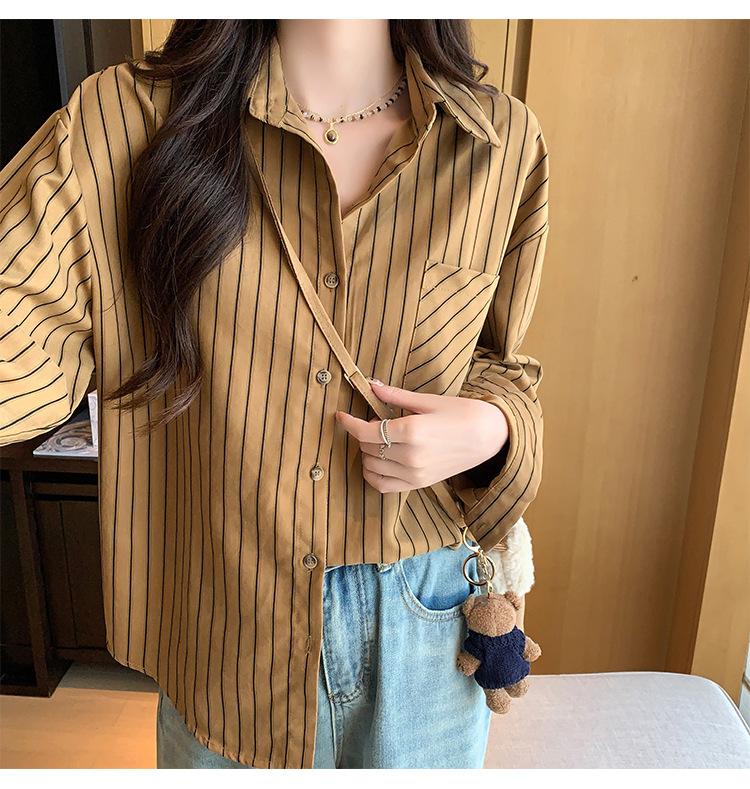 Camisa Nicho de Diseño Francés a Rayas para Mujer Primavera y Otoño 2023 Nuevo Estilo Top Interior en Capas Invierno