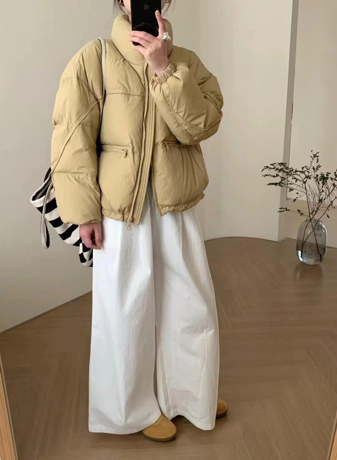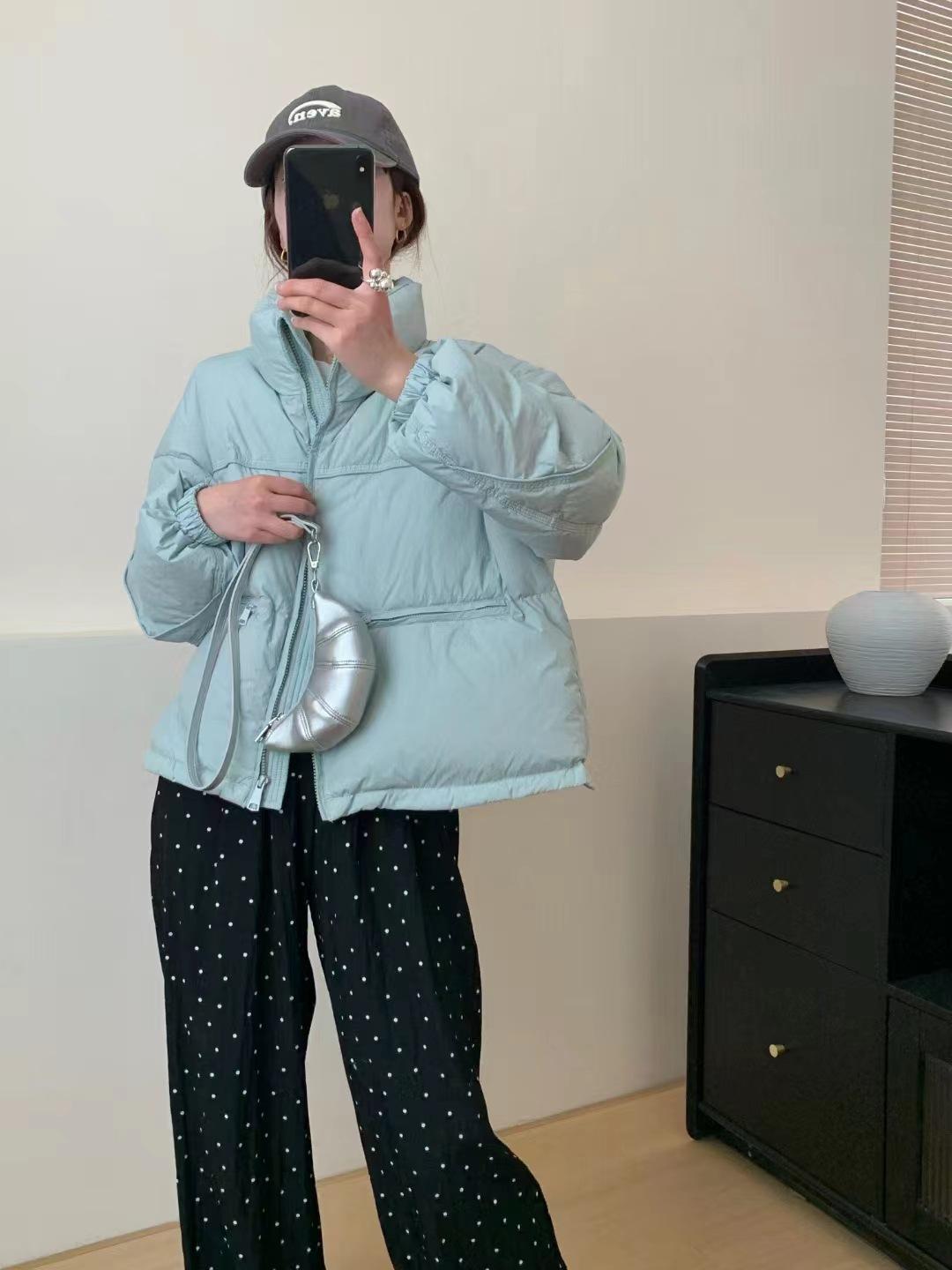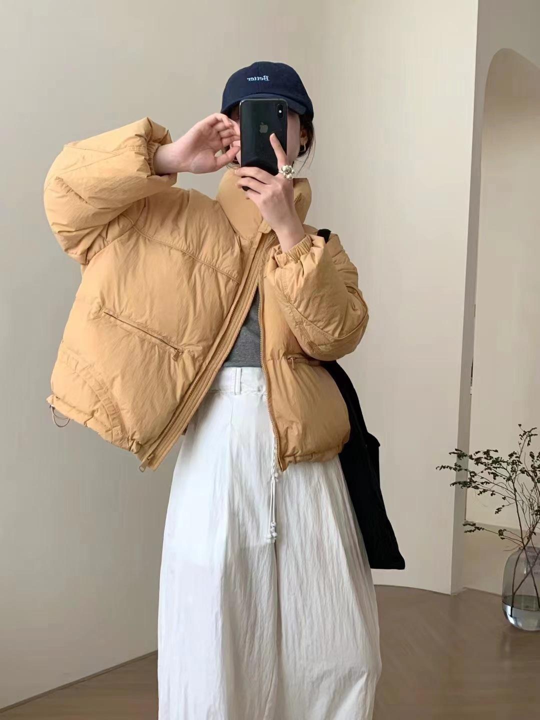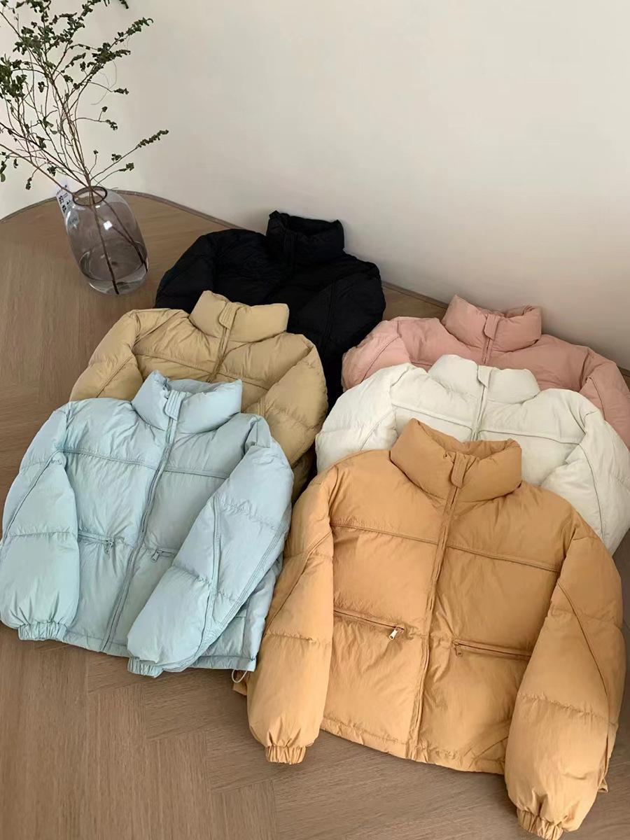 Chaqueta de plumón de moda estilo coreano para mujer, corta, estilo nuevo de invierno, cuello alto, plumón de pato blanco, chamarra acolchada petite para estudiante, abrigo cálido
