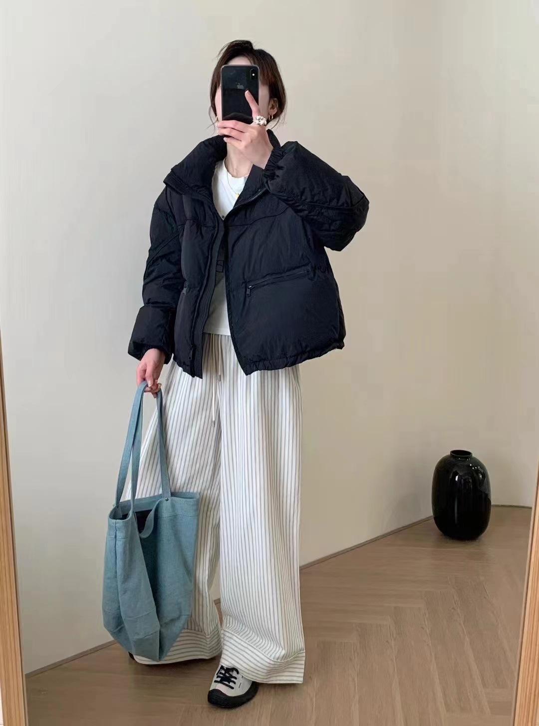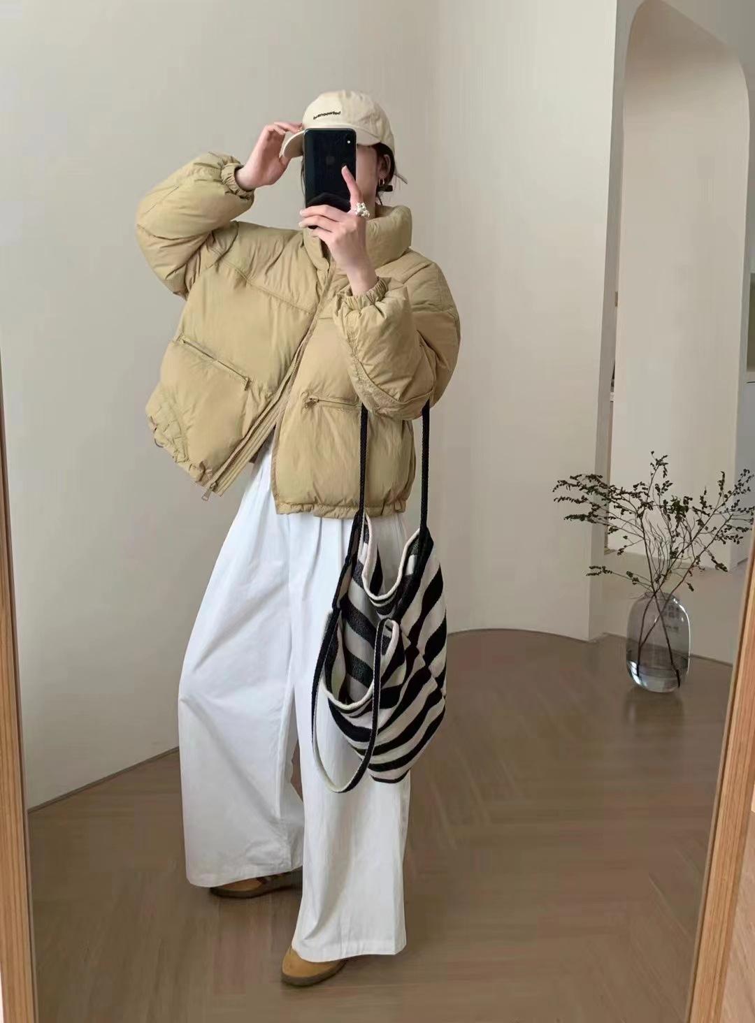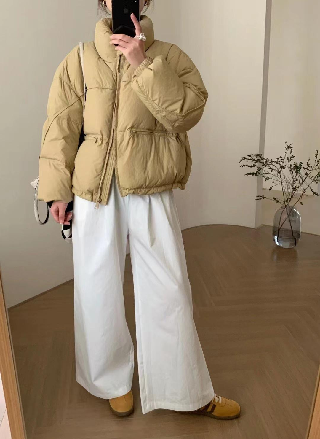 Chaqueta de plumón de moda estilo coreano para mujer, corta, estilo nuevo de invierno, cuello alto, plumón de pato blanco, chamarra acolchada petite para estudiante, abrigo cálido