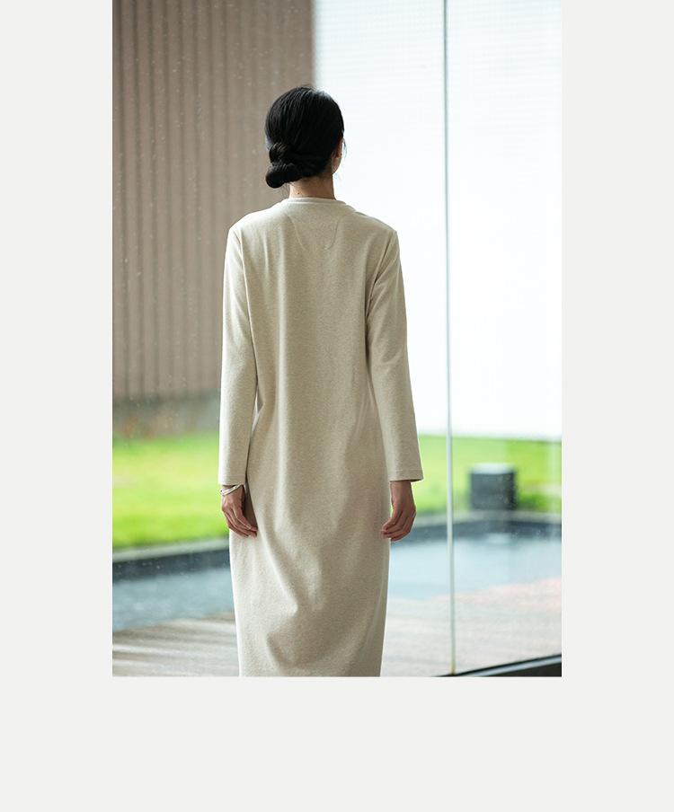 Otoño 2025 Vestido de Mujer de Algodón Suelto Estilo Zen Chino Cheongsam Retro Cuello Mao Manga Larga