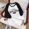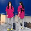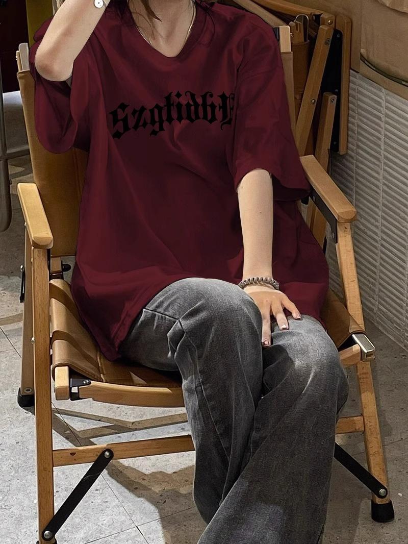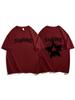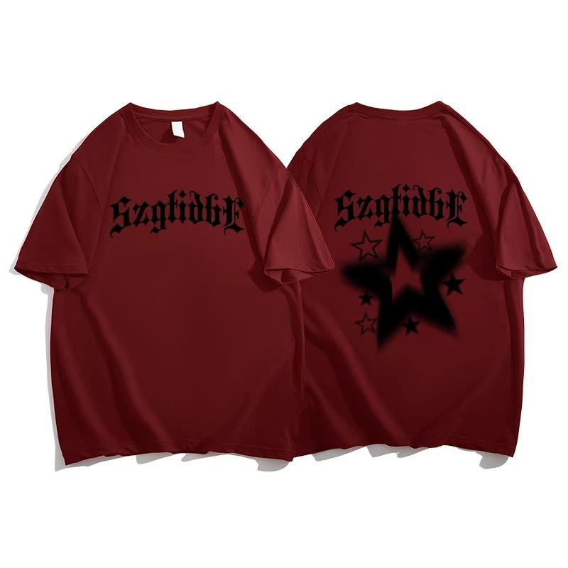 Camiseta de manga corta de algodón rojo vino para mujer, novedad de verano 2024, diseño holgado, estilo americano, marca de moda.