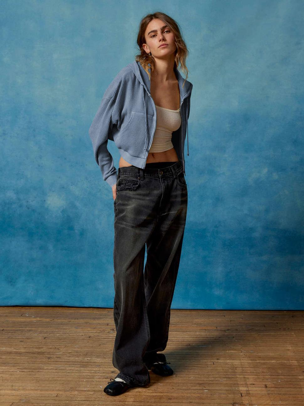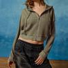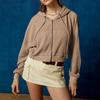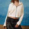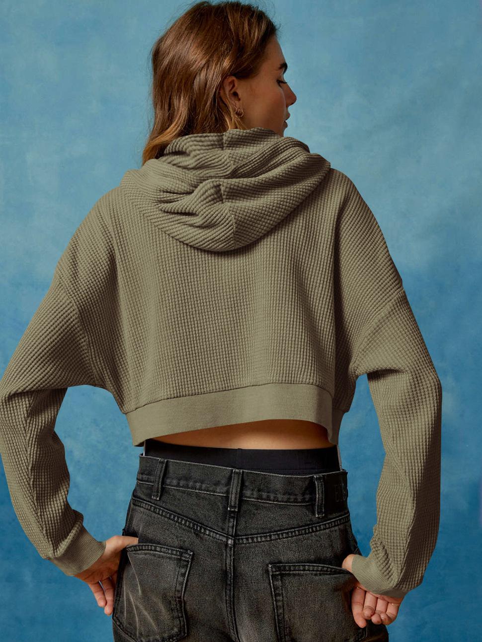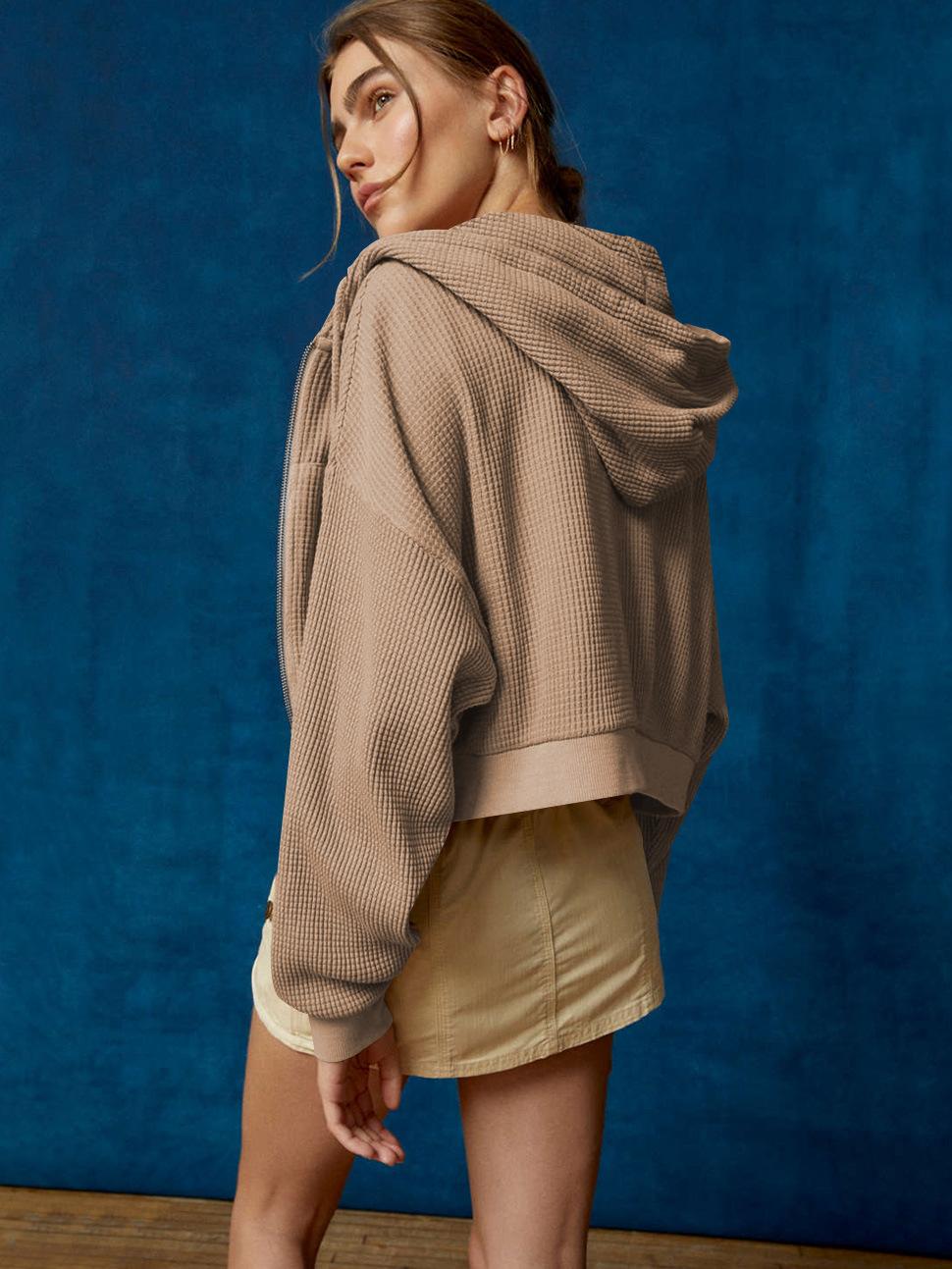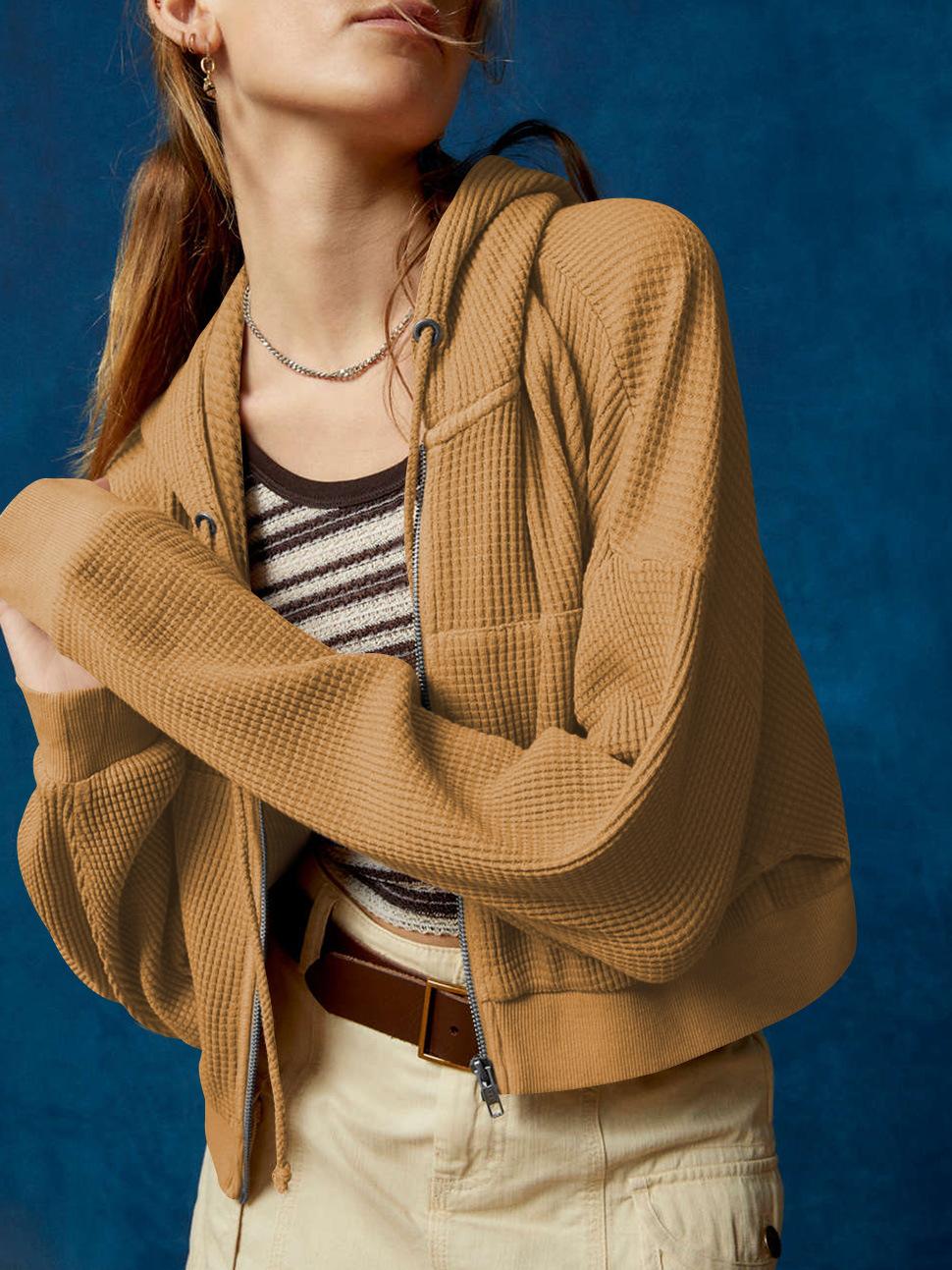 Suéter casual de otoño nuevo transfronterizo para mujer, adelgazante, con capucha, cárdigan con cremallera, estilo europeo y americano, gofre de color sólido, abrigo corto