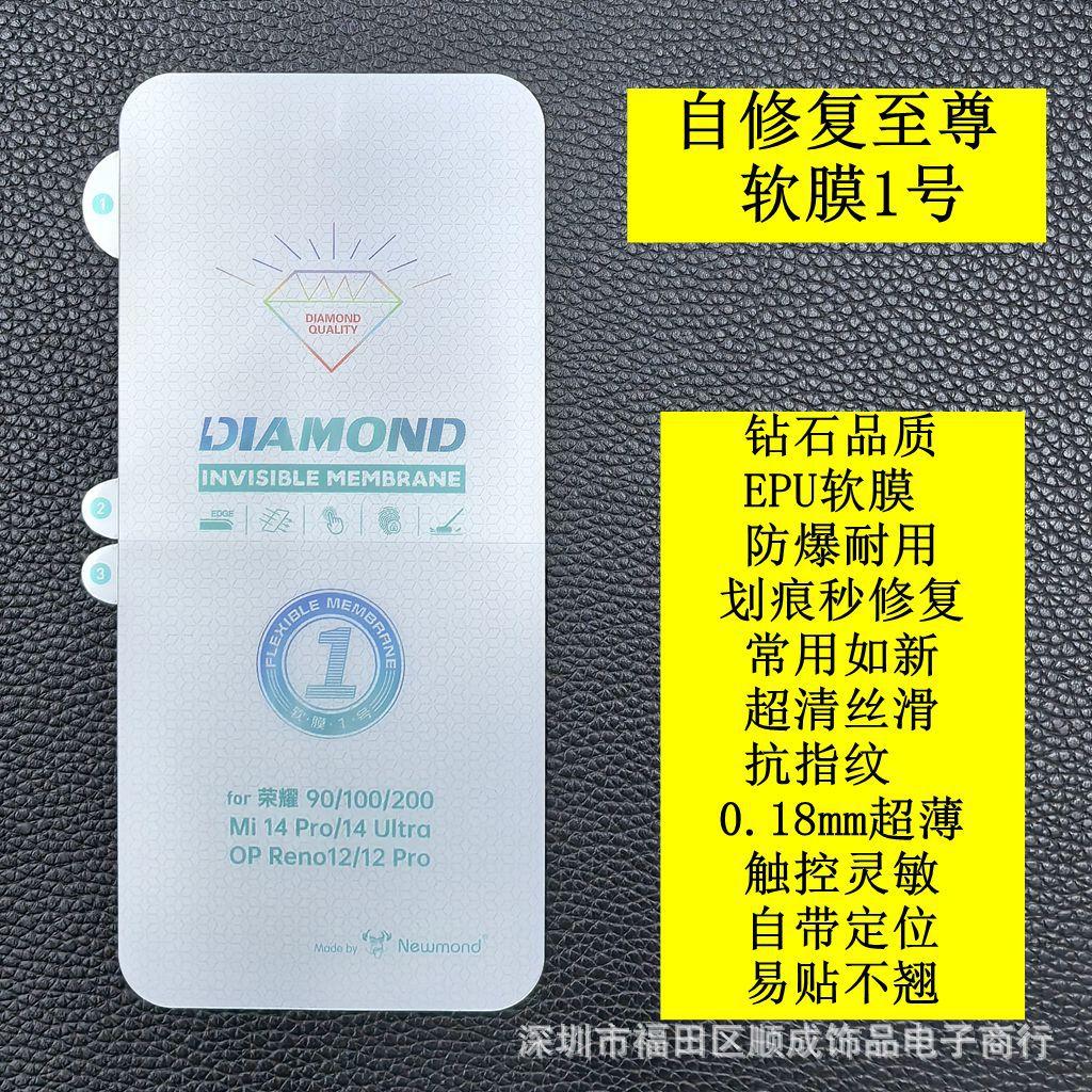 Película de diamante clásica de alta calidad, película suave HD, suave, a prueba de explosiones, duradera con pegatinas de posicionamiento, fácil de pegar y sensible al tacto.