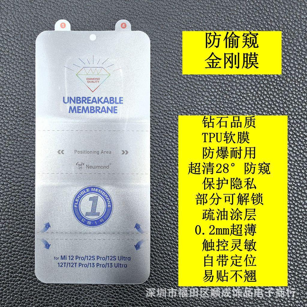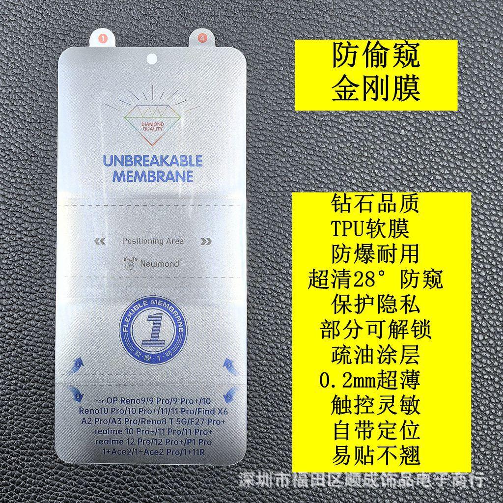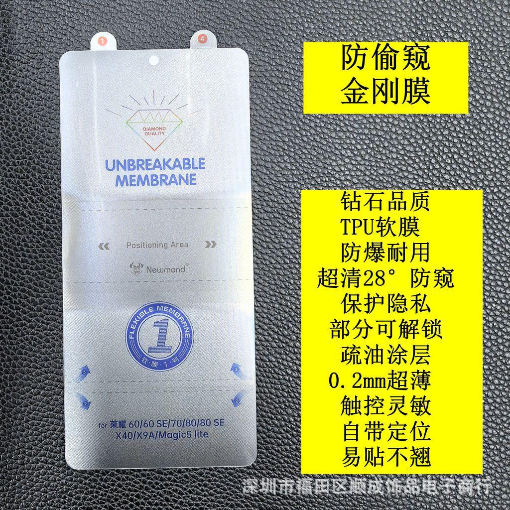 Película de diamante anti-mirones Protección anti-mirones de alta definición y alta transparencia Privacidad delgada y liviana a prueba de explosiones y duradera Sensible al tacto y suave Antihuellas Adhesivo de posicionamiento autónomo Fácil de pegar Las piezas también se pueden desbloquear