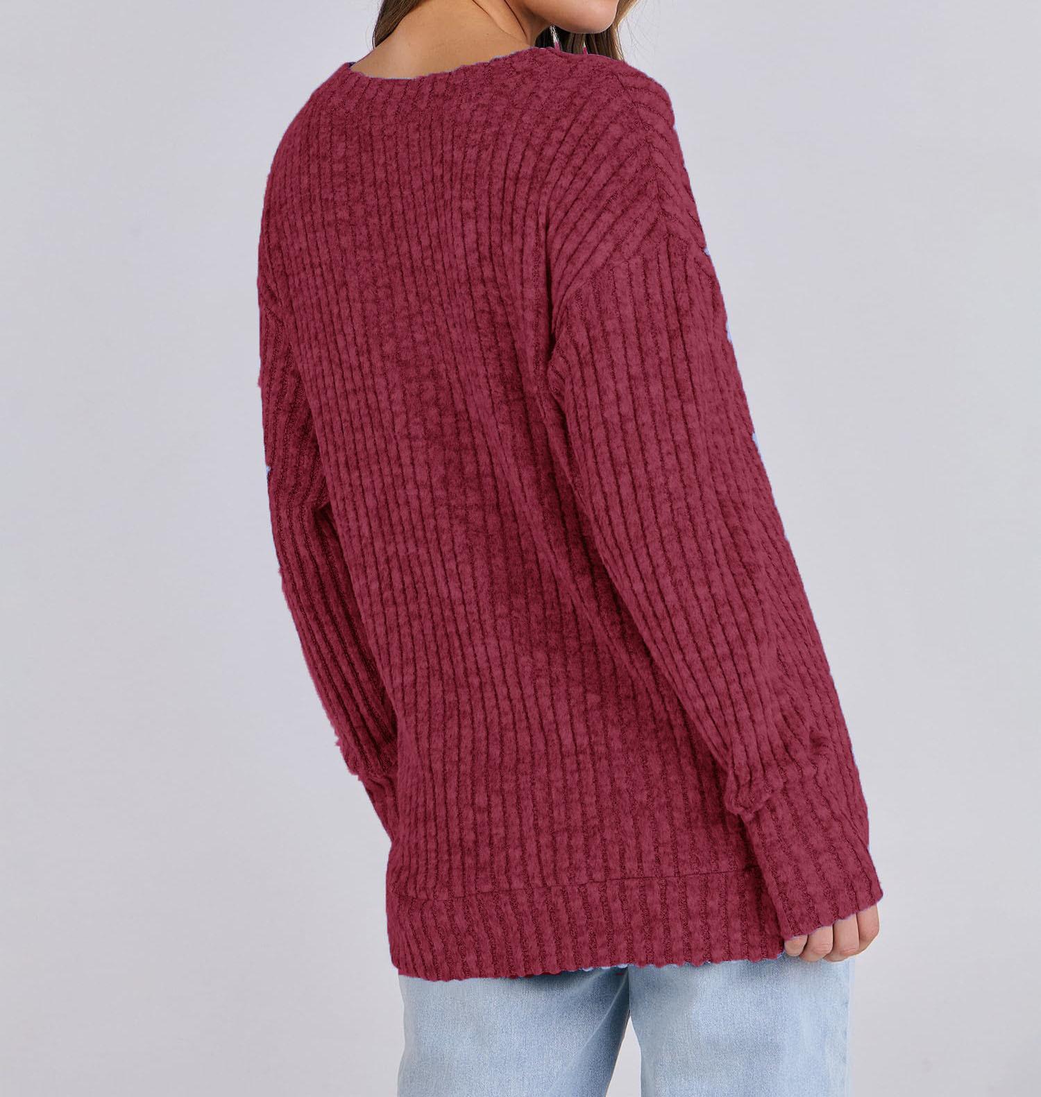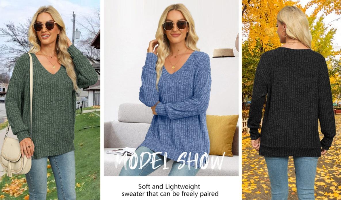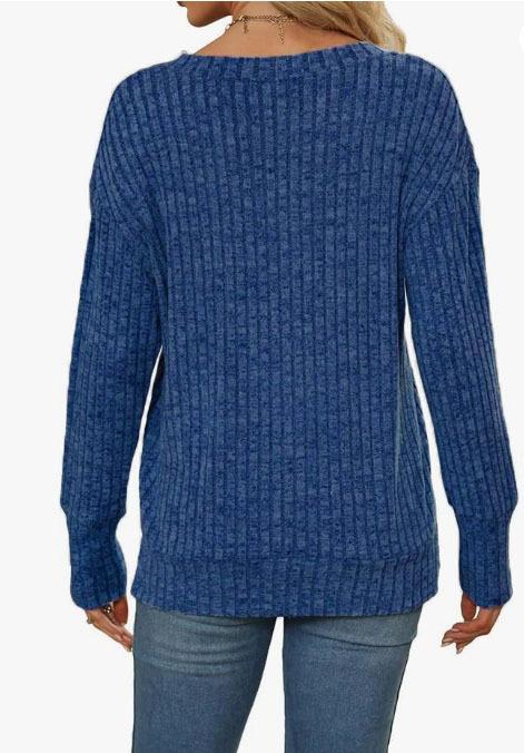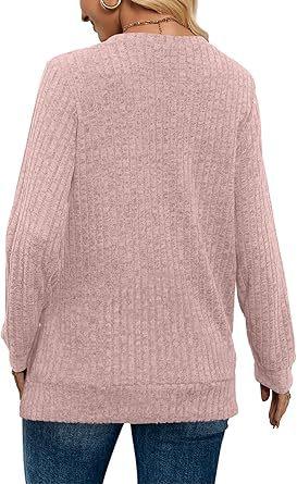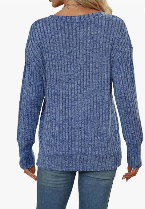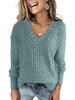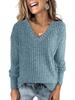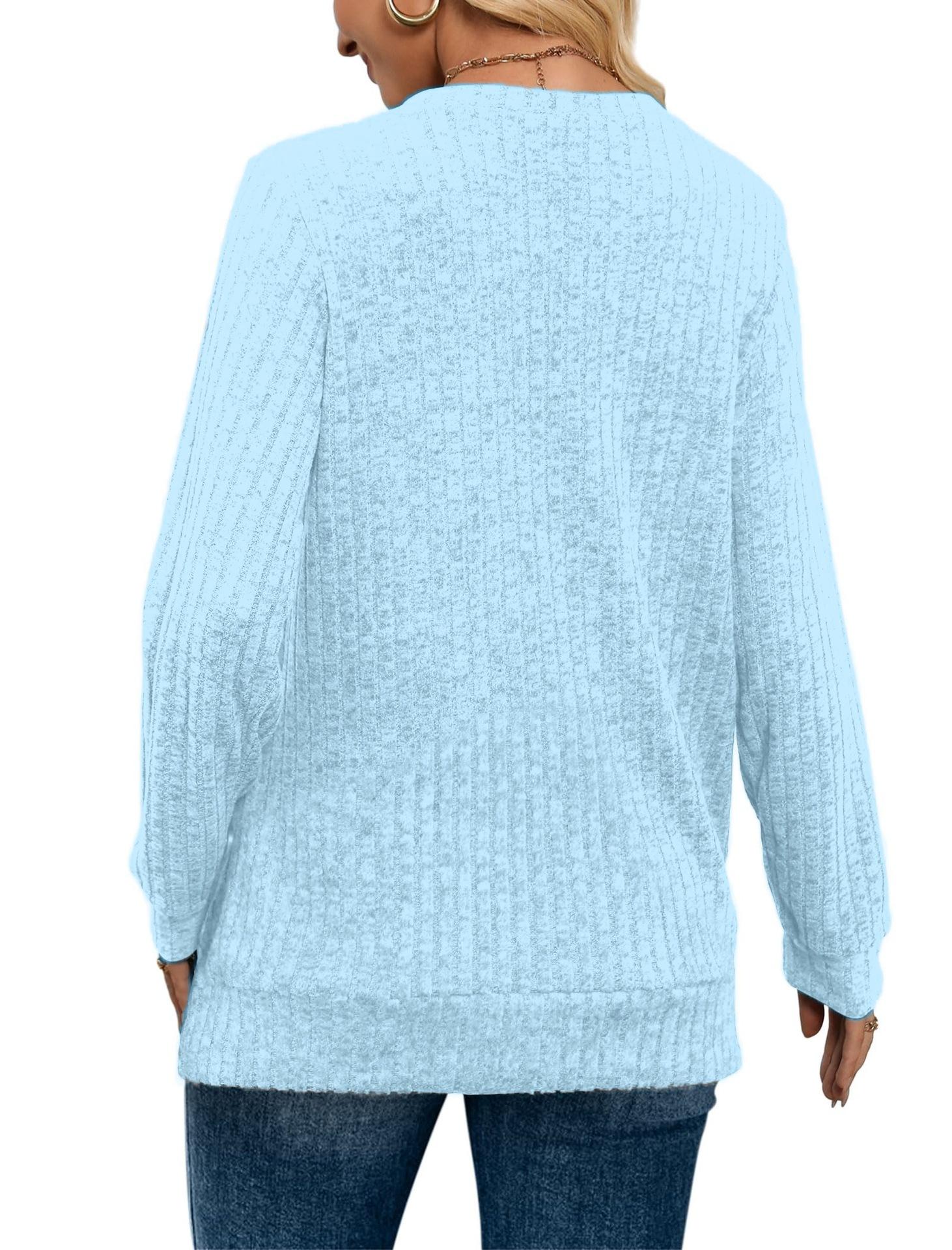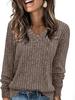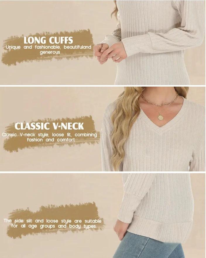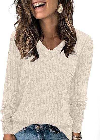 2024 Amazon Wish Europeo y Americano Transfronterizo Popular Exportación para Mujer Manga Larga Cuello en V Canalé Cepillado Punto Top Camiseta