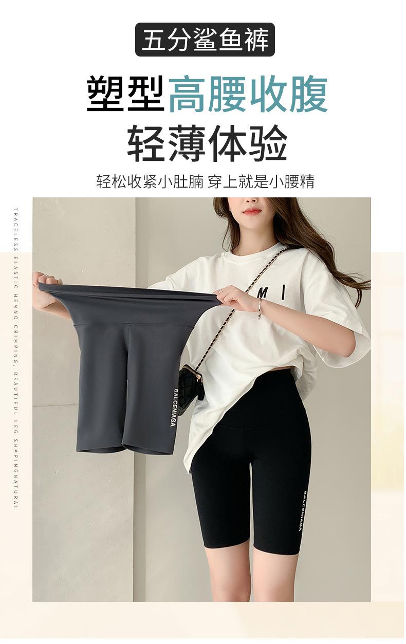 Pantalones Shark para Mujer, Verano Cintura Alta Control de Abdomen Leggings Ajustados Finos, Pantalones de Yoga Ciclismo Cinco Puntos, Cintura Alta y Adelgazantes
