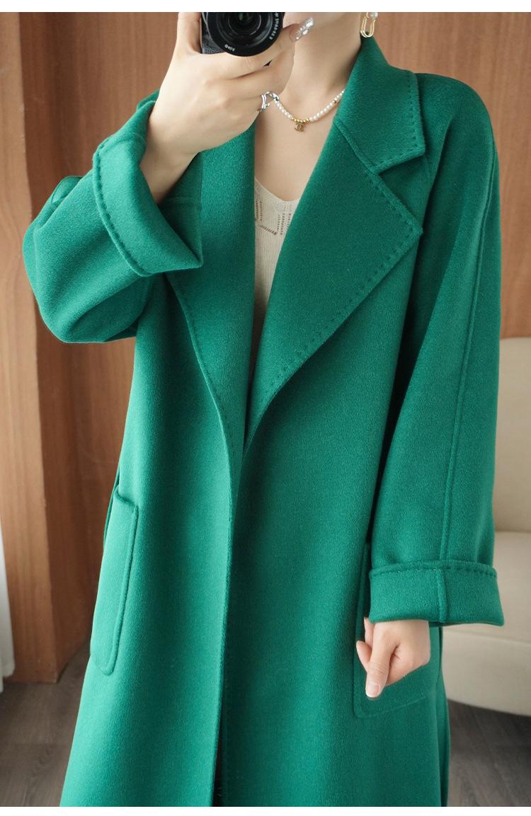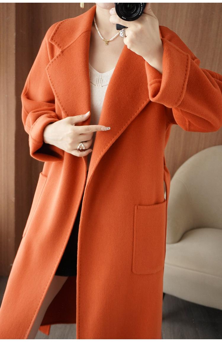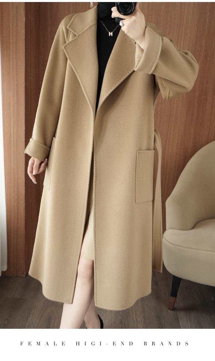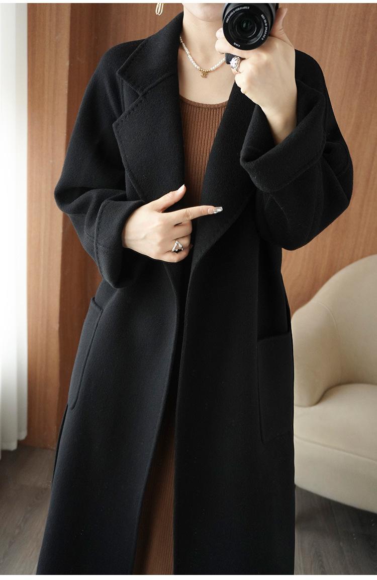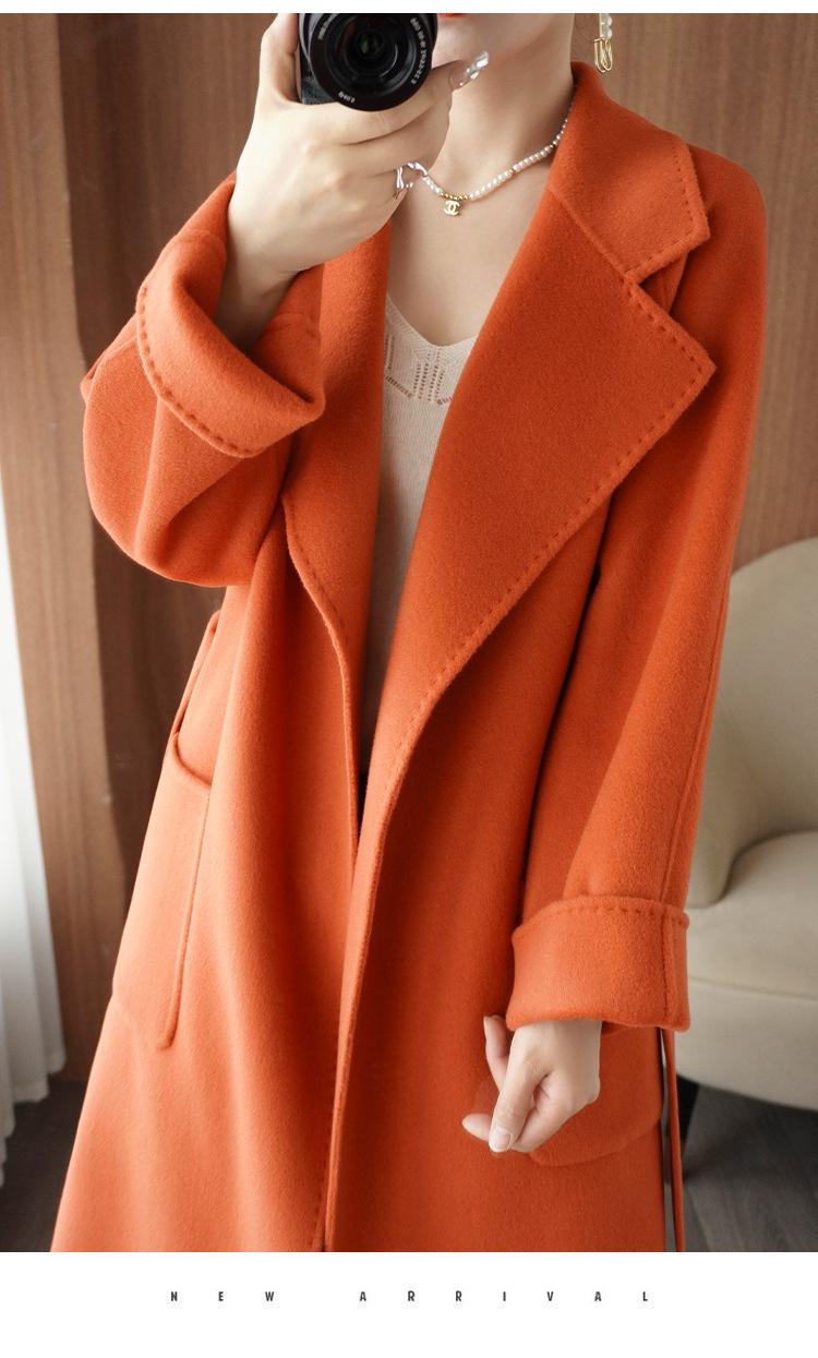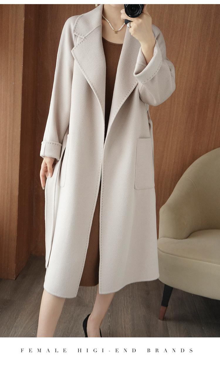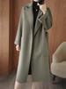 Abrigo de cachemira de doble cara de alta gama de otoño e invierno 2023, abrigo de lana nuevo de estilo coreano grueso de longitud media para mujer