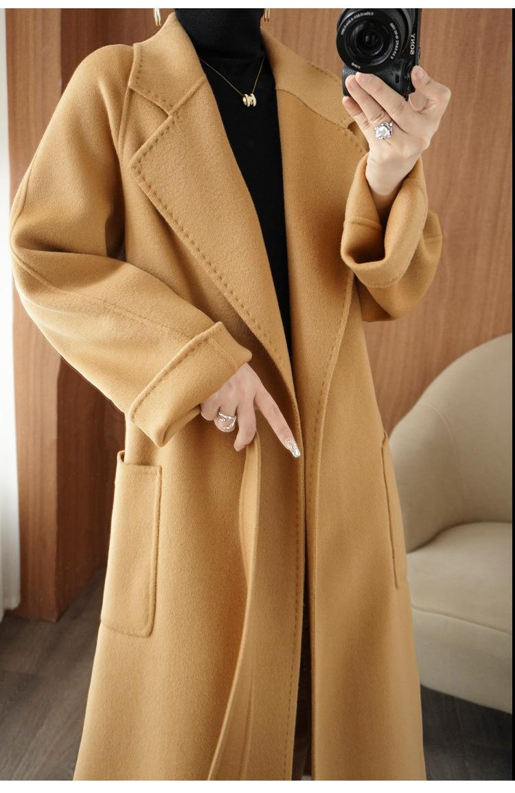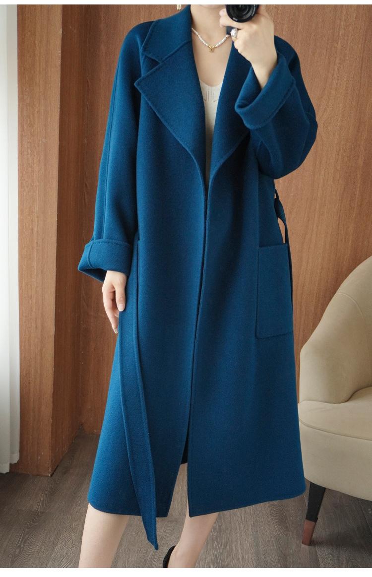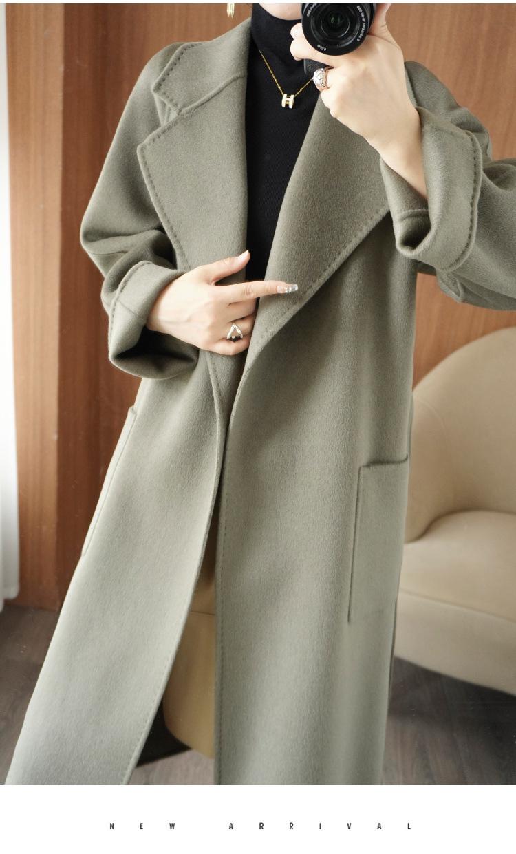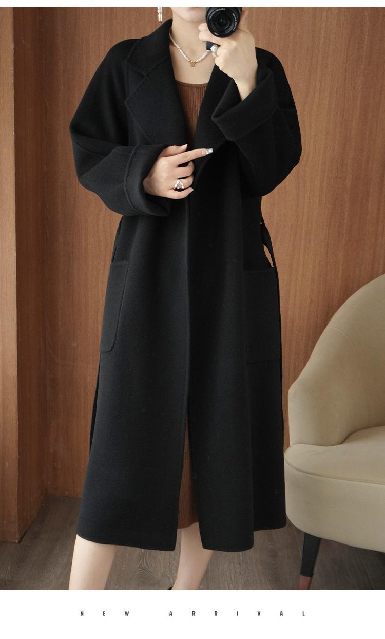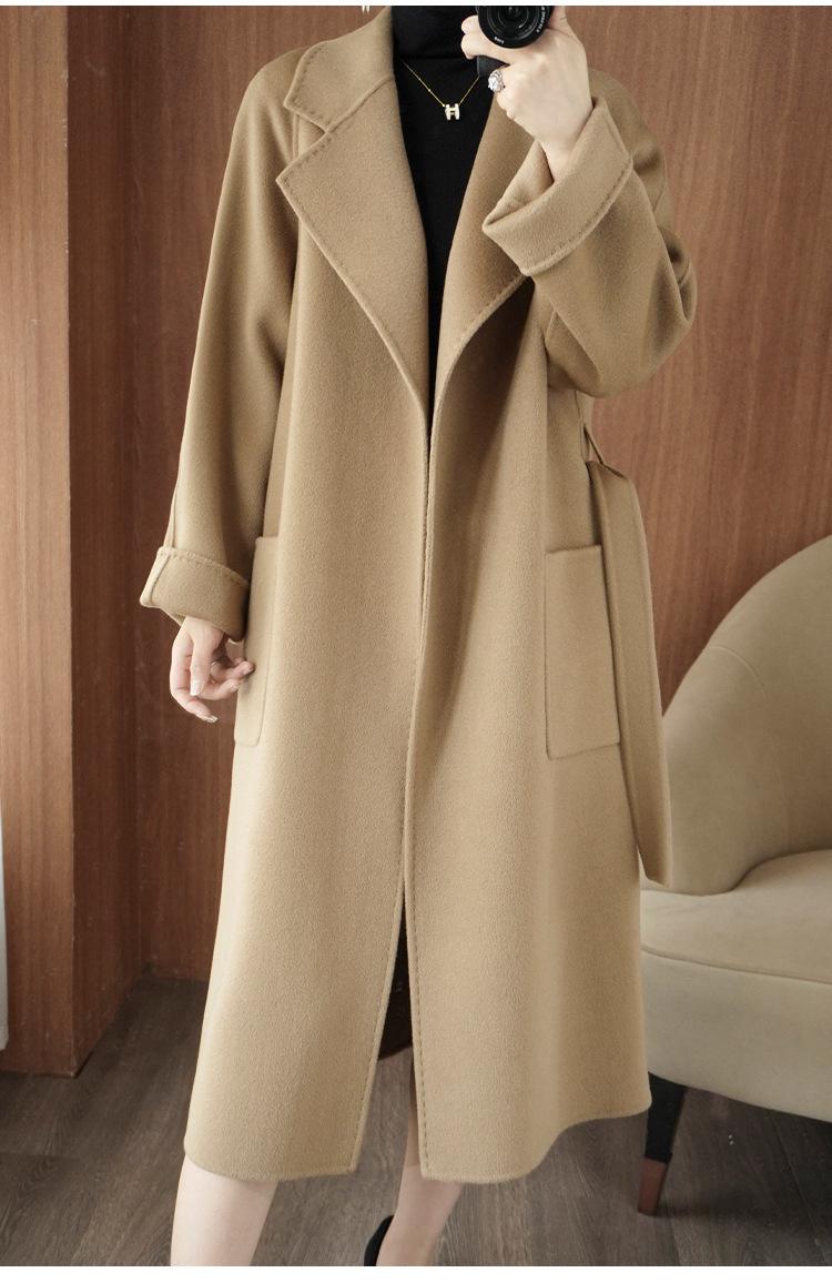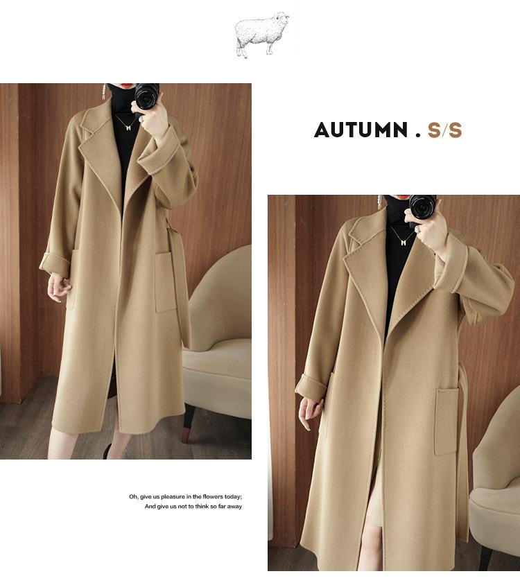 Abrigo de cachemira de doble cara de alta gama de otoño e invierno 2023, abrigo de lana nuevo de estilo coreano grueso de longitud media para mujer