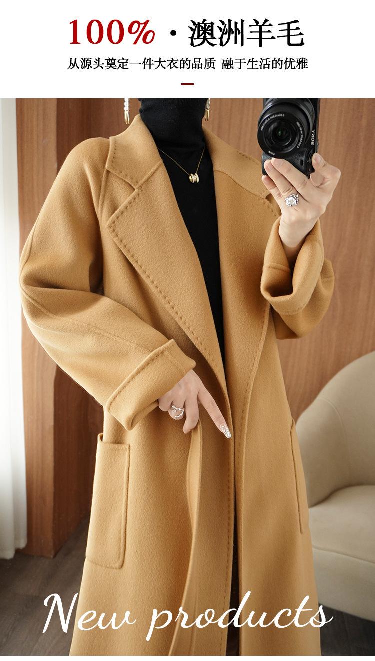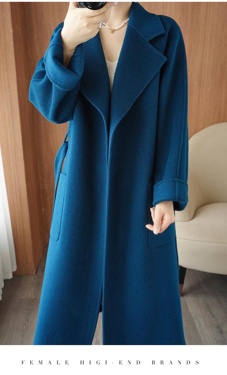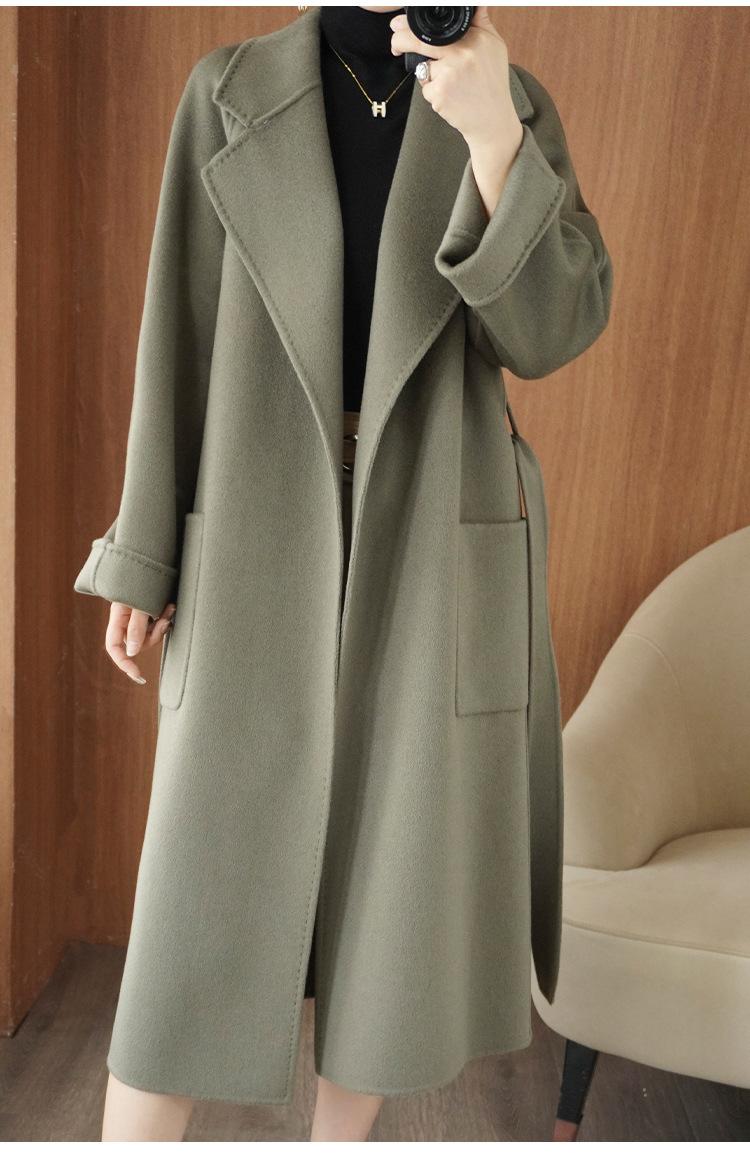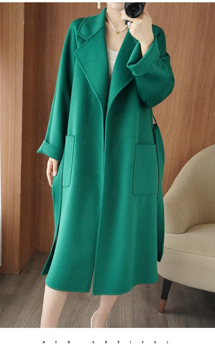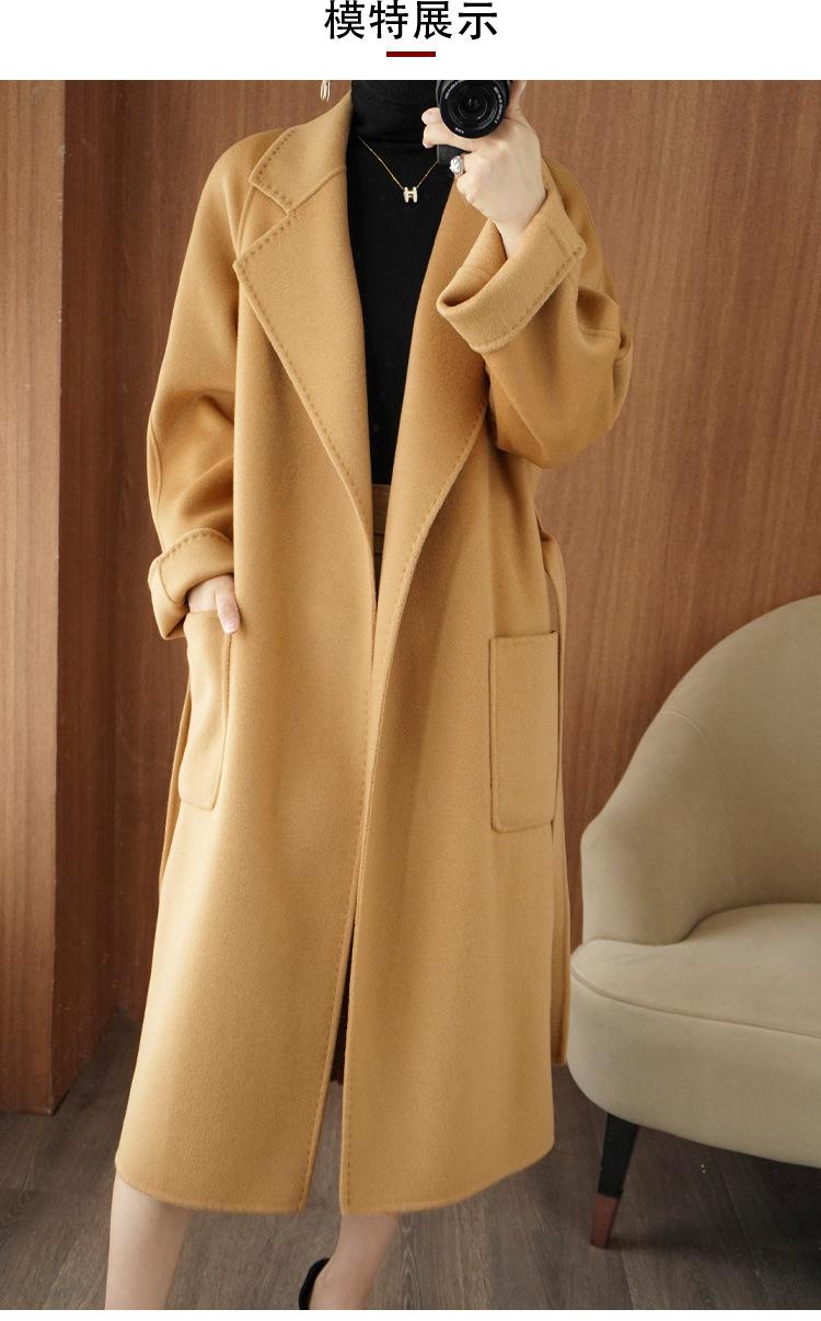 Abrigo de cachemira de doble cara de alta gama de otoño e invierno 2023, abrigo de lana nuevo de estilo coreano grueso de longitud media para mujer