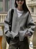 Lufu, nuevo estilo coreano, cárdigan informal holgado con cuello en V, suave y glutinoso, abrigo de punto adelgazante para uso diario