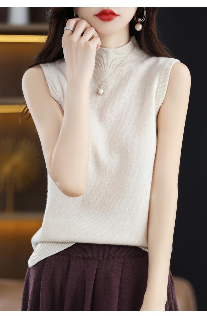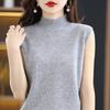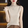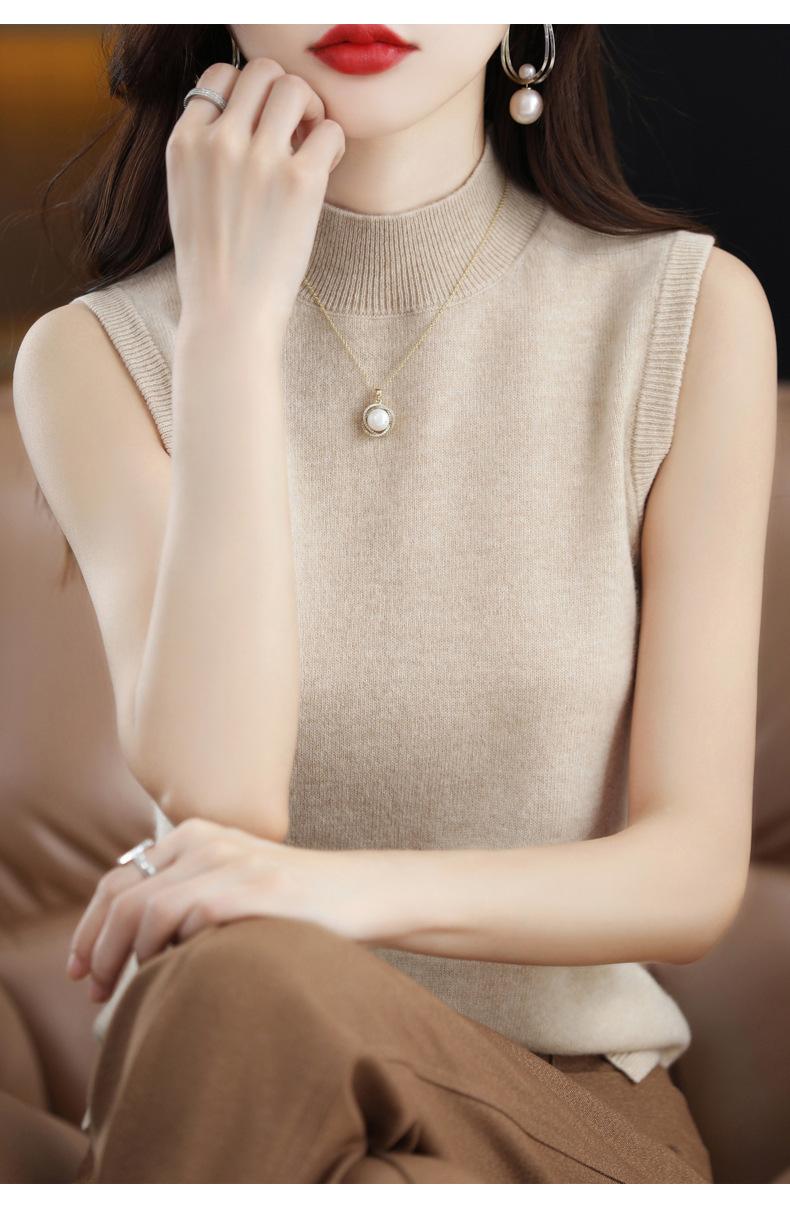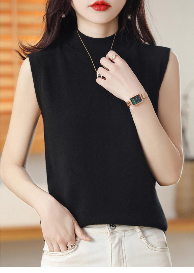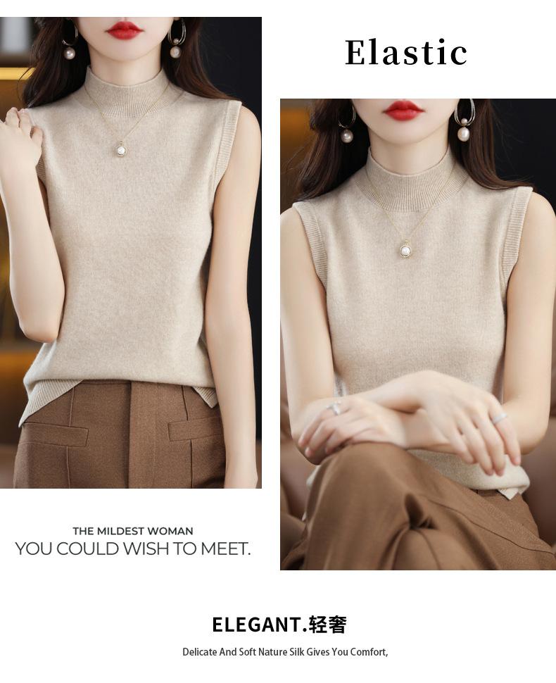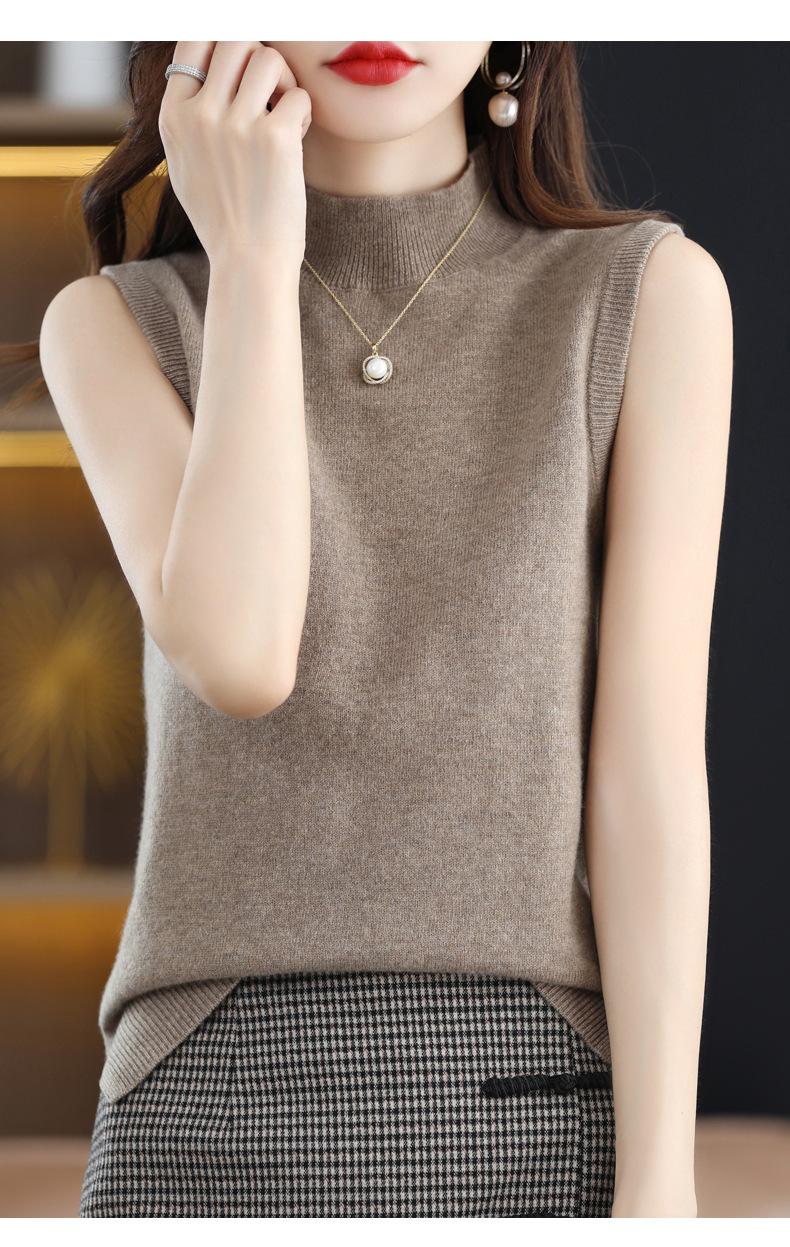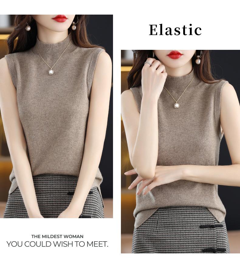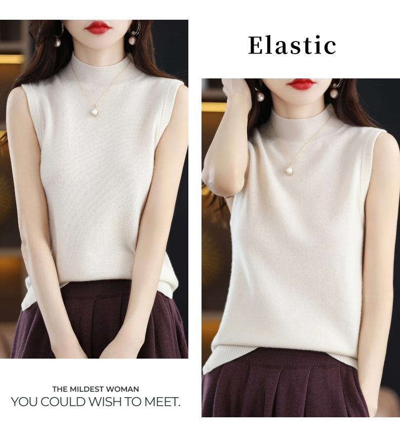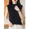 Suéter de lana interior de color liso para mujer, camisa de cuello alto sin mangas con tirantes, chaleco, primavera y otoño