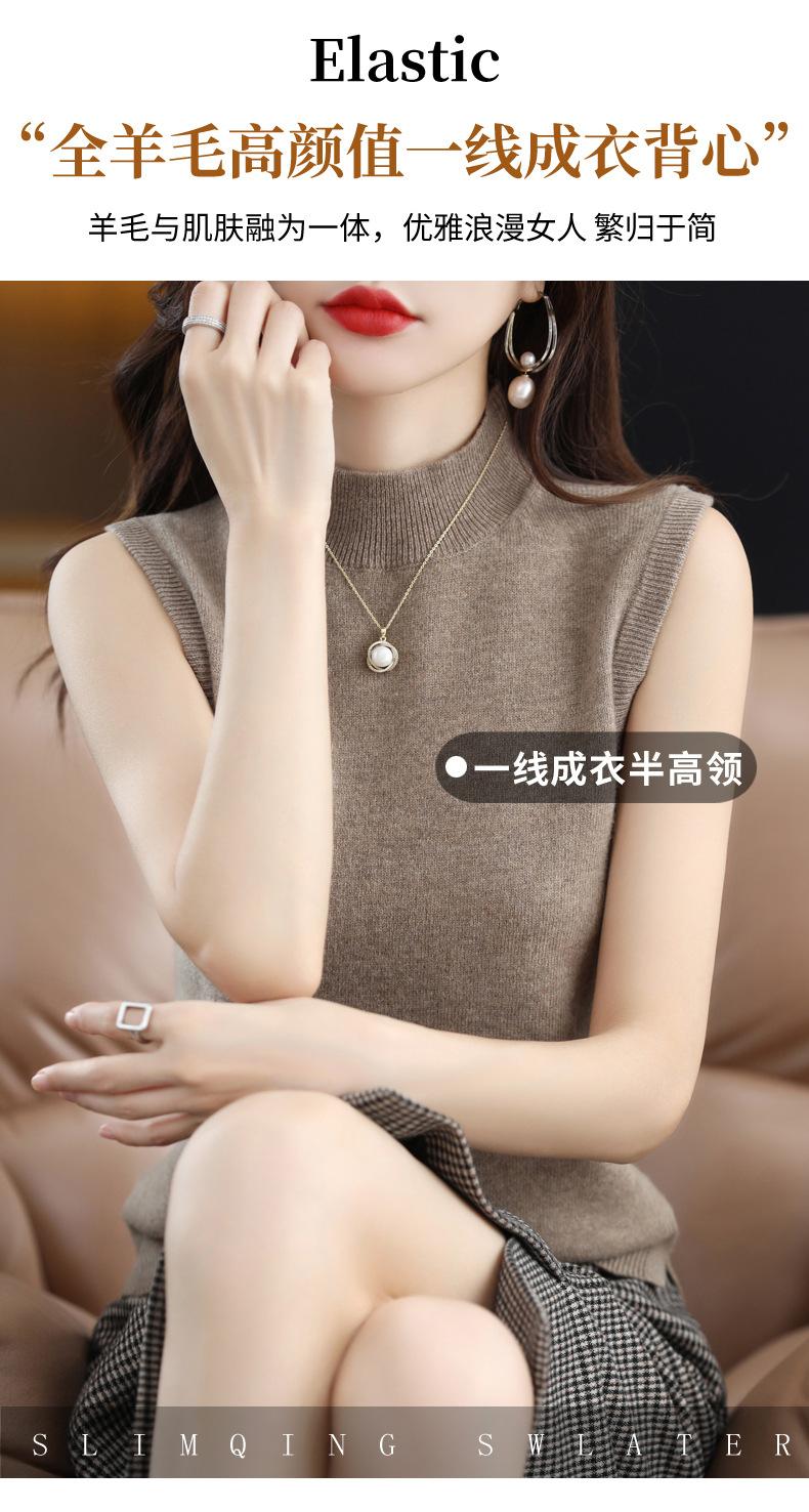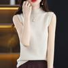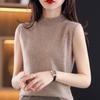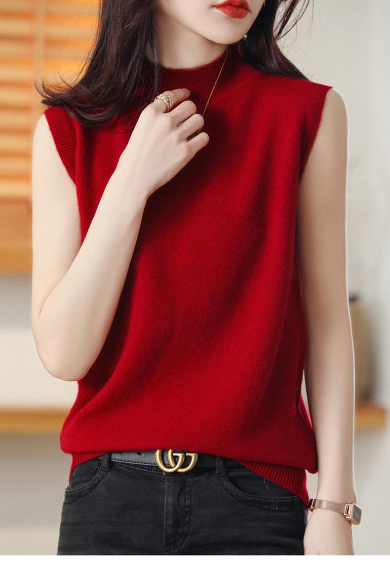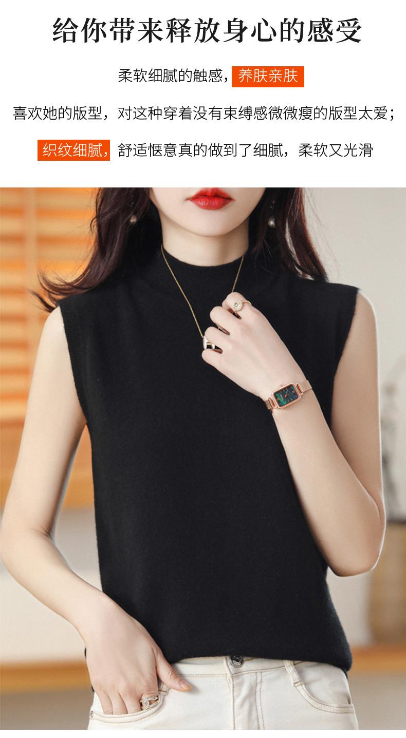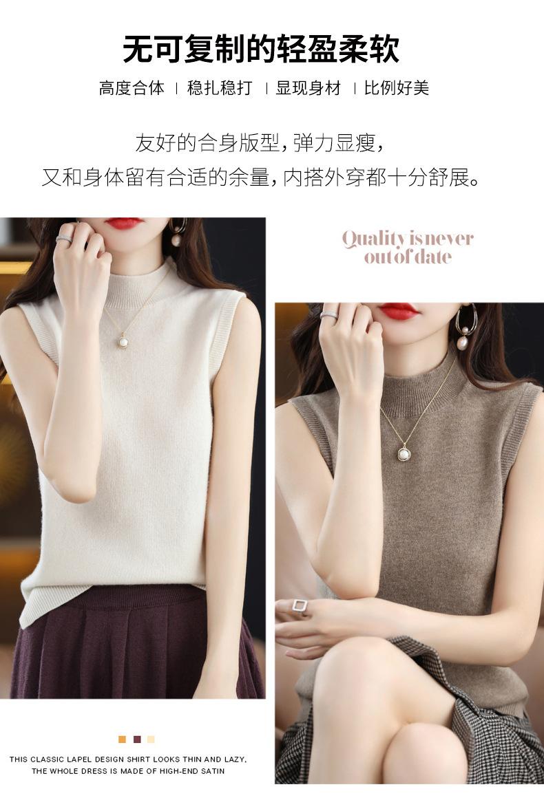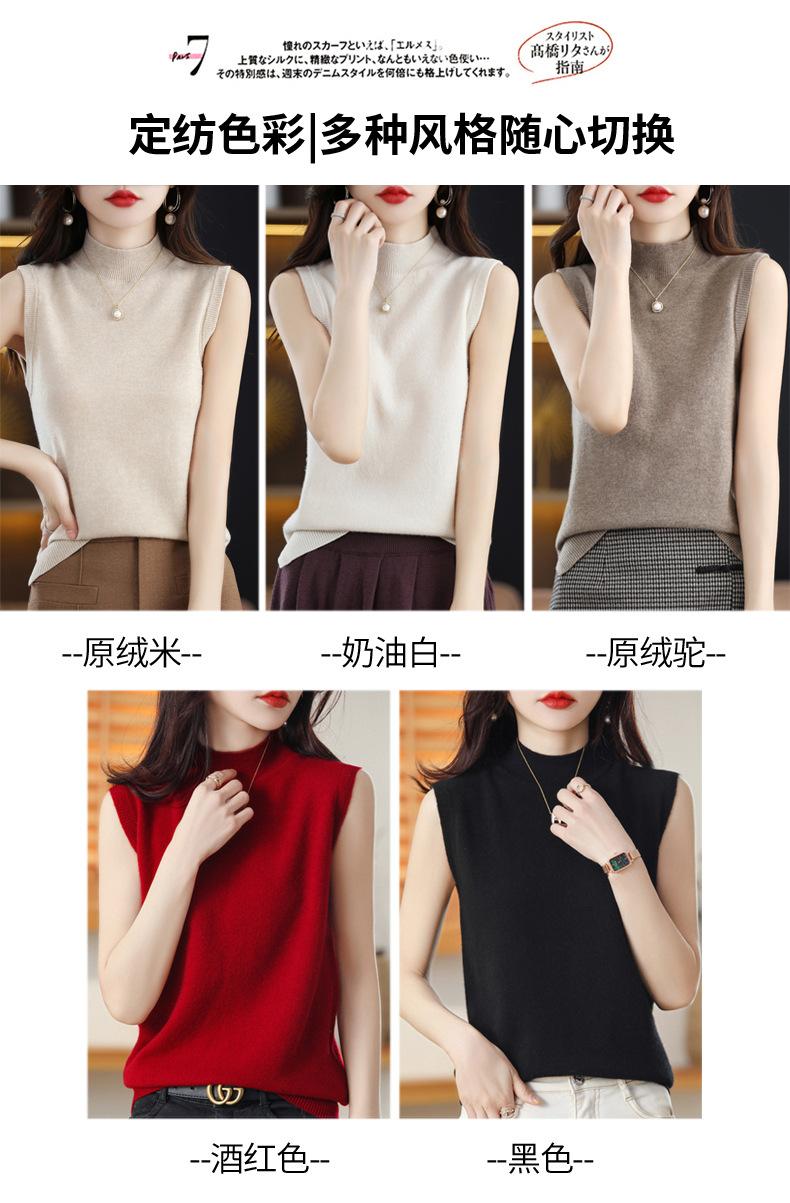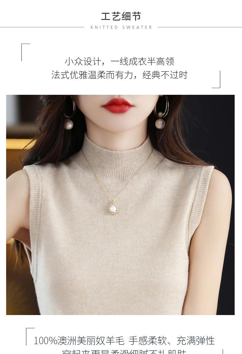 Suéter de lana interior de color liso para mujer, camisa de cuello alto sin mangas con tirantes, chaleco, primavera y otoño