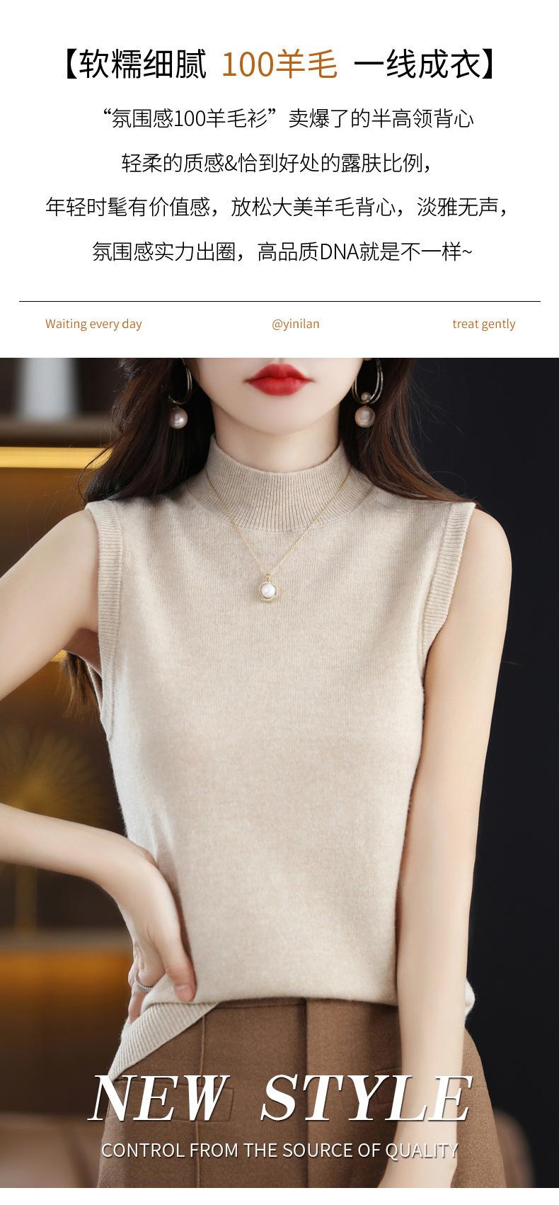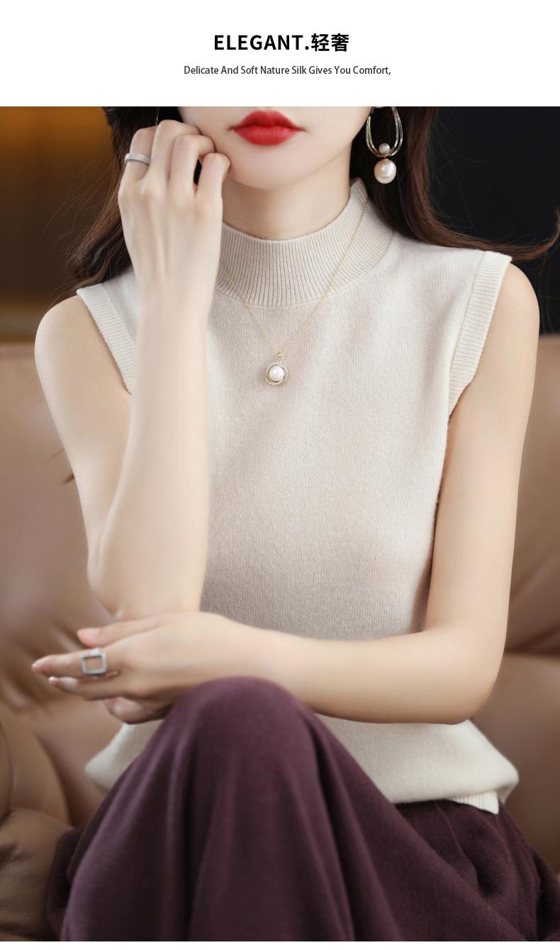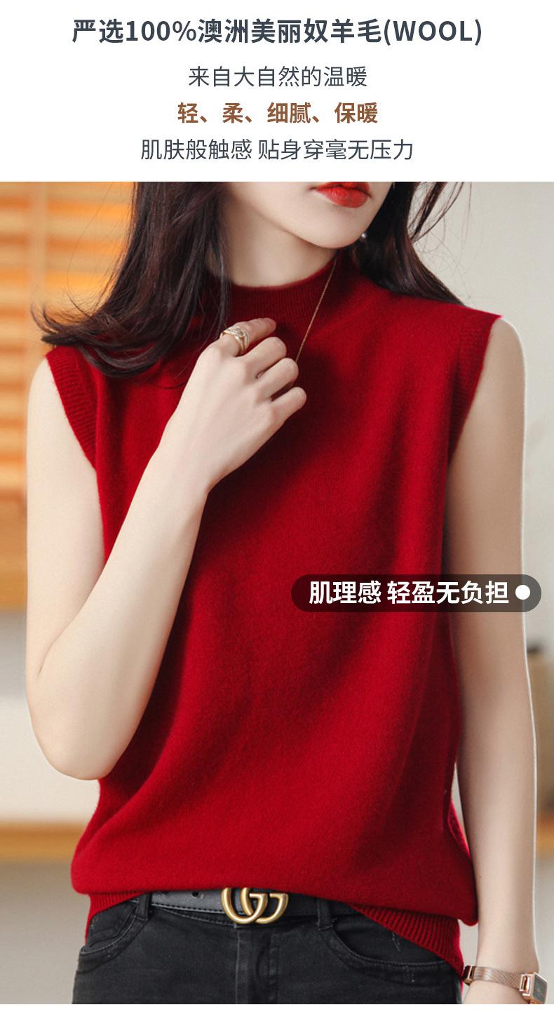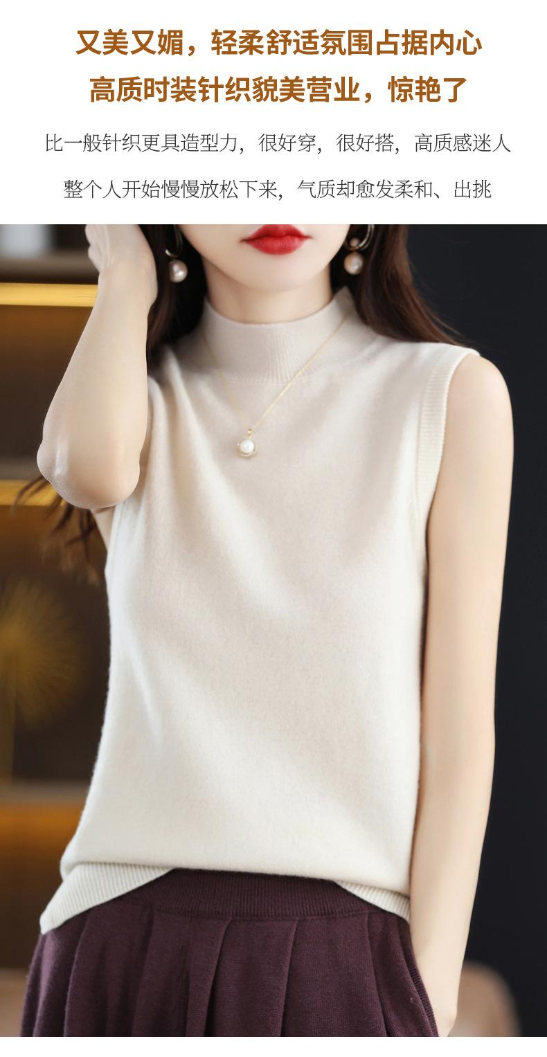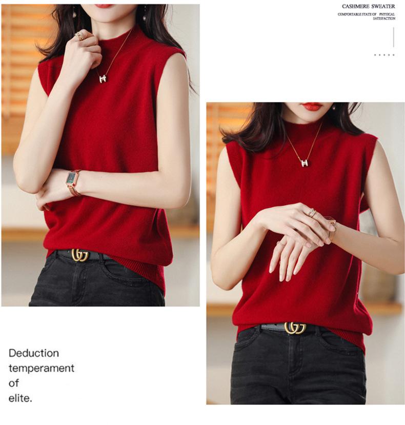 Suéter de lana interior de color liso para mujer, camisa de cuello alto sin mangas con tirantes, chaleco, primavera y otoño