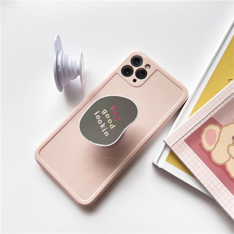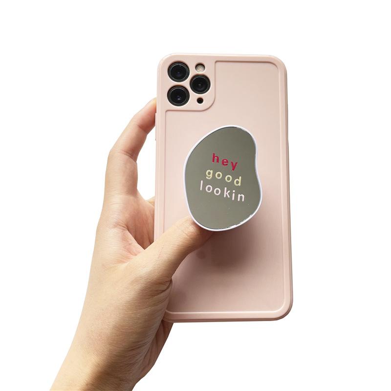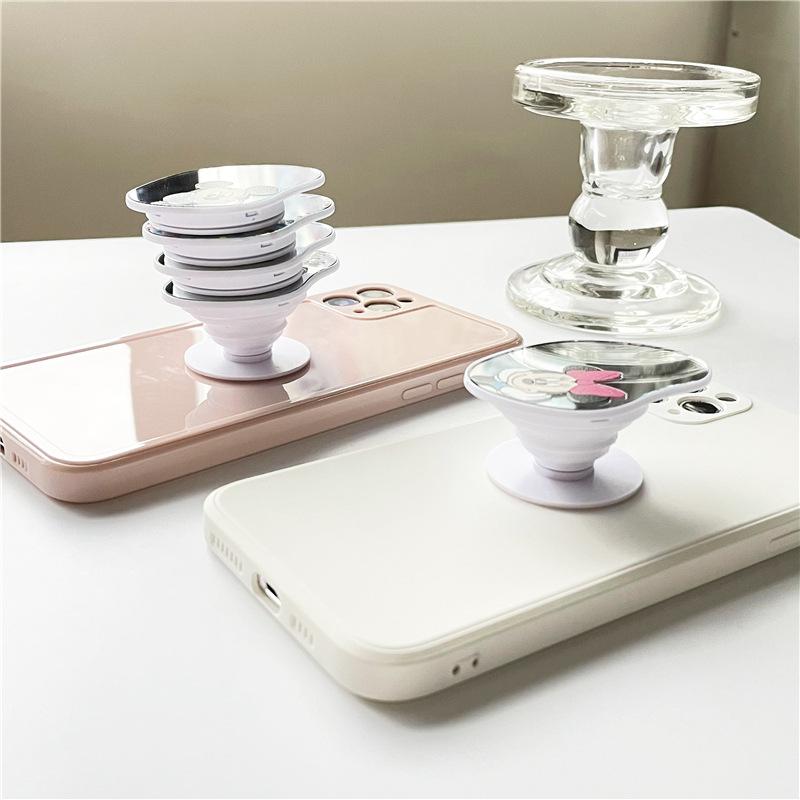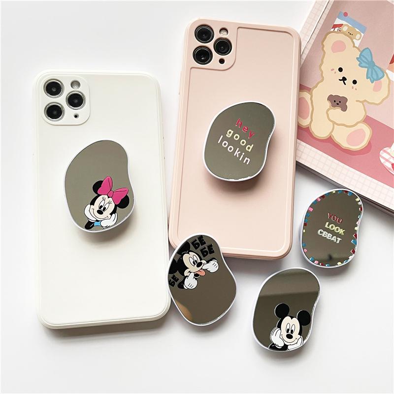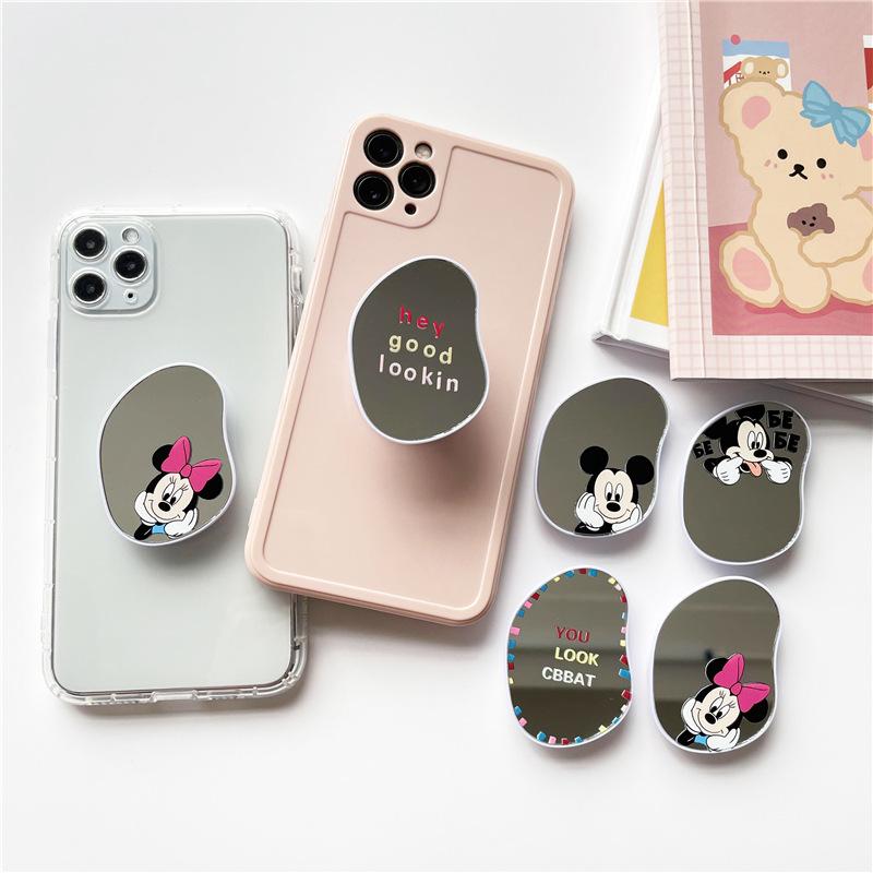 Espejo ovalado creativo con dibujos animados para teléfono móvil, soporte retráctil y adhesivo para funda de teléfono móvil.