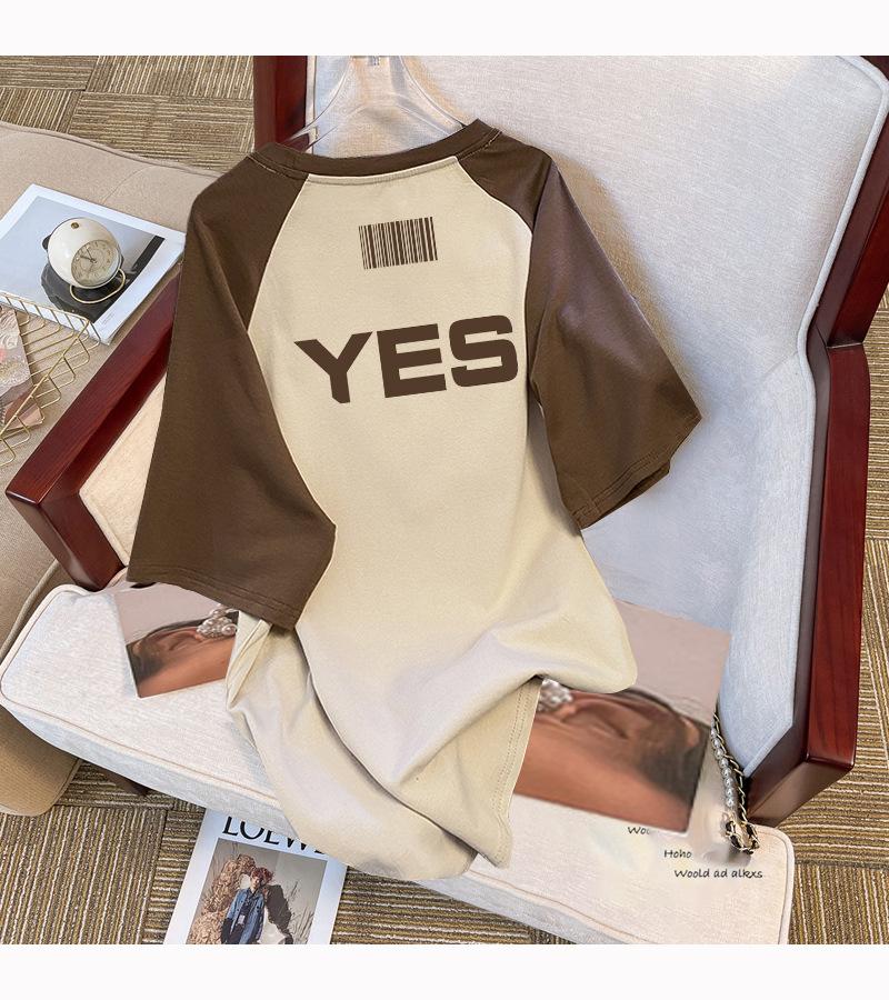 Camiseta Retro Raglán de Manga Corta para Mujer 2024 Nueva Camiseta de Algodón Puro Diseño Nicho Top con Estilo Western y Aspecto Adelgazante